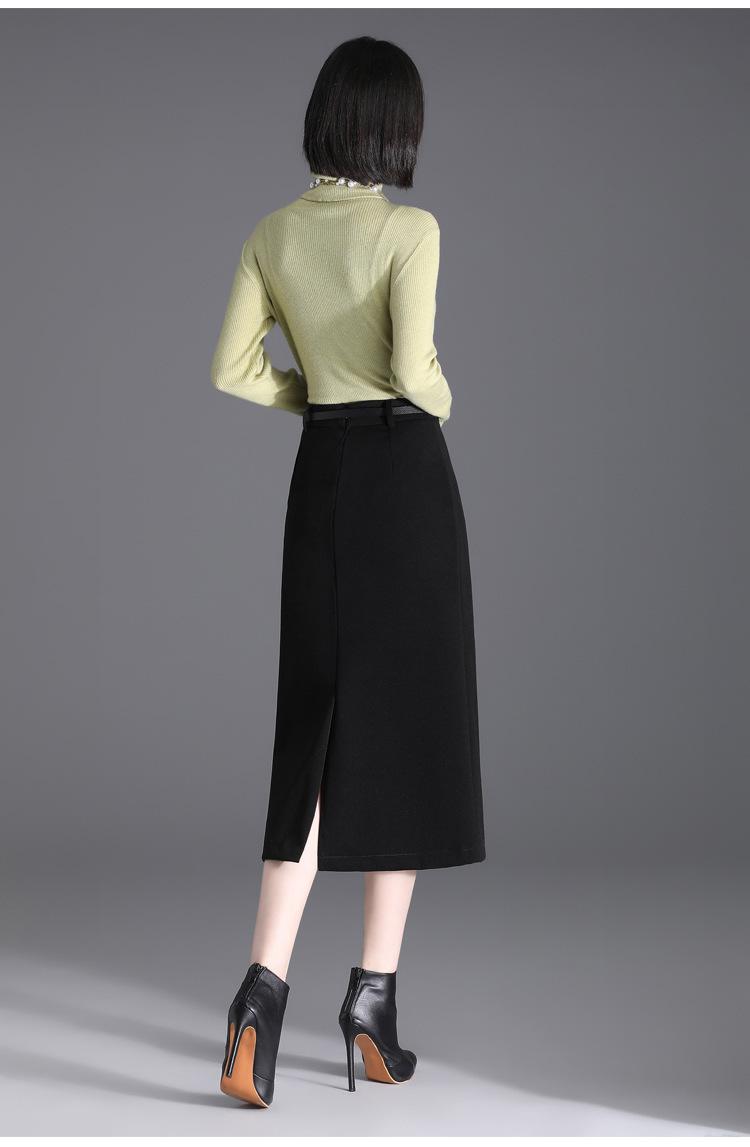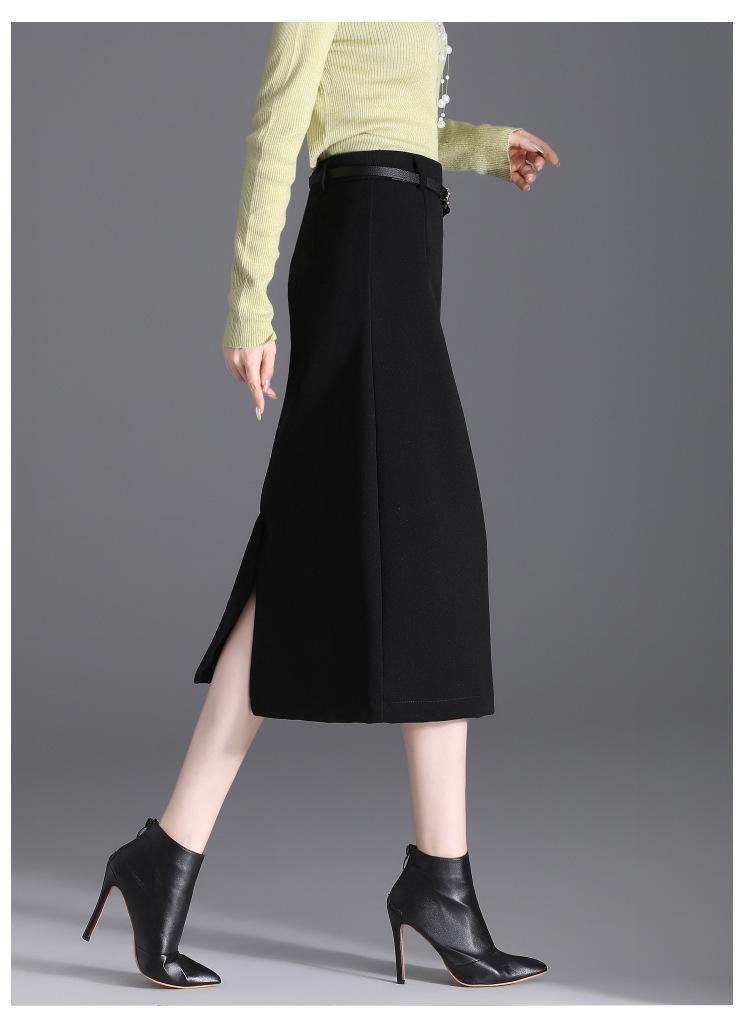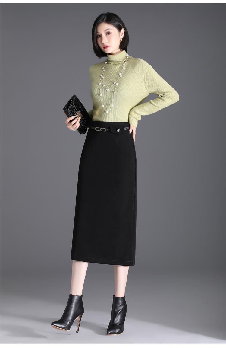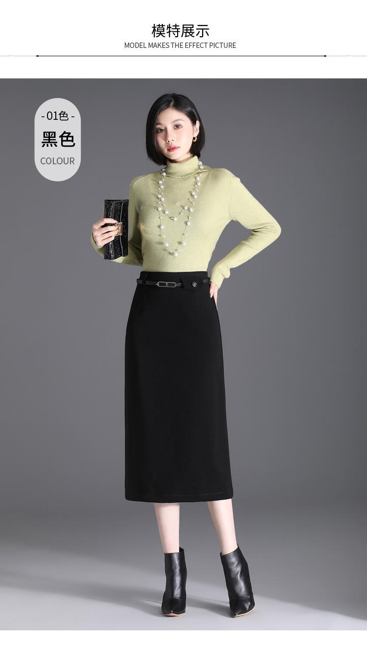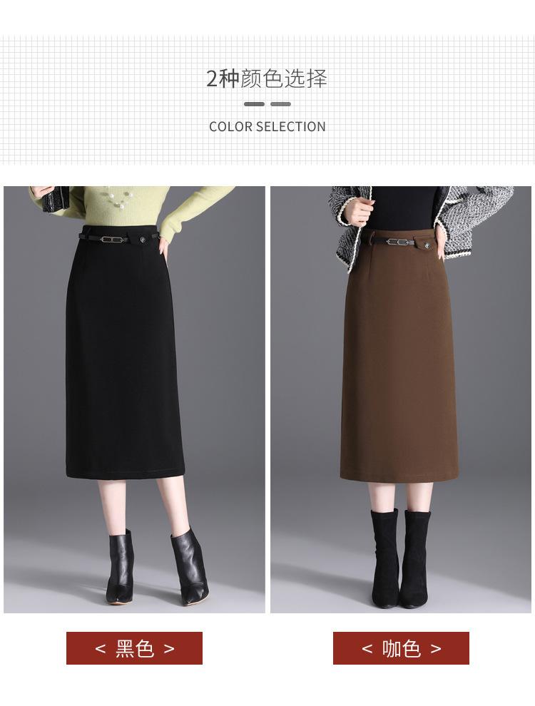 Falda de Lana a la Moda Cubrecaderas para Mujer 2024 Otoño e Invierno Nuevo Estilo Coreano de Cintura Alta Recta Profesional de Un Paso Largo Medio