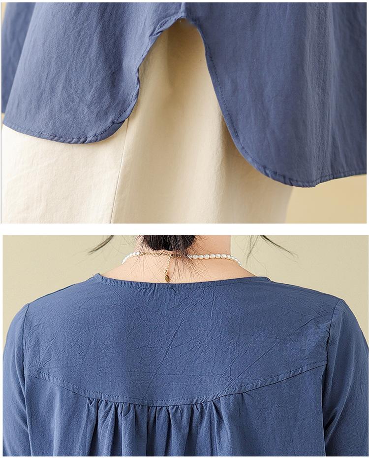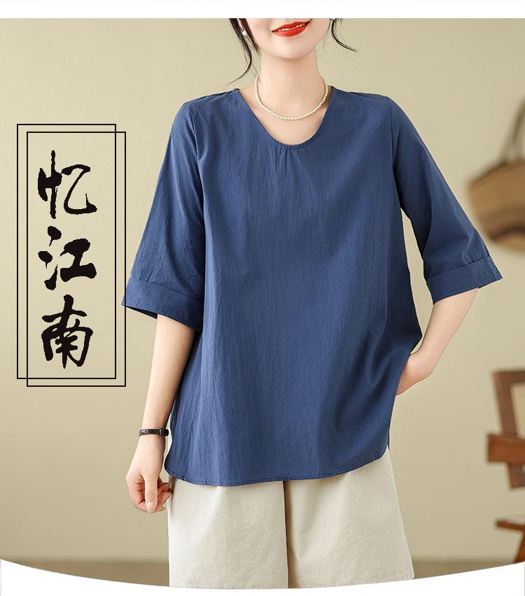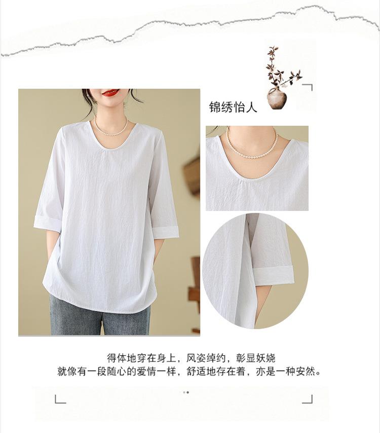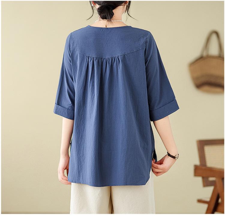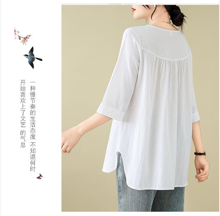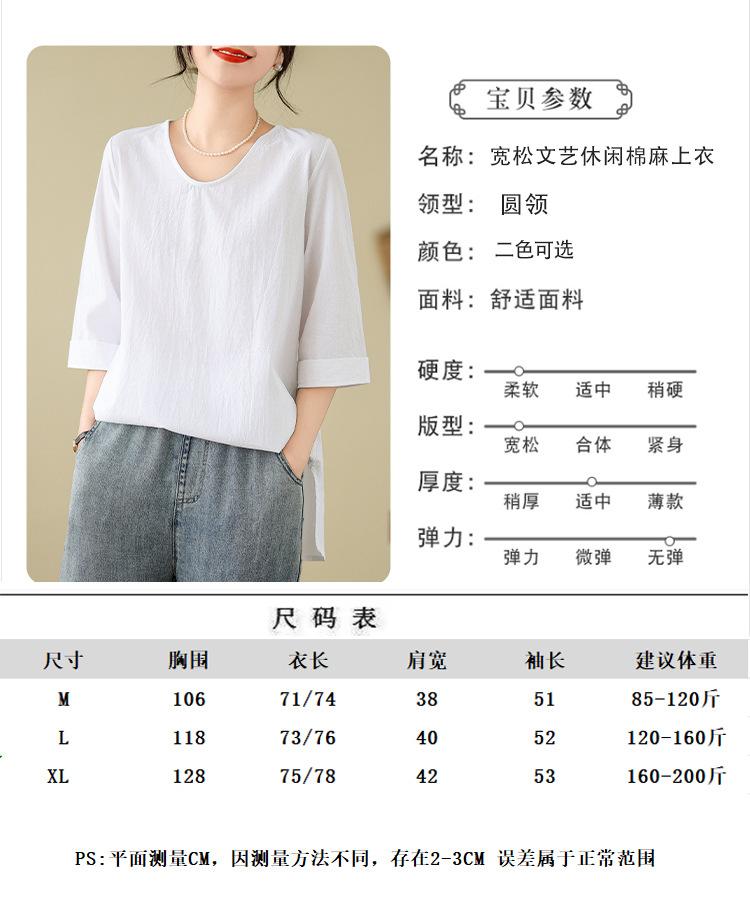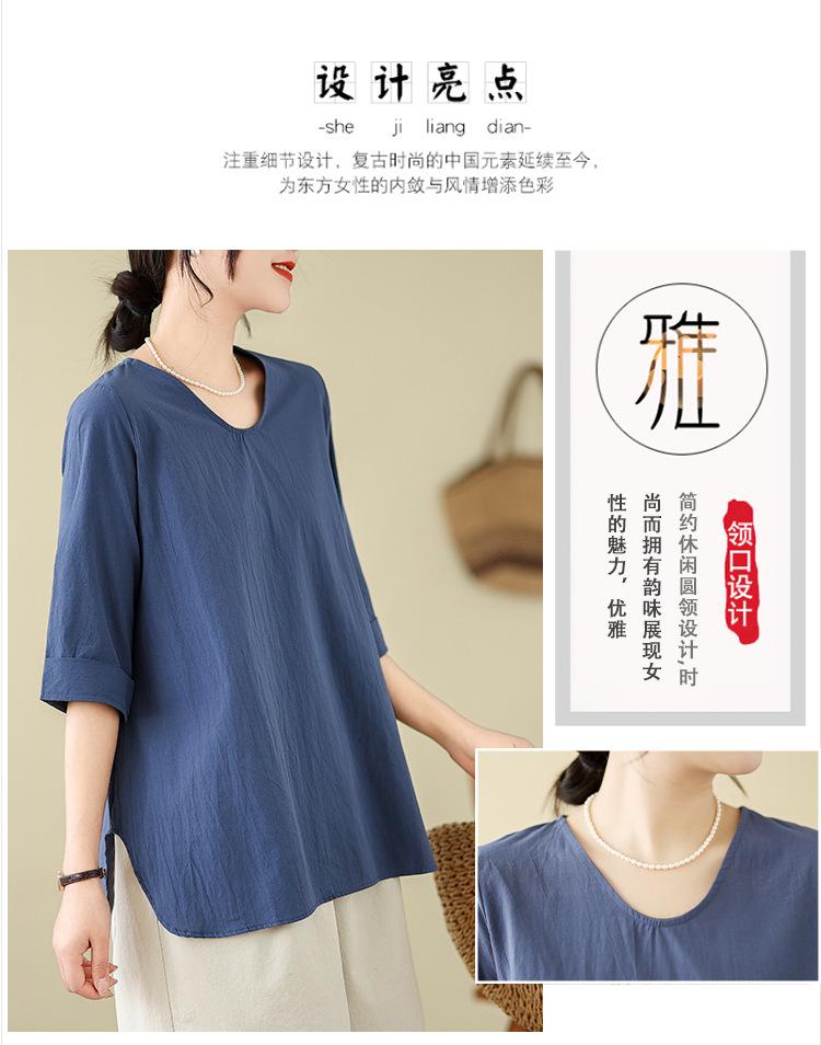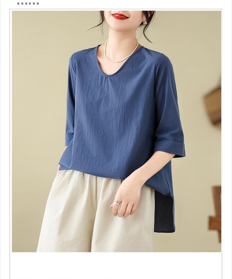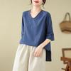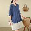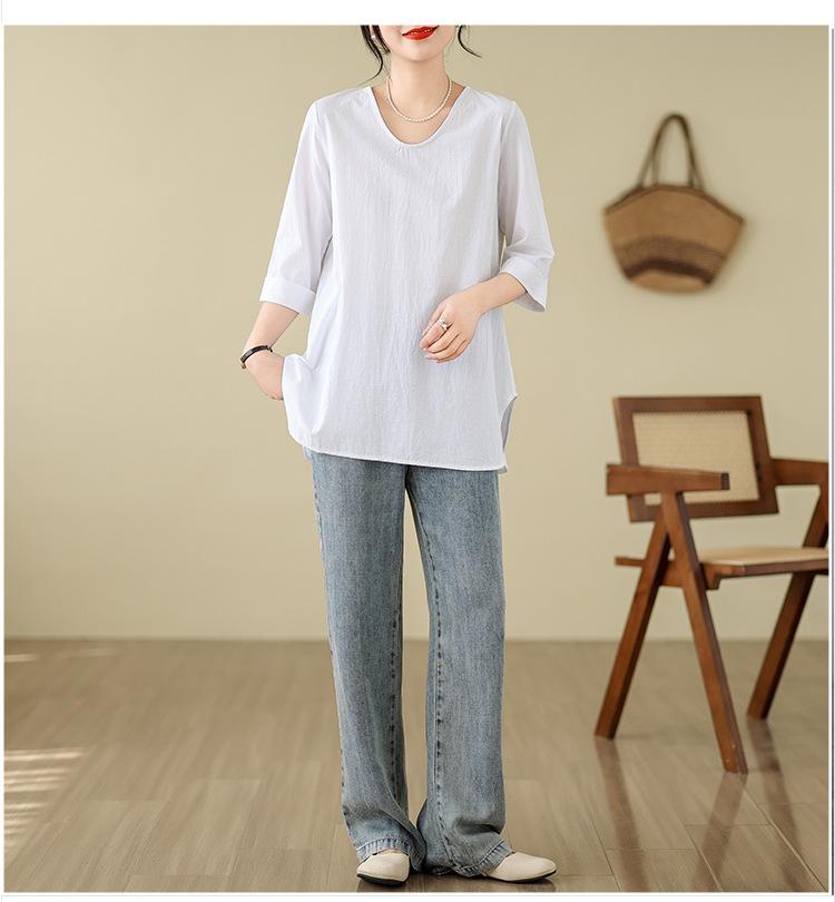 Camisa de lino puro holgada con cuello en V y manga corta de verano, talla grande, con protector solar