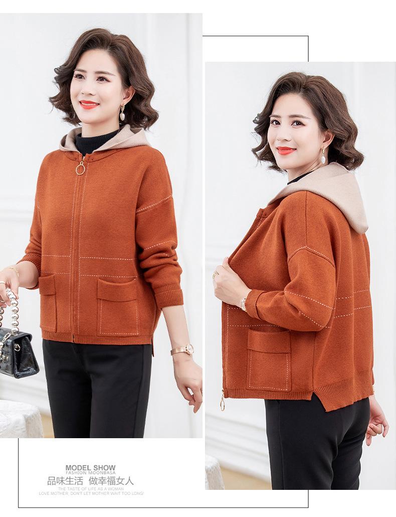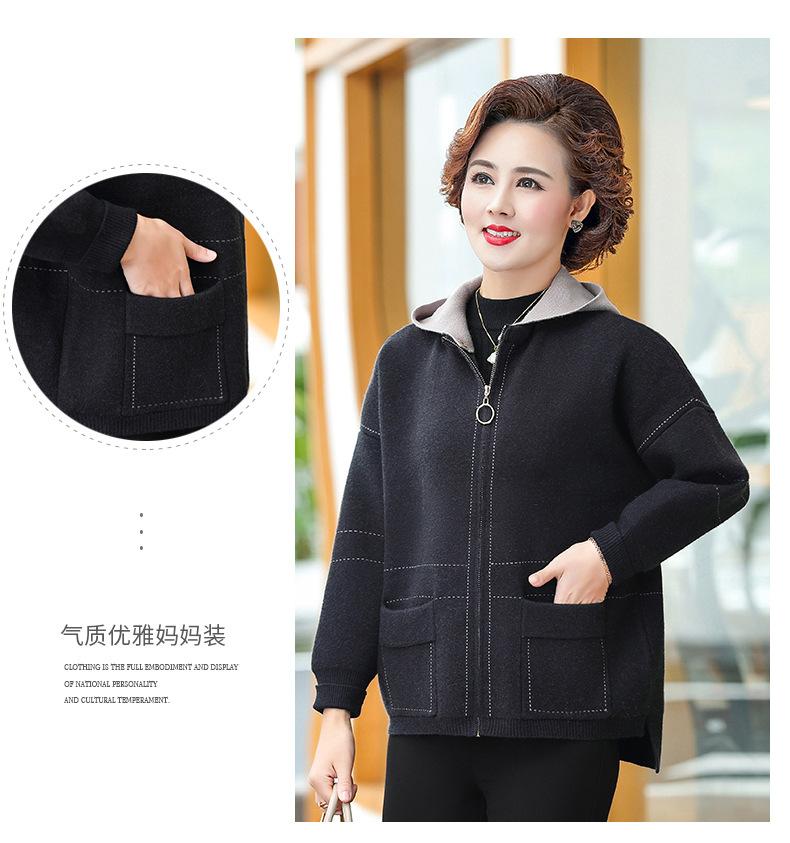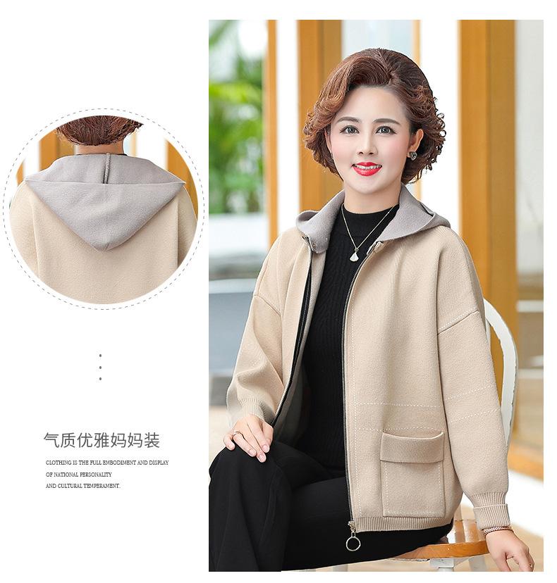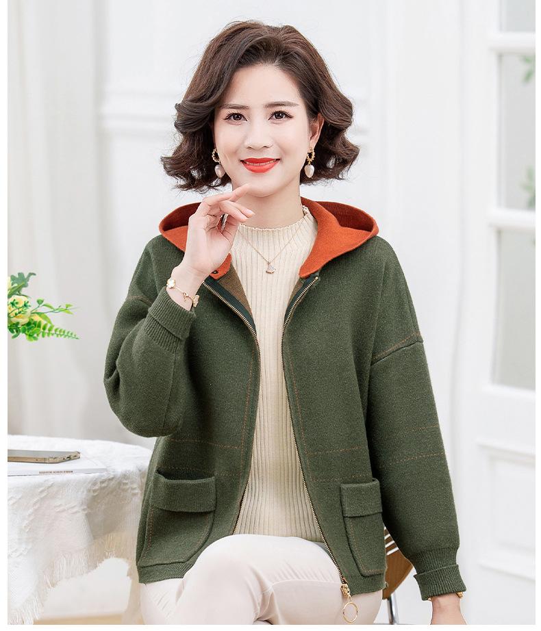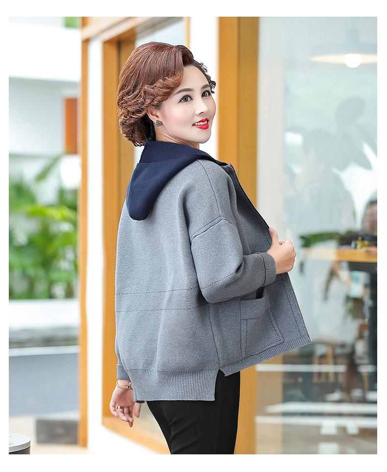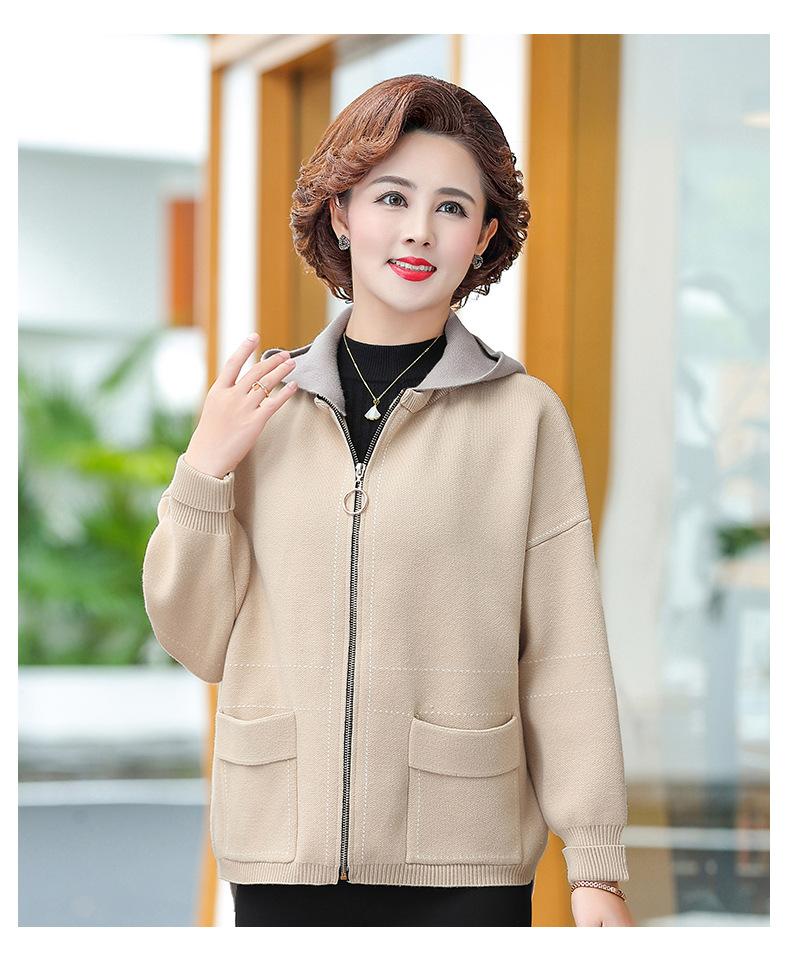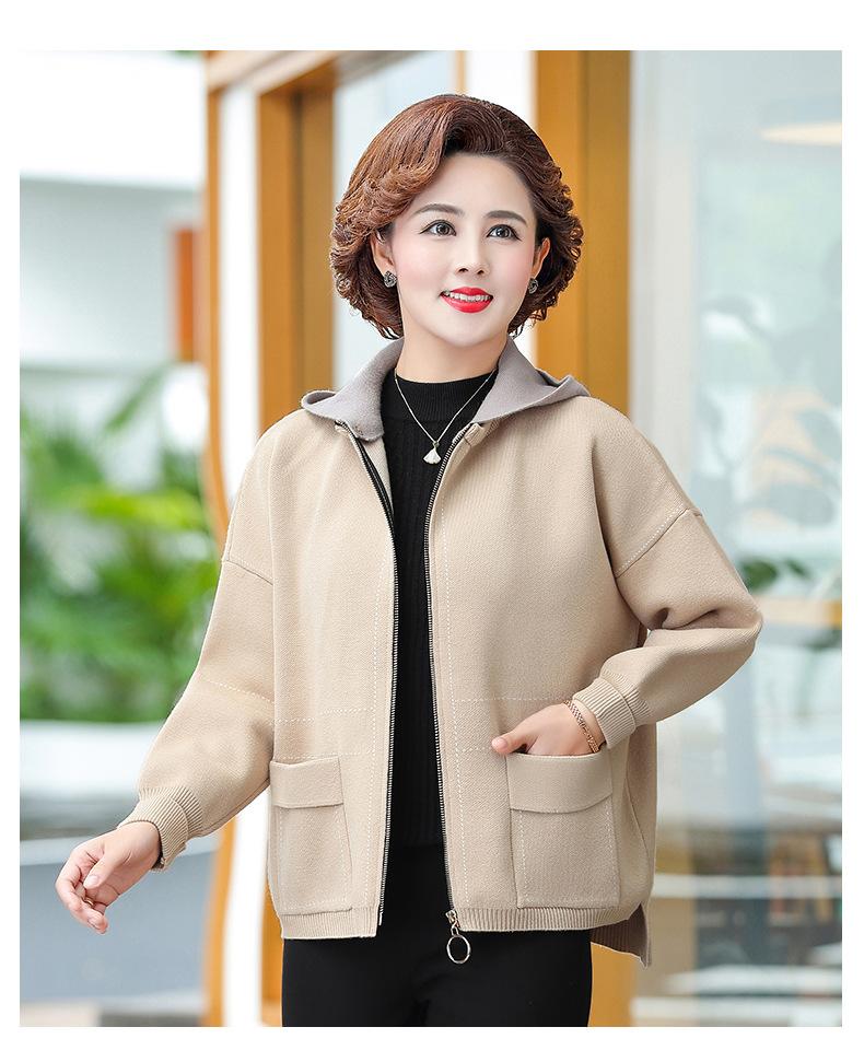Abrigo de otoño e invierno para mamá, suéter holgado informal con capucha y cremallera, cárdigan de moda para mujeres de mediana edad y mayores