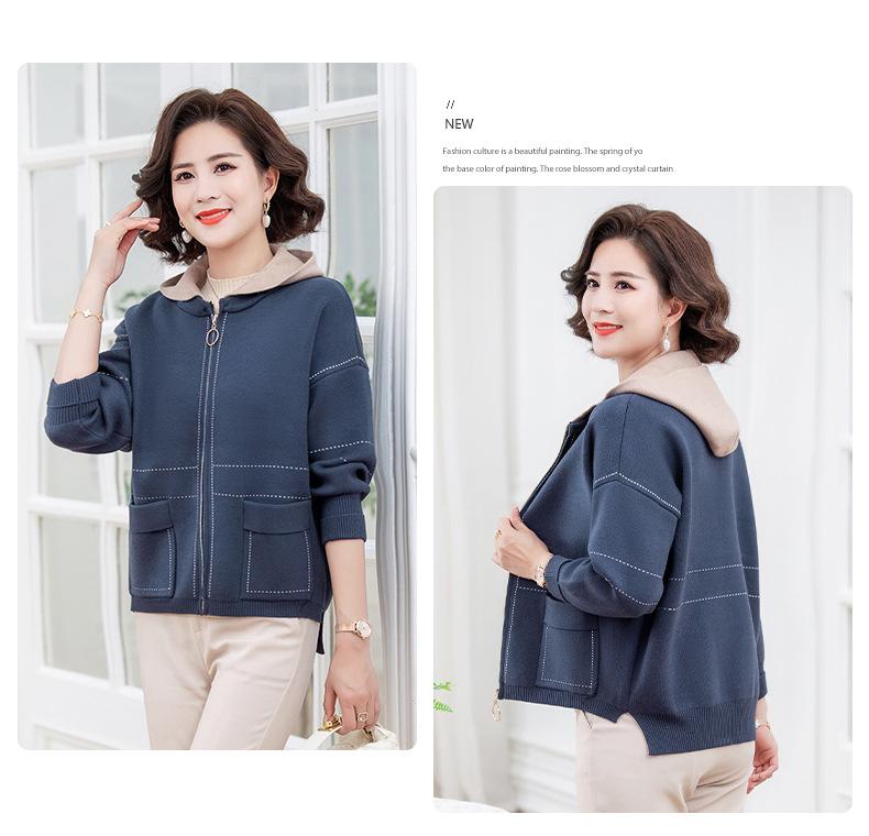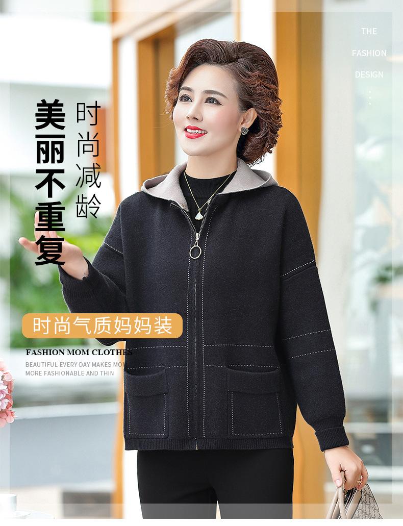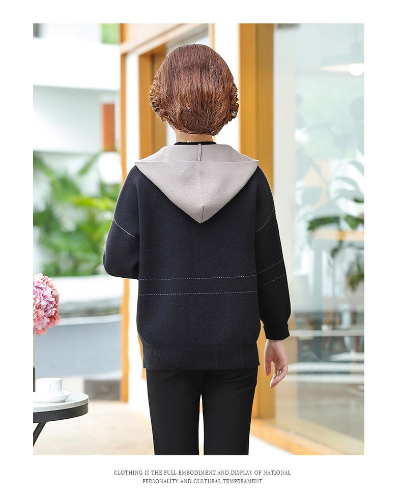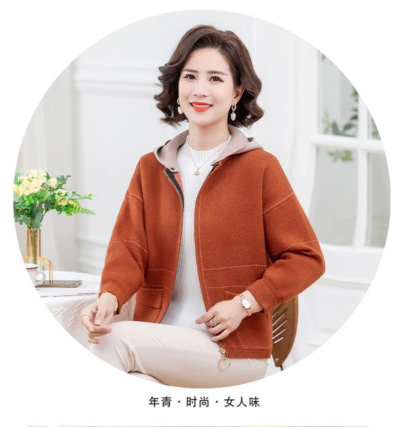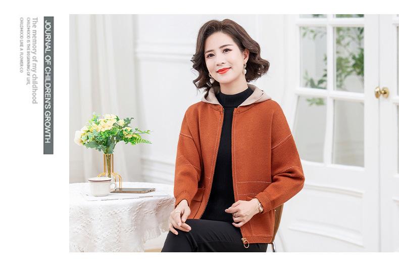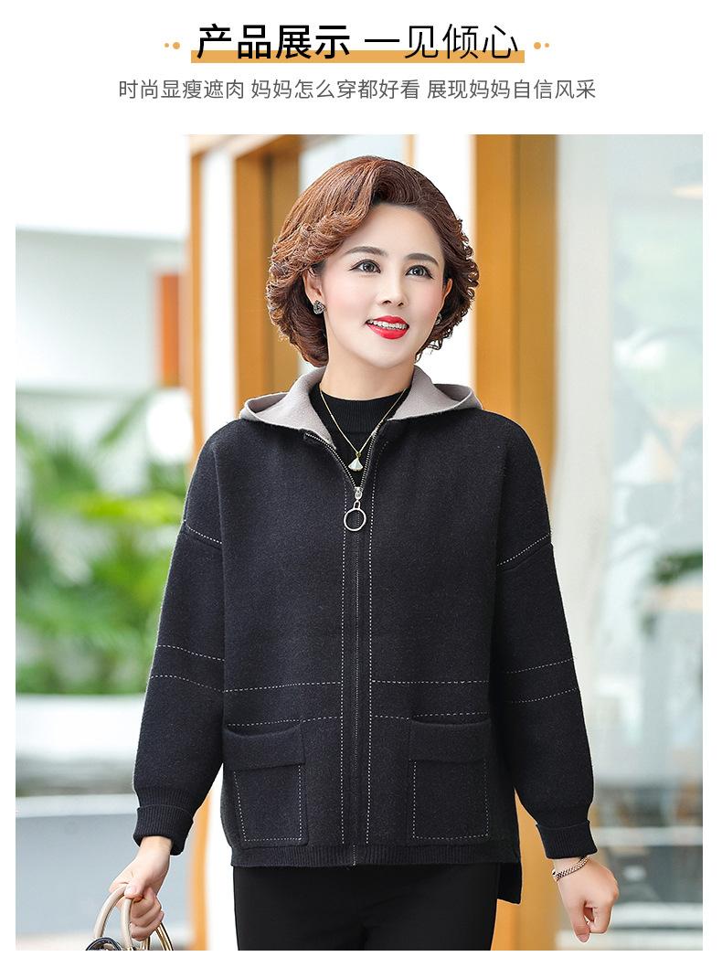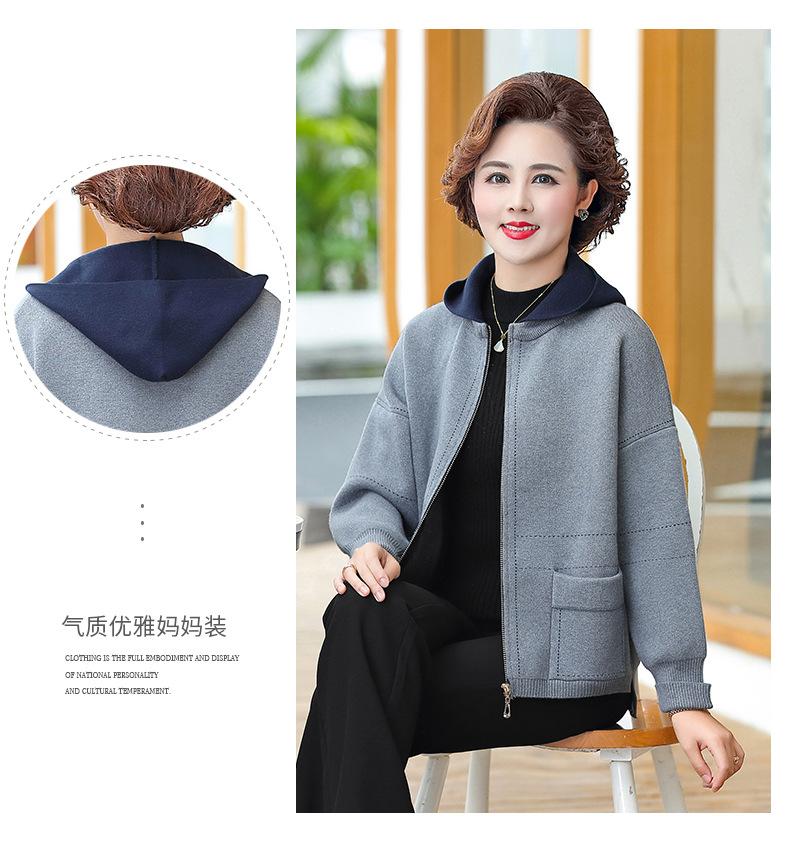 Abrigo de otoño e invierno para mamá, suéter holgado informal con capucha y cremallera, cárdigan de moda para mujeres de mediana edad y mayores