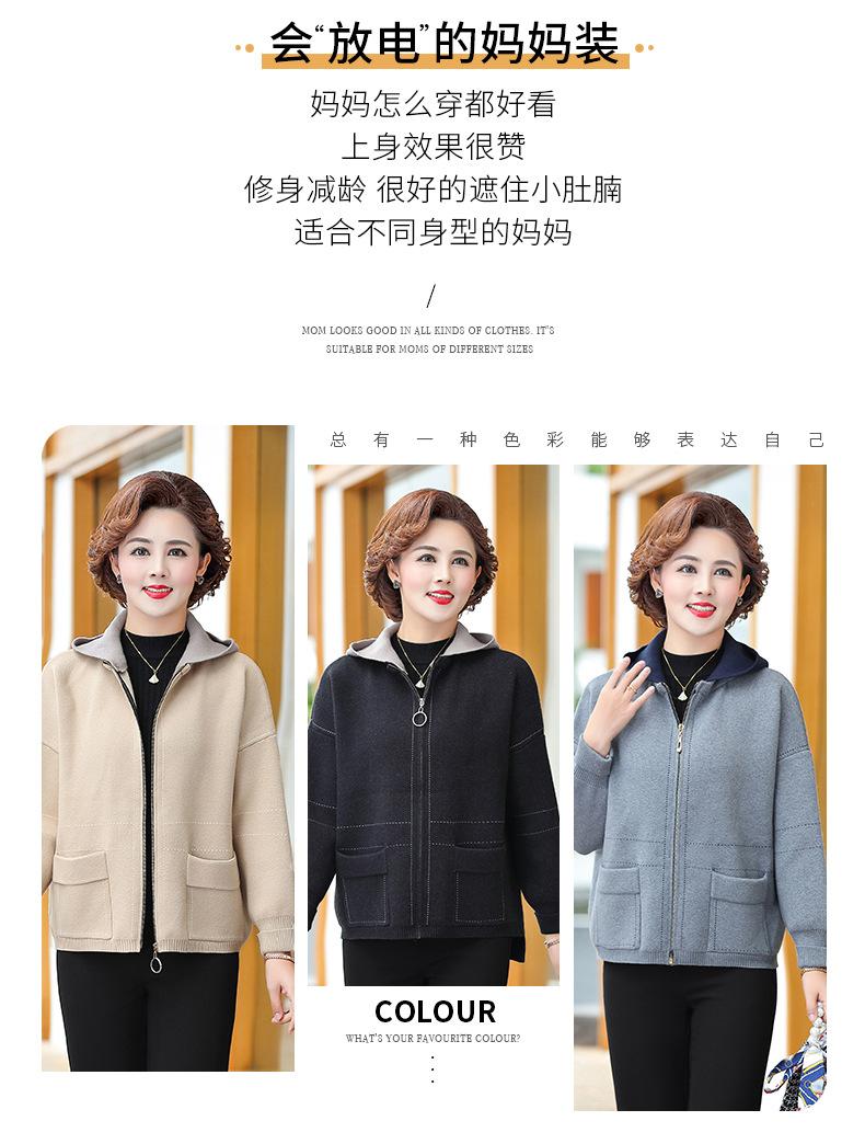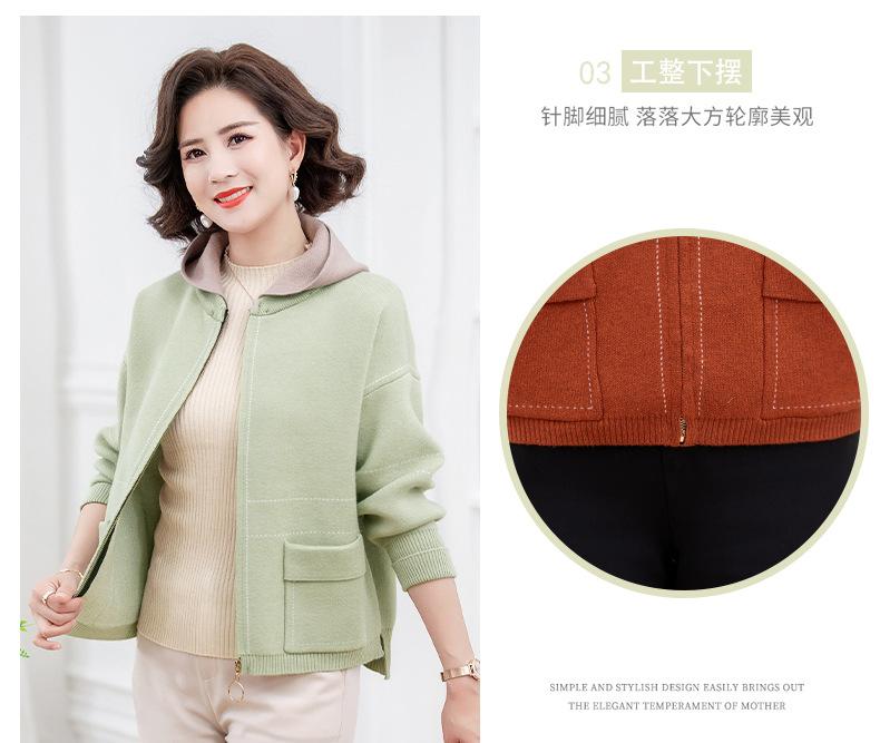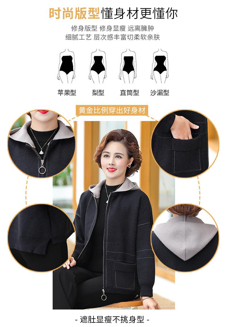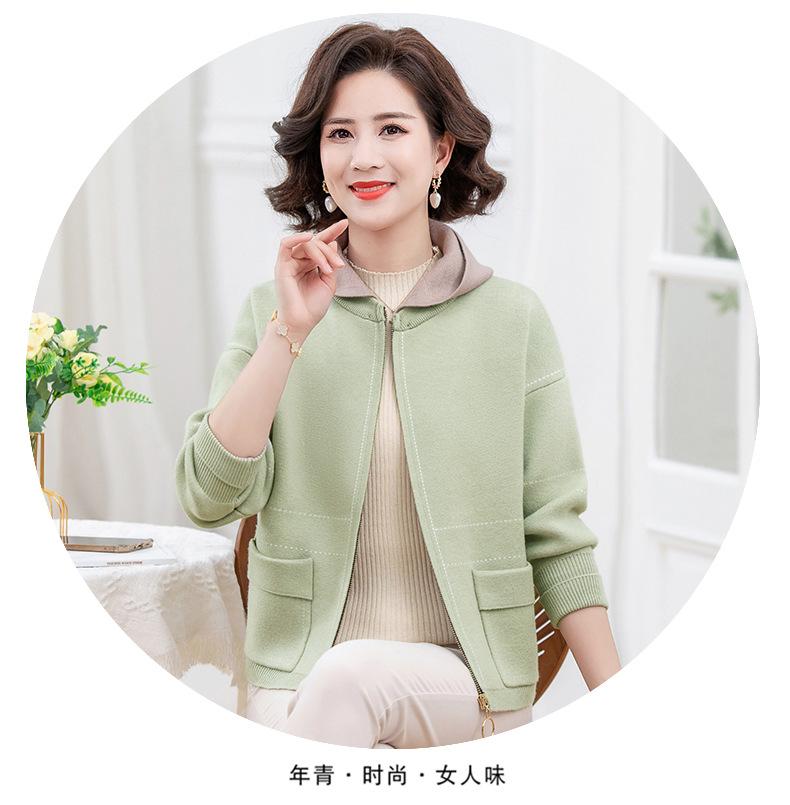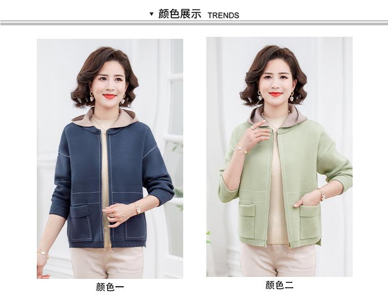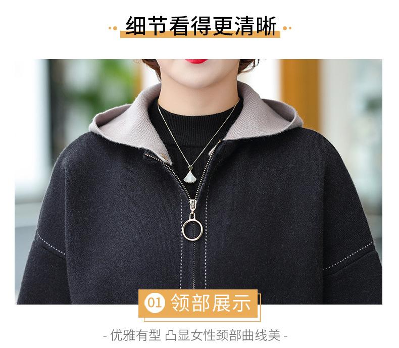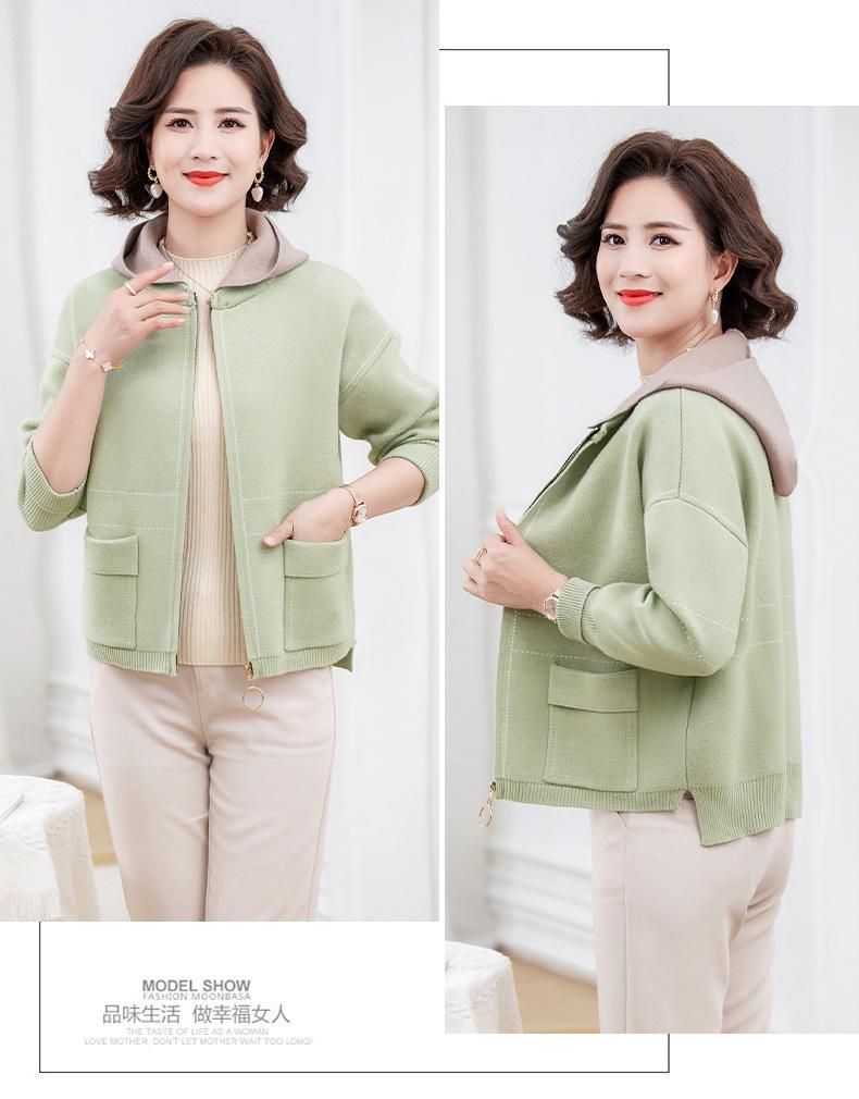 Abrigo de otoño e invierno para mamá, suéter holgado informal con capucha y cremallera, cárdigan de moda para mujeres de mediana edad y mayores