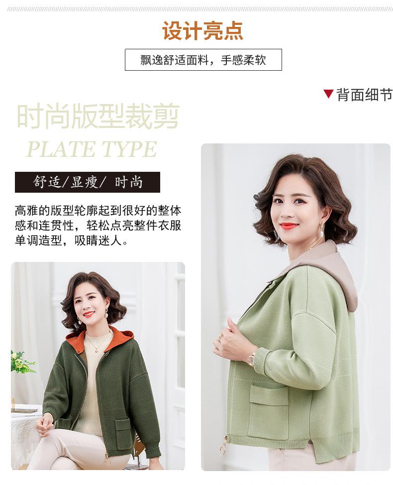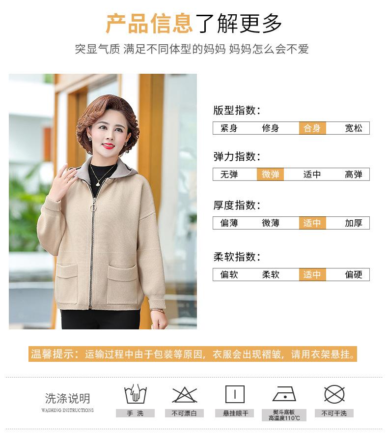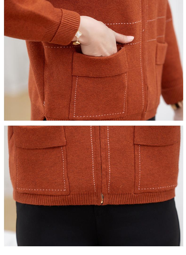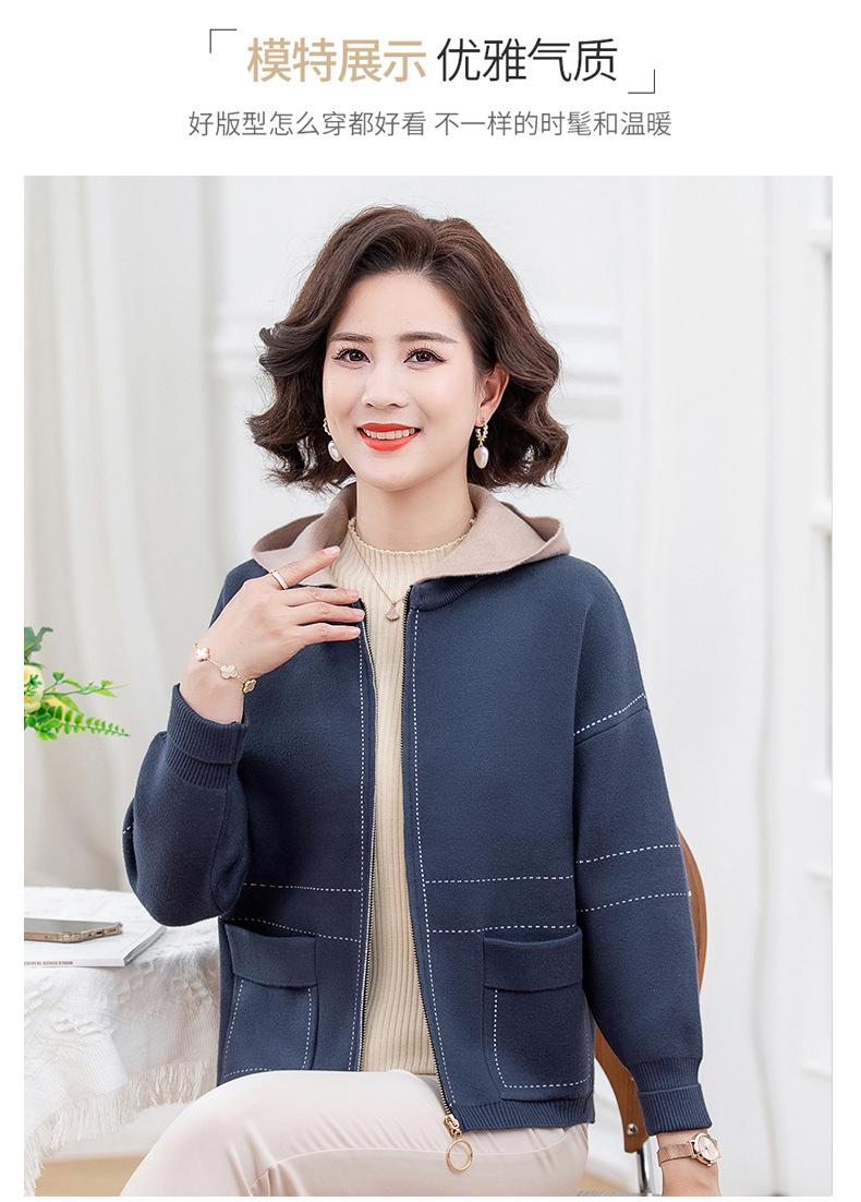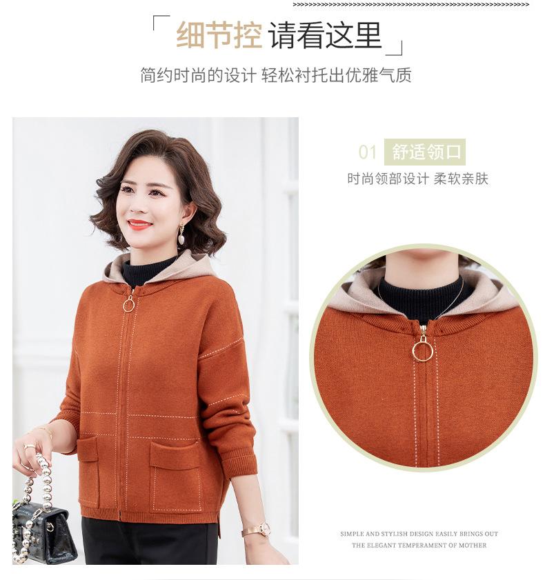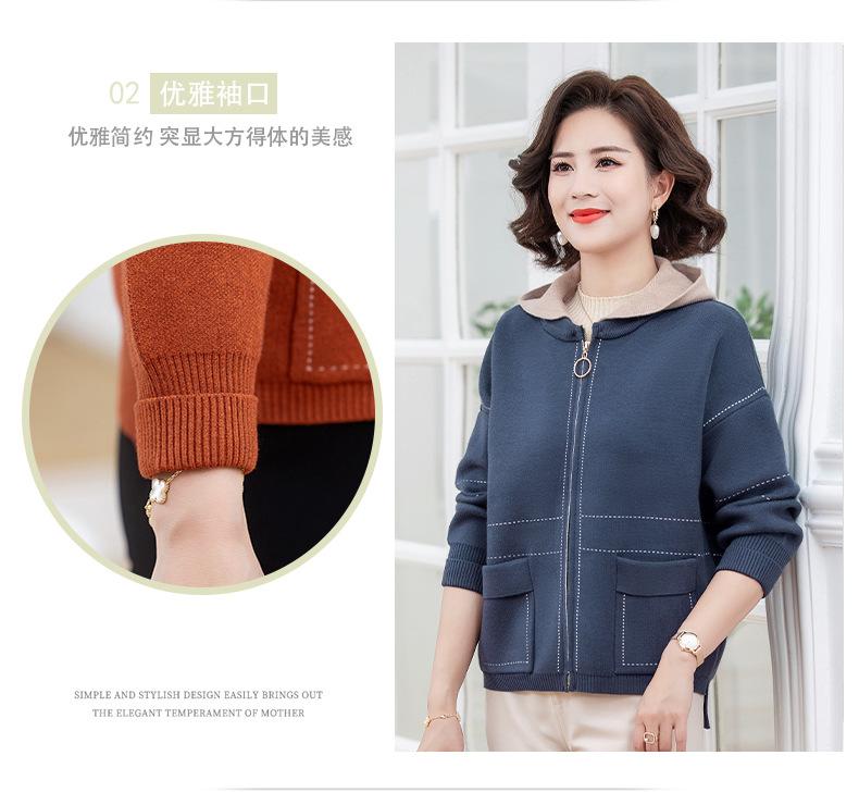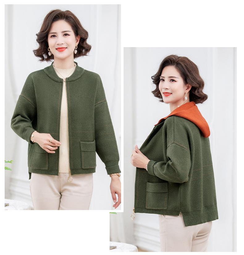 Abrigo de otoño e invierno para mamá, suéter holgado informal con capucha y cremallera, cárdigan de moda para mujeres de mediana edad y mayores