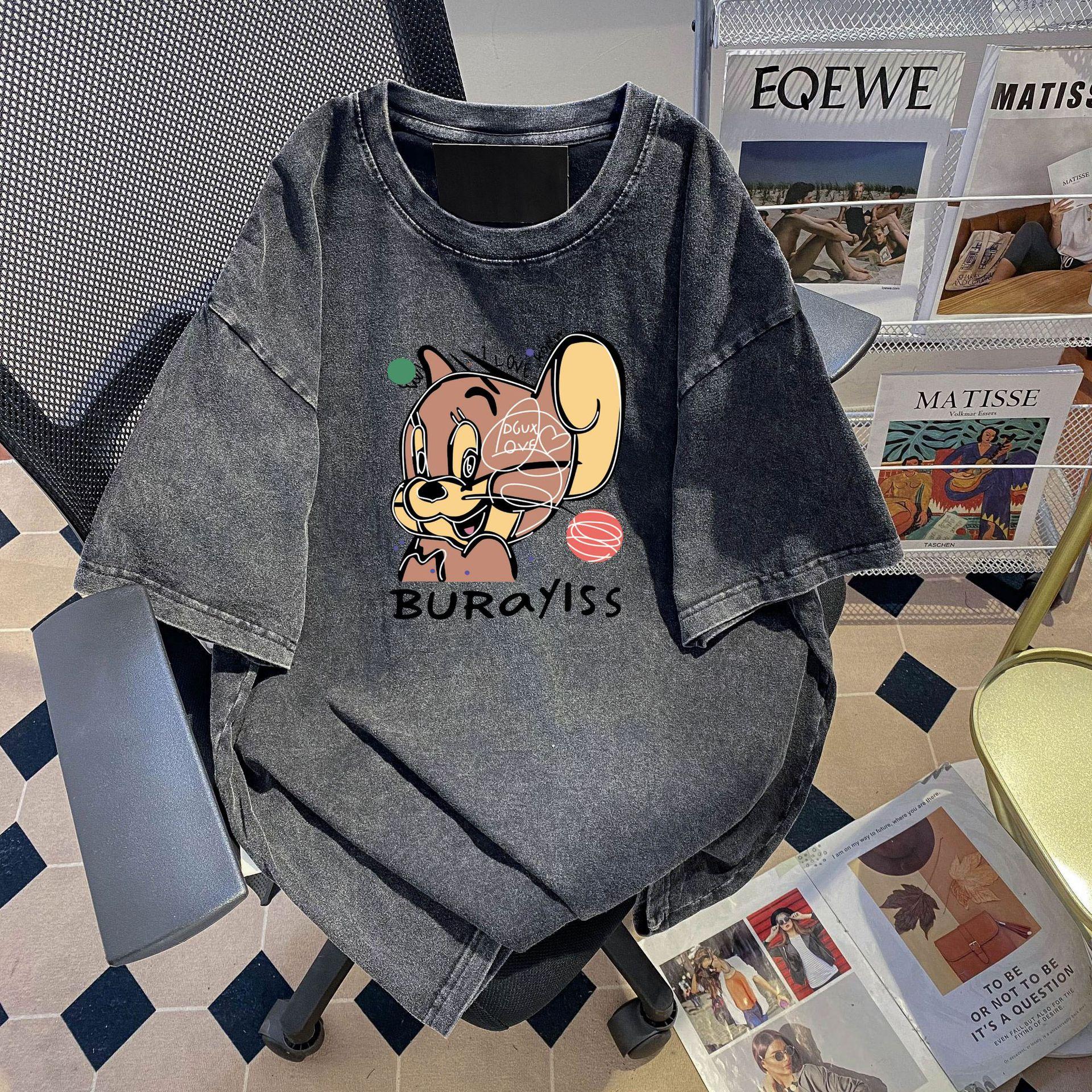 Camiseta de Manga Corta de Algodón Puro con Sentido del Diseño Nicho Vintage Americano para Mujer, Verano, Holgada, Talla Grande mm200 Jin