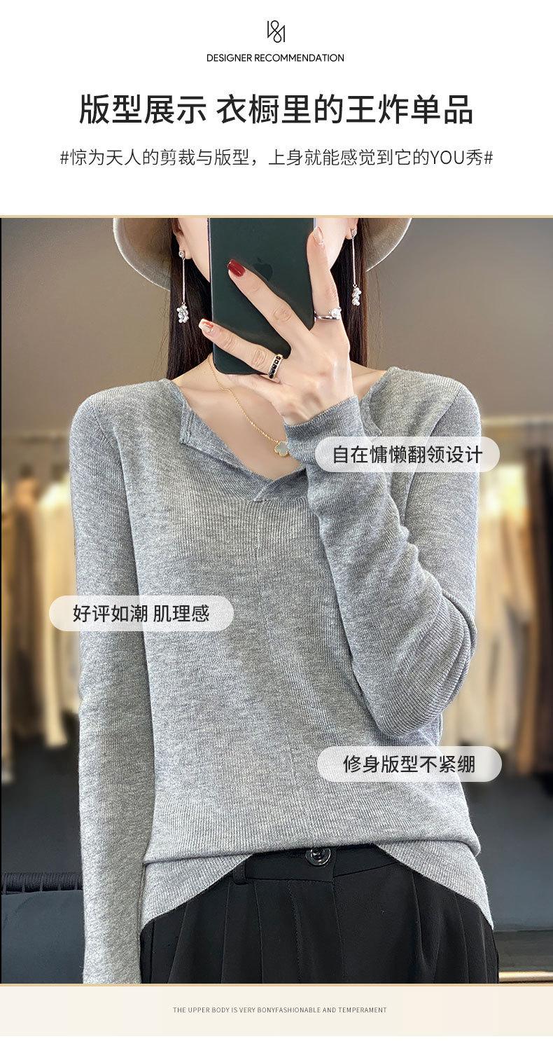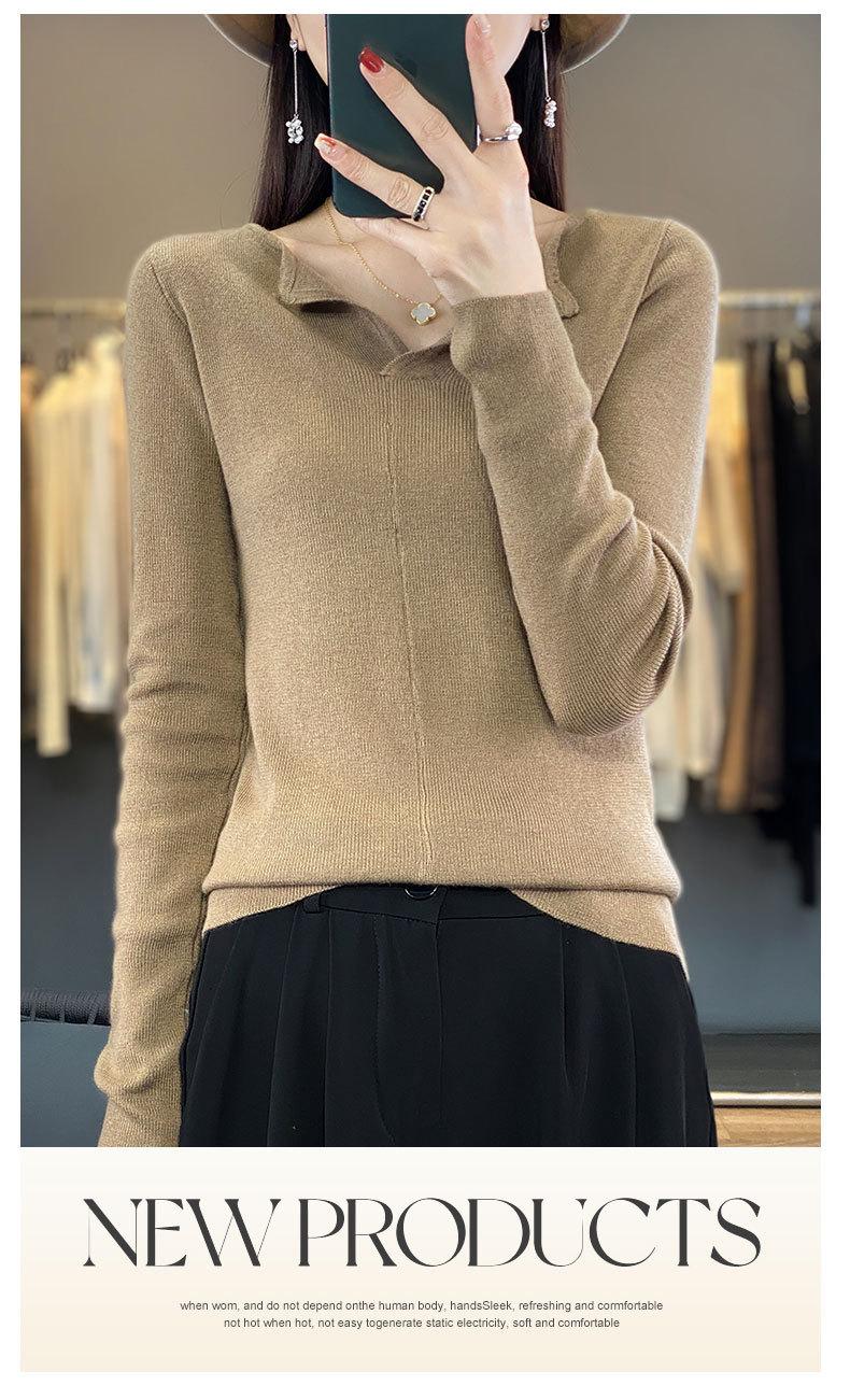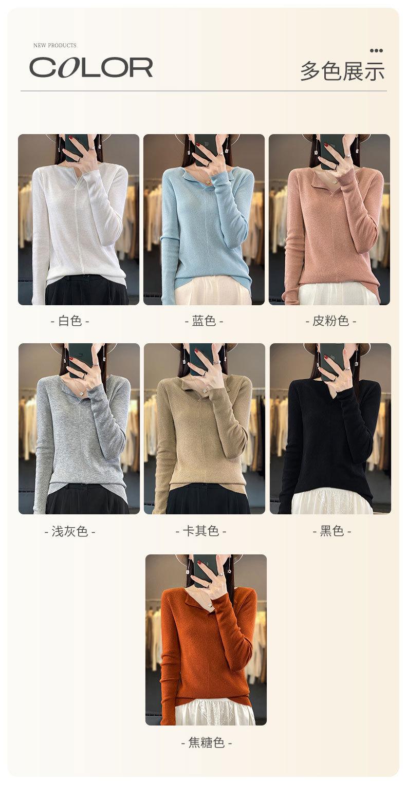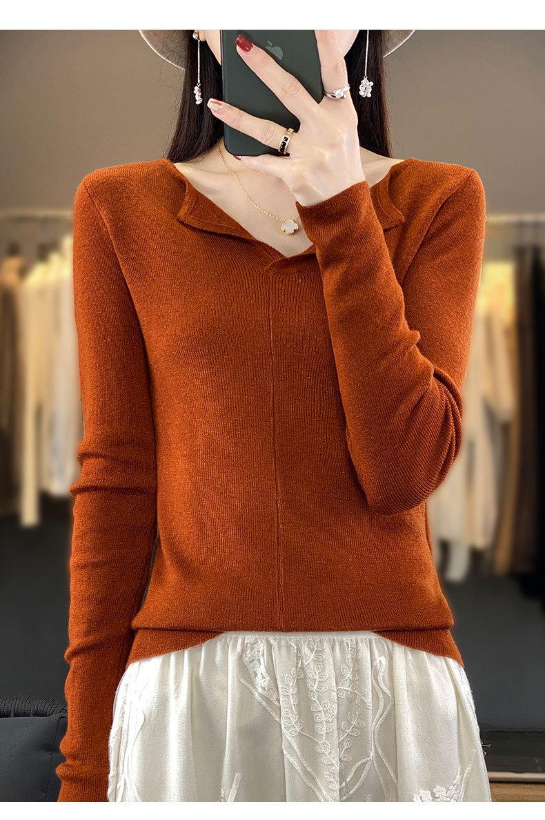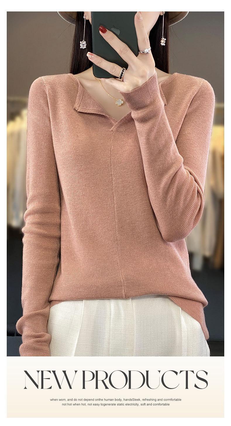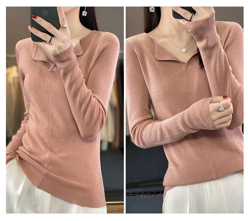 Suéter de cuello en V medio abierto de lana de principios de otoño, suéter fino de nicho para mujer, camisa de fondo, suéter delgado de manga larga, nuevo