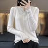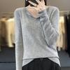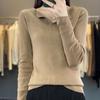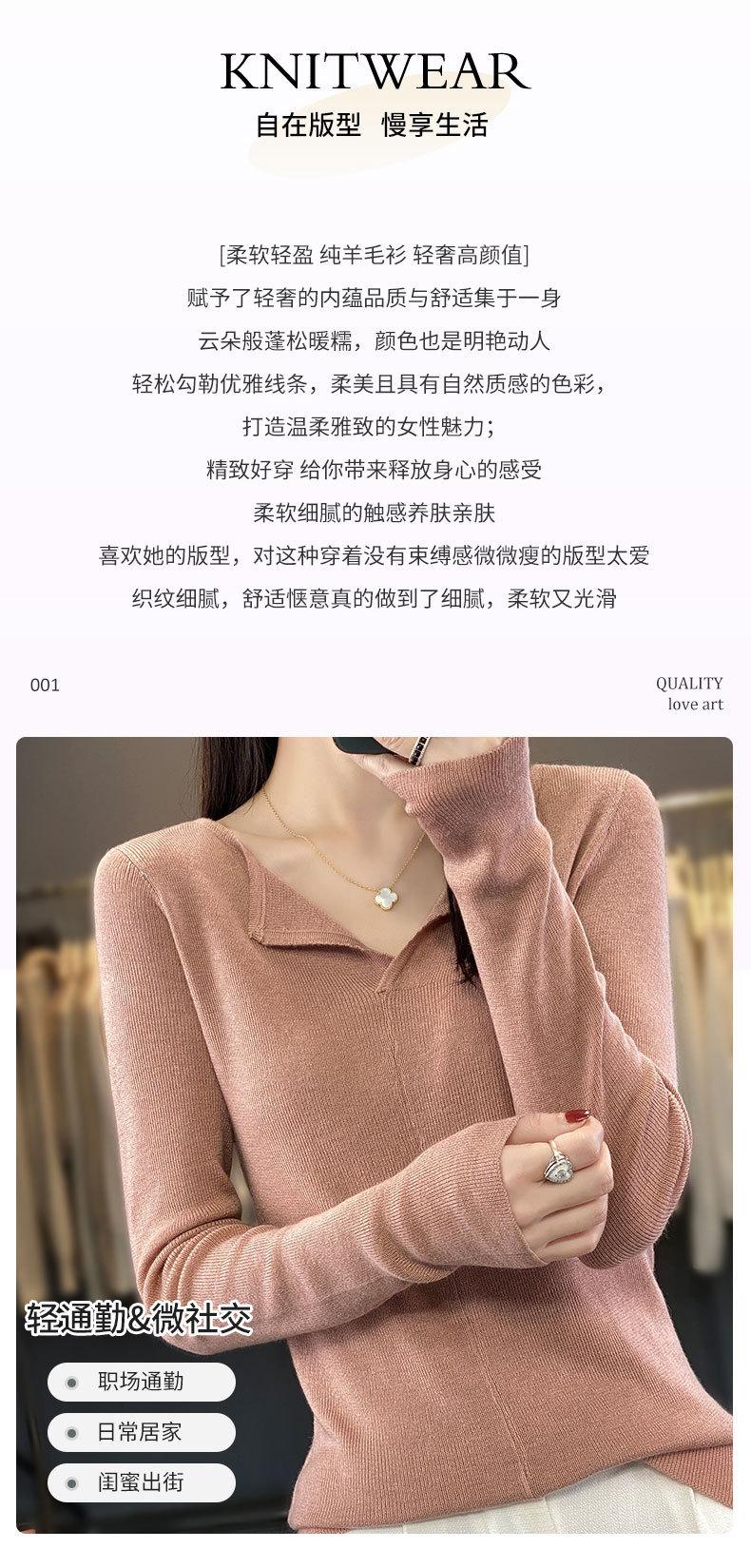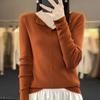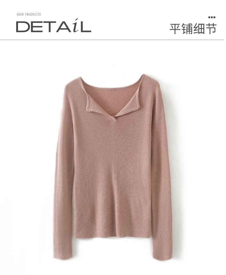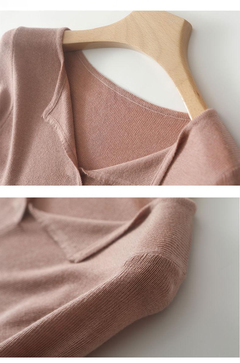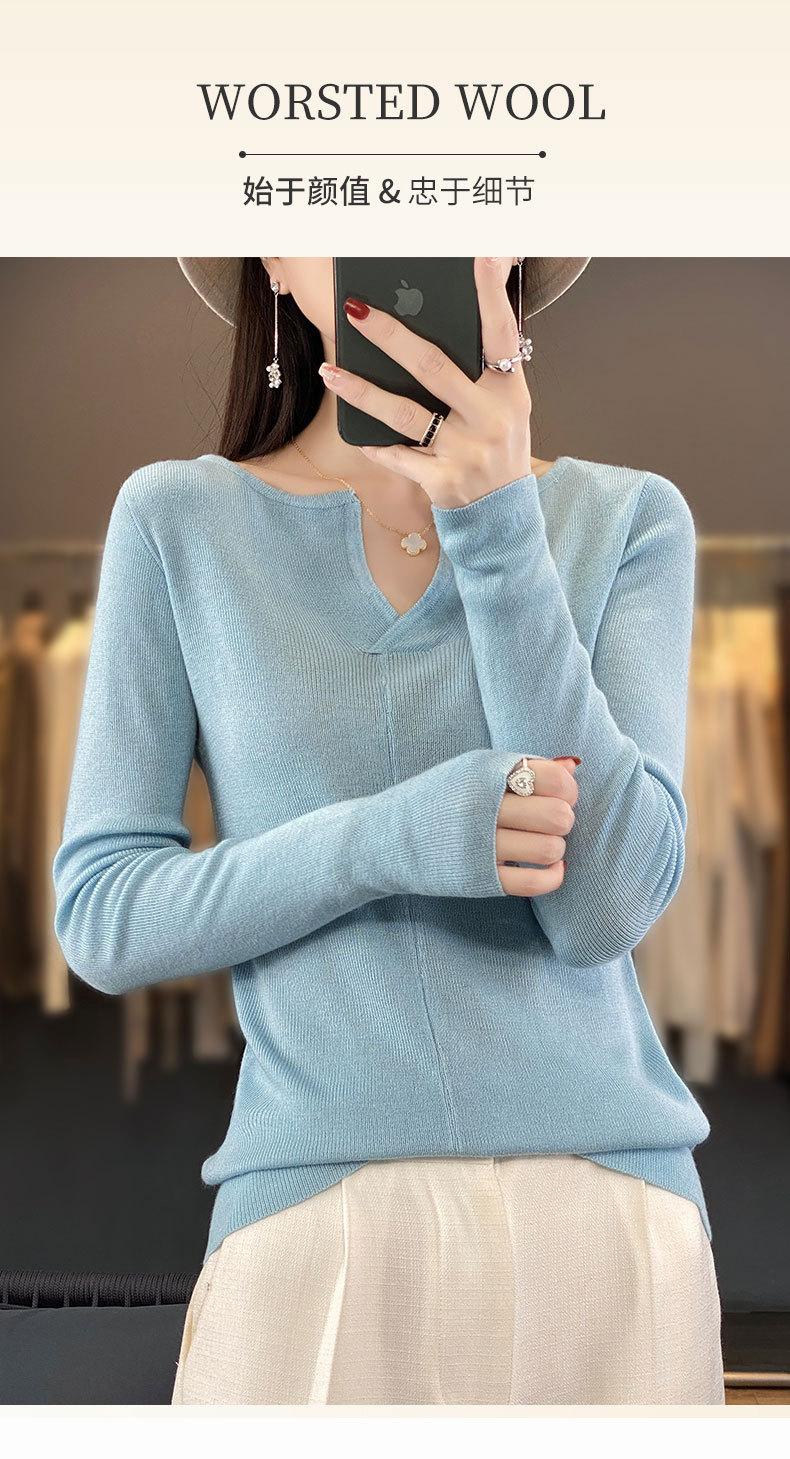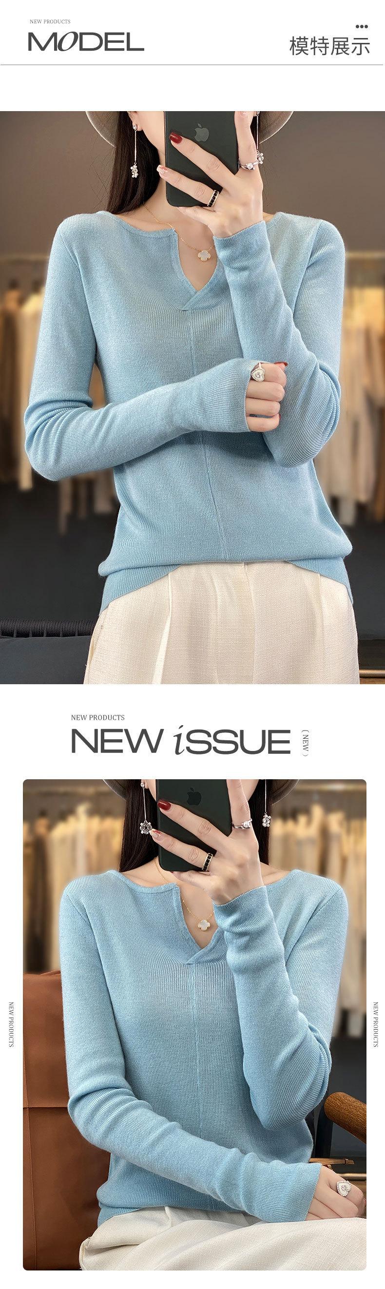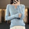 Suéter de cuello en V medio abierto de lana de principios de otoño, suéter fino de nicho para mujer, camisa de fondo, suéter delgado de manga larga, nuevo