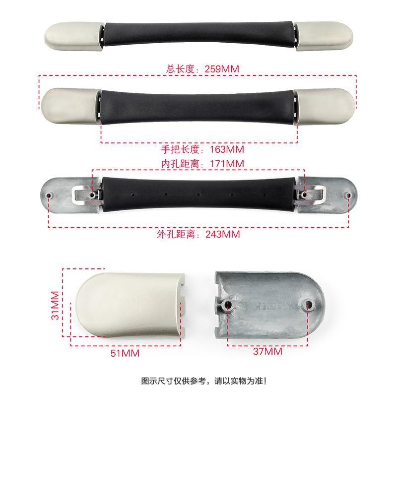 Asa de equipaje de producción Guangzhou Zhengbo, asa para accesorios de equipaje, asa para caja de contraseña, asa negra de gran tamaño
