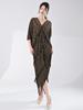 Vestido de alta gama de moda para mujer de comercio exterior, nuevo, bronceado, suelto, de talla grande, con borlas, irregular, plisado.