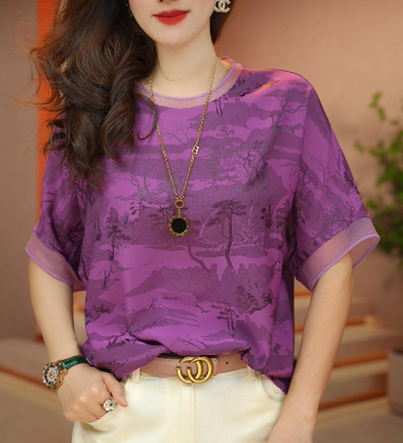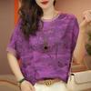 Camisa floral combinable de verano 2024 para madre, con cuello de piel, adelgazante, talla grande, elegante y a la moda para mujer