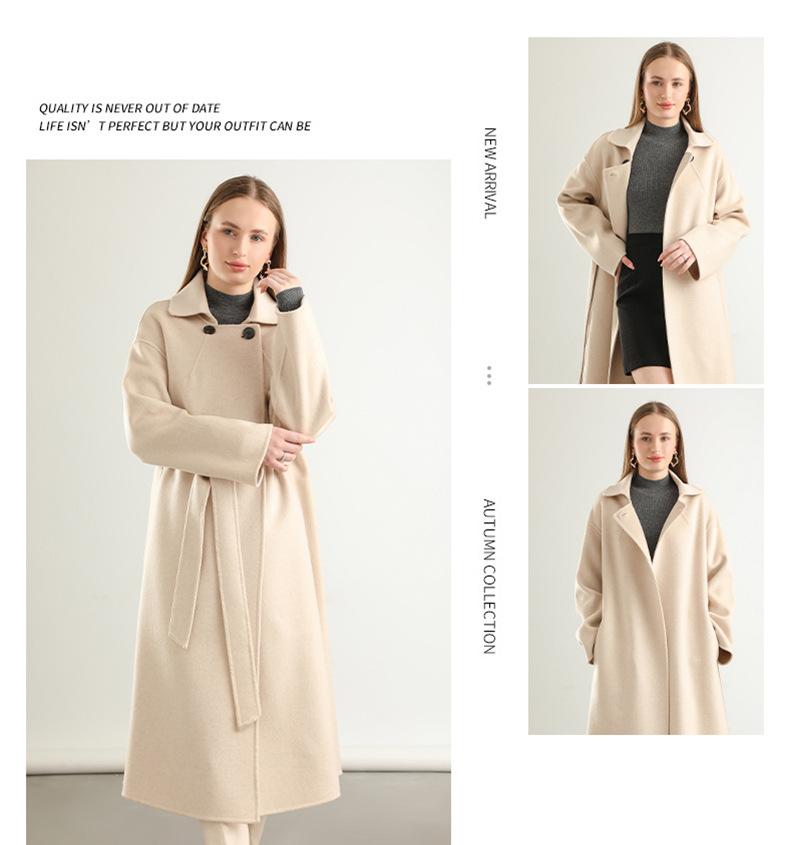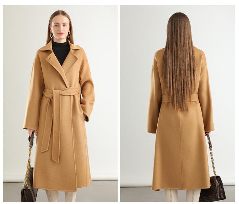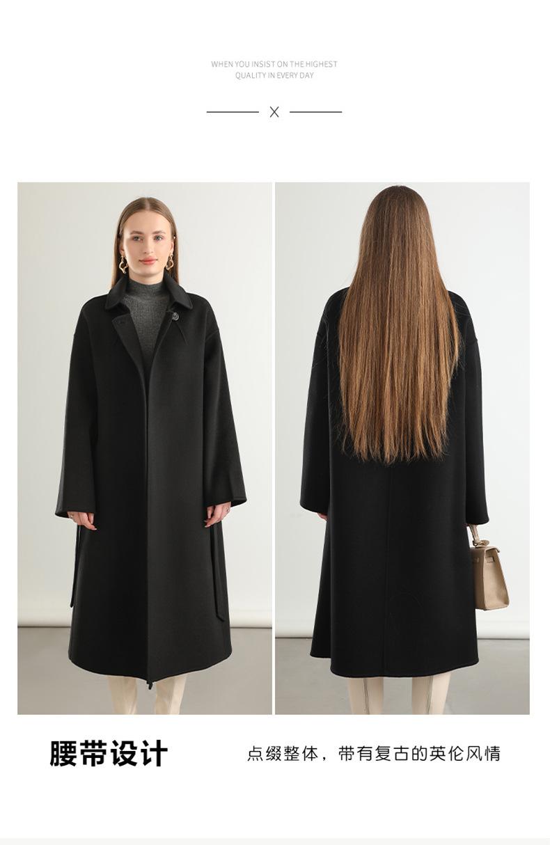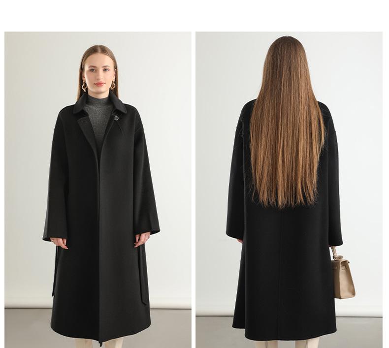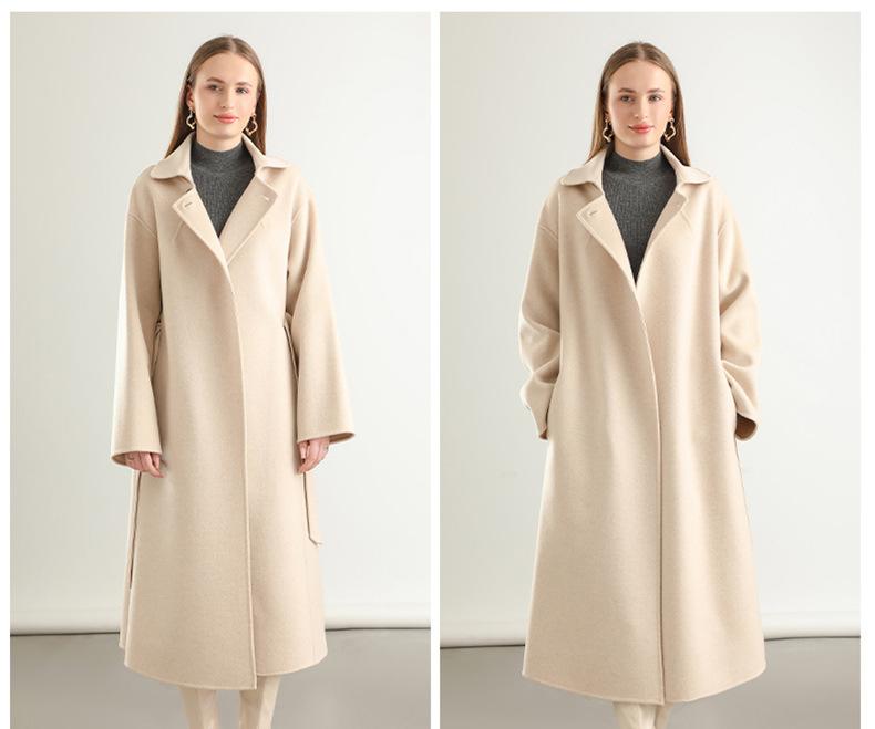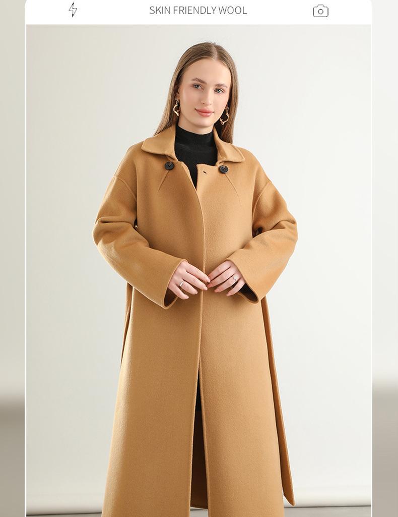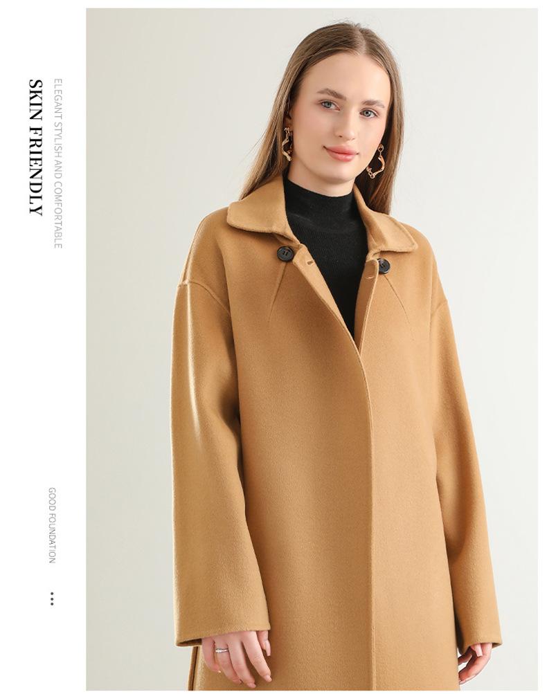 Abrigo de Lana de Doble Cara de Alta Gama para Mujer 2023 Invierno Nuevo Elegante Cuello de Traje Simple Botonadura Exterior de Lana hasta la Rodilla