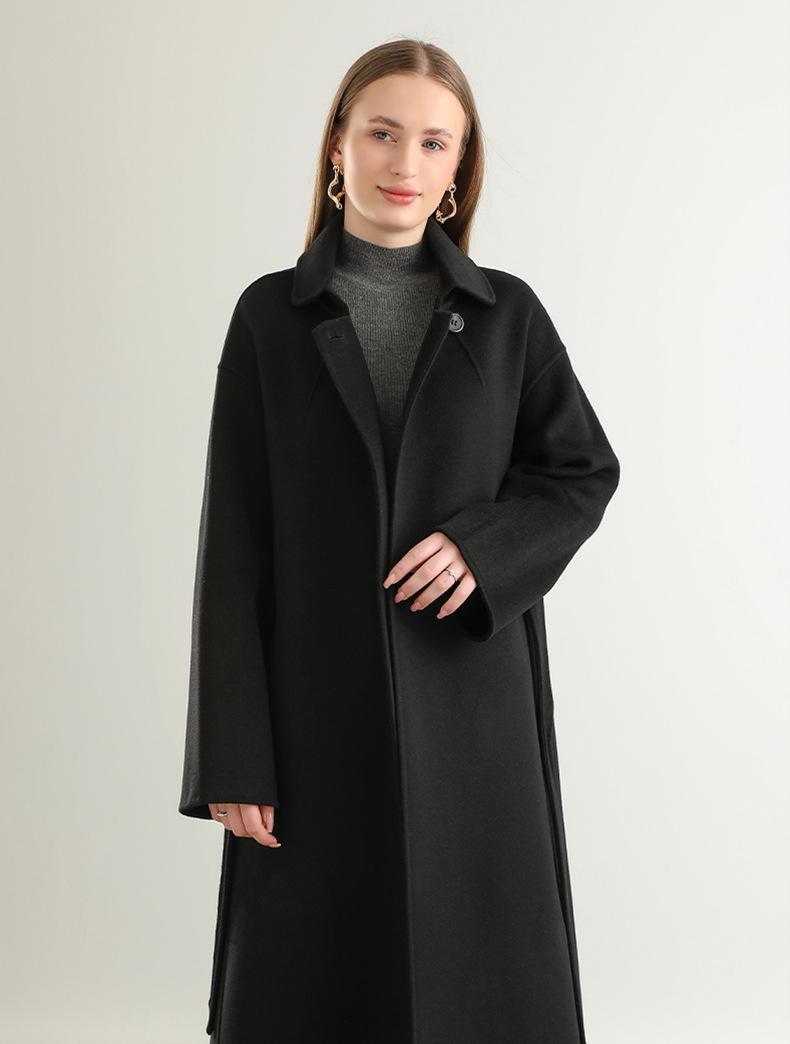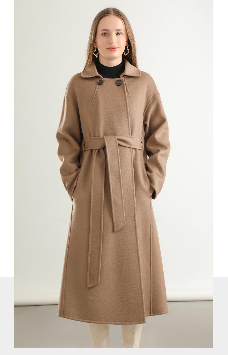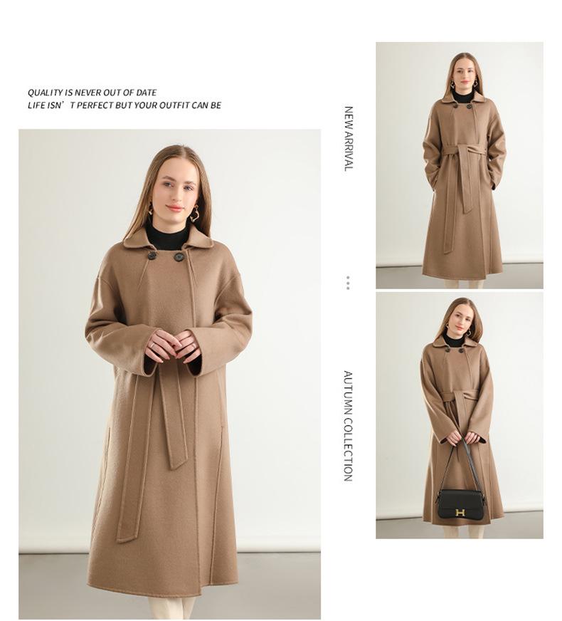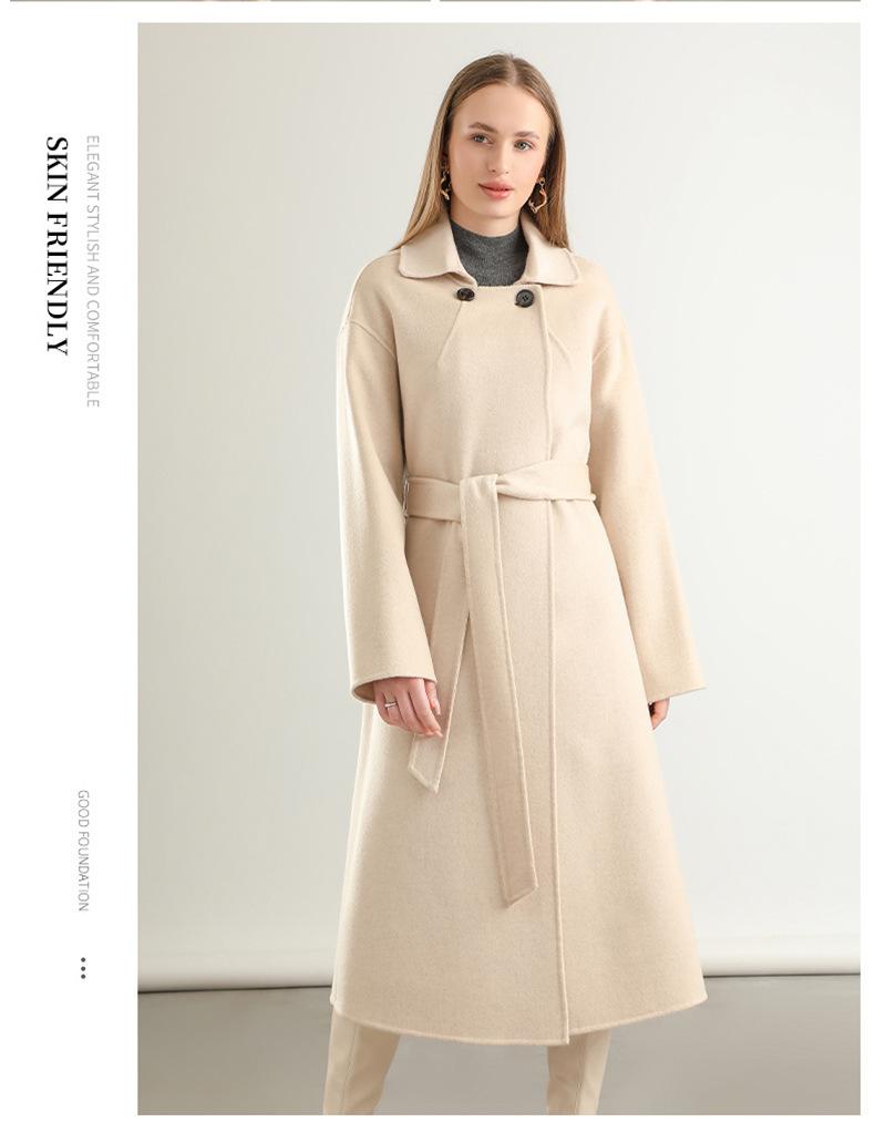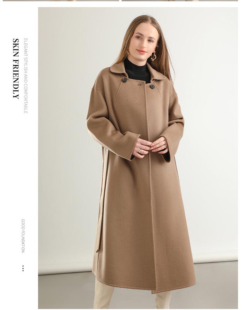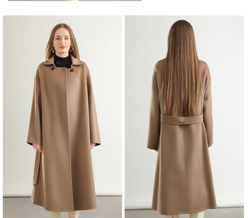 Abrigo de Lana de Doble Cara de Alta Gama para Mujer 2023 Invierno Nuevo Elegante Cuello de Traje Simple Botonadura Exterior de Lana hasta la Rodilla