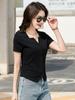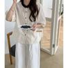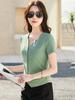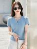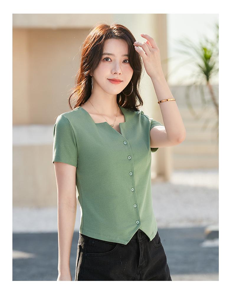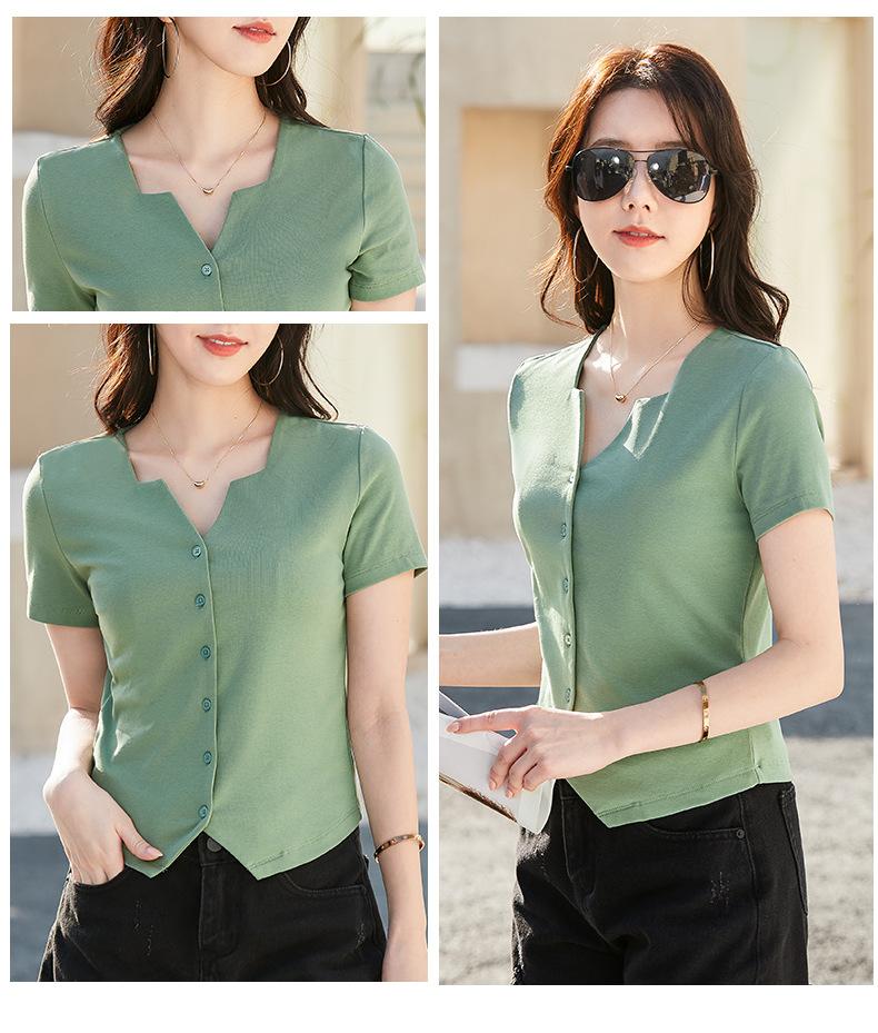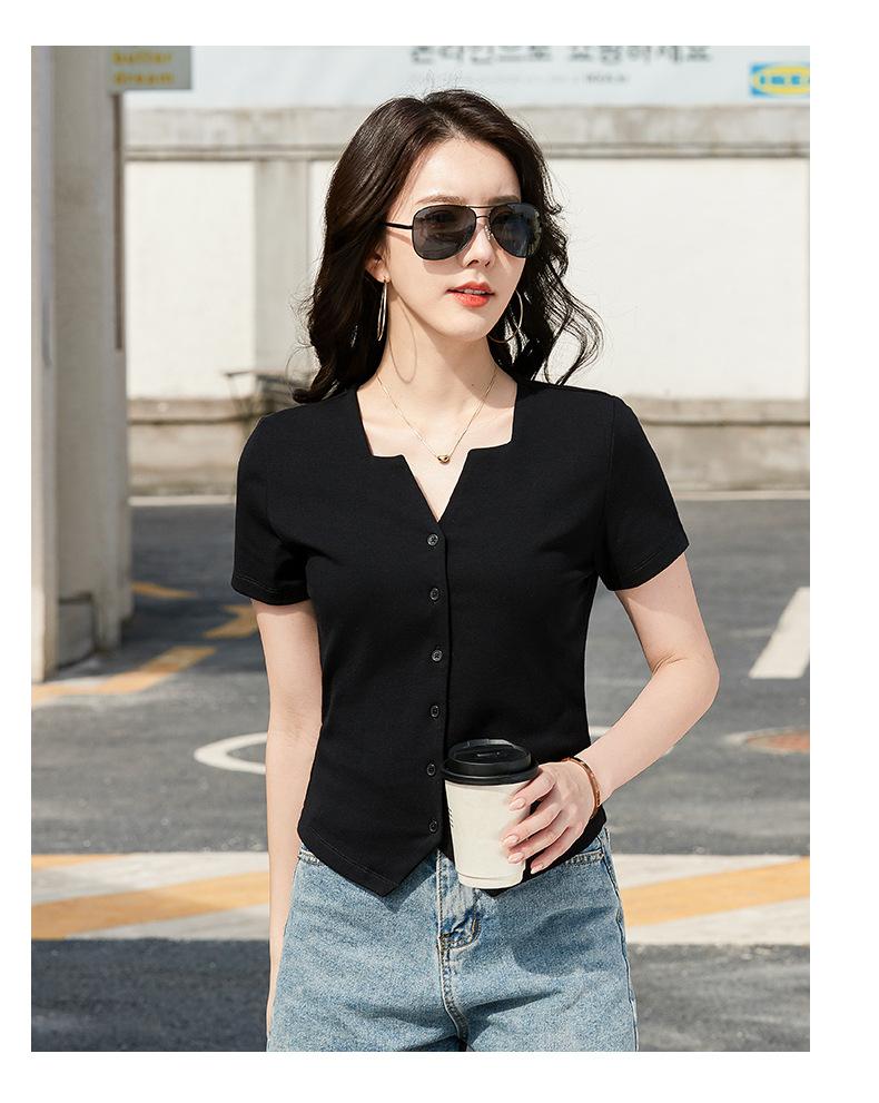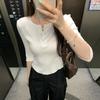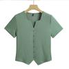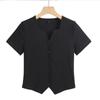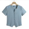 Cárdigan con cuello en V y botones, cintura alta, manga corta, para mujer, estilo coreano, cómodo, de algodón, elegante, verano 2025, 225