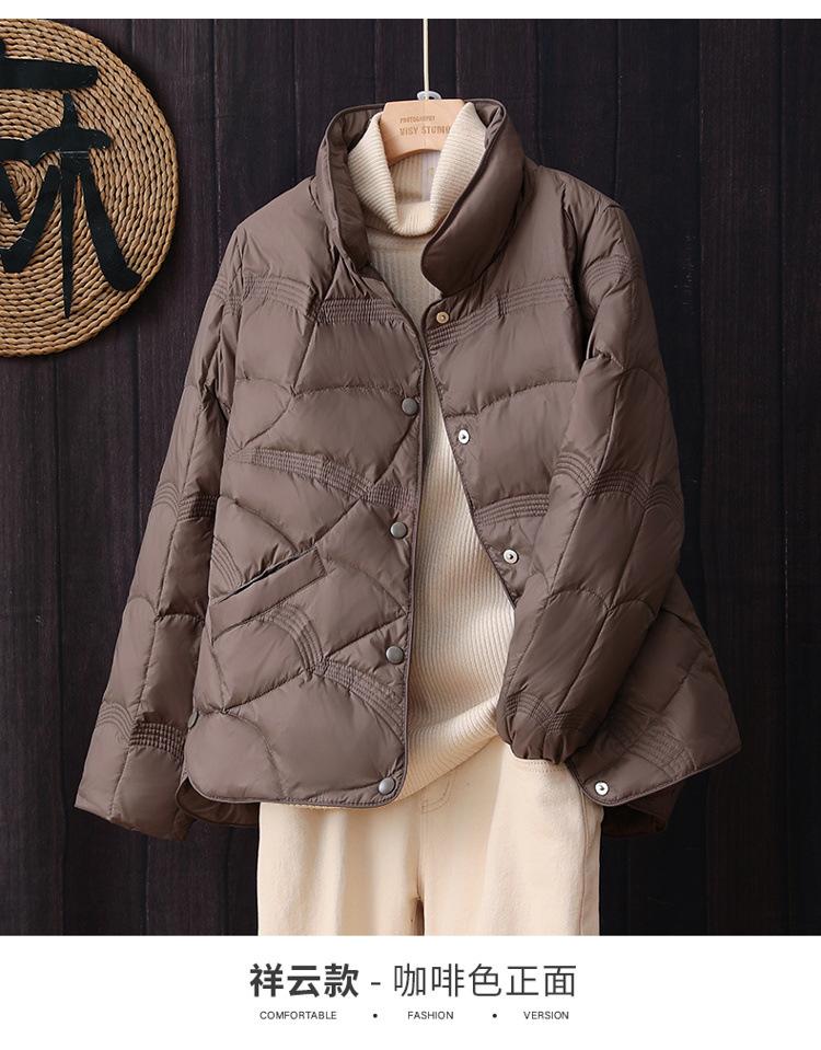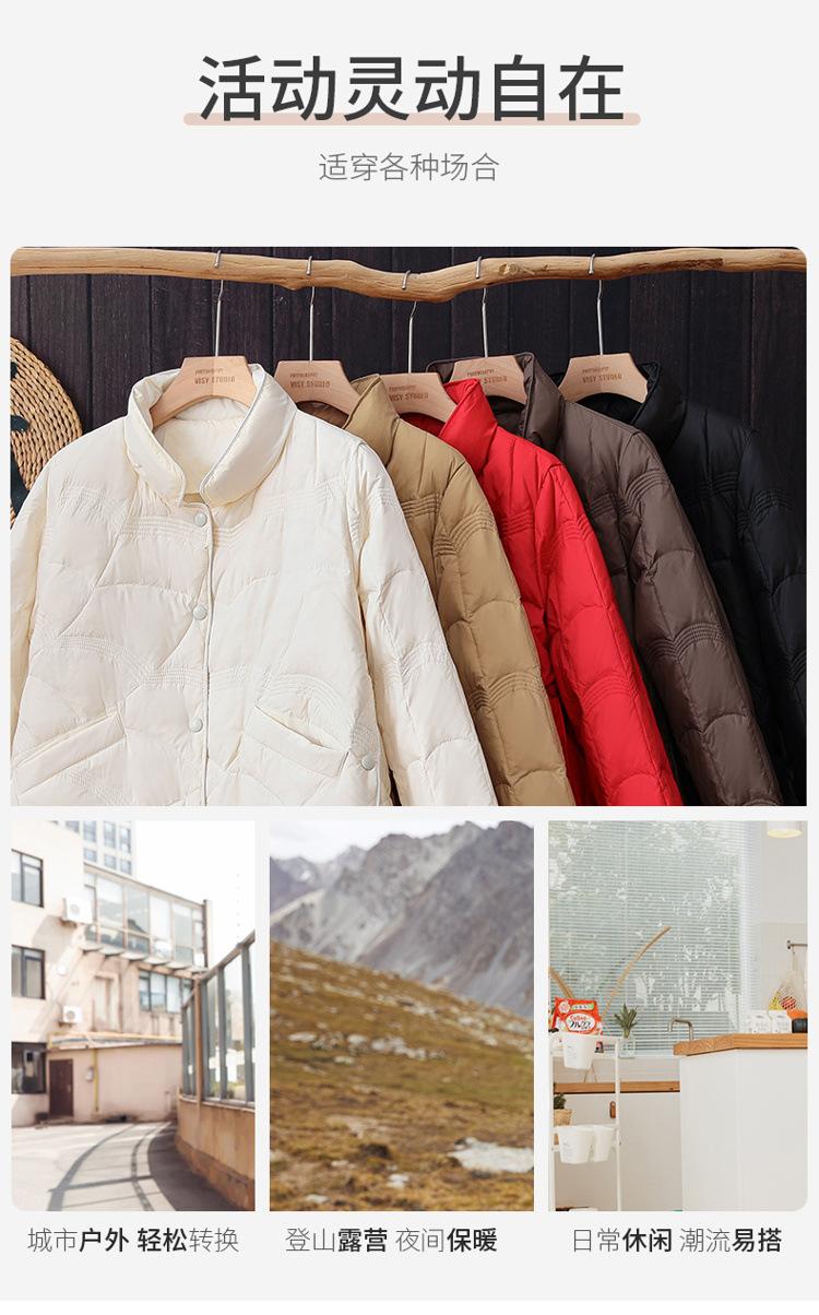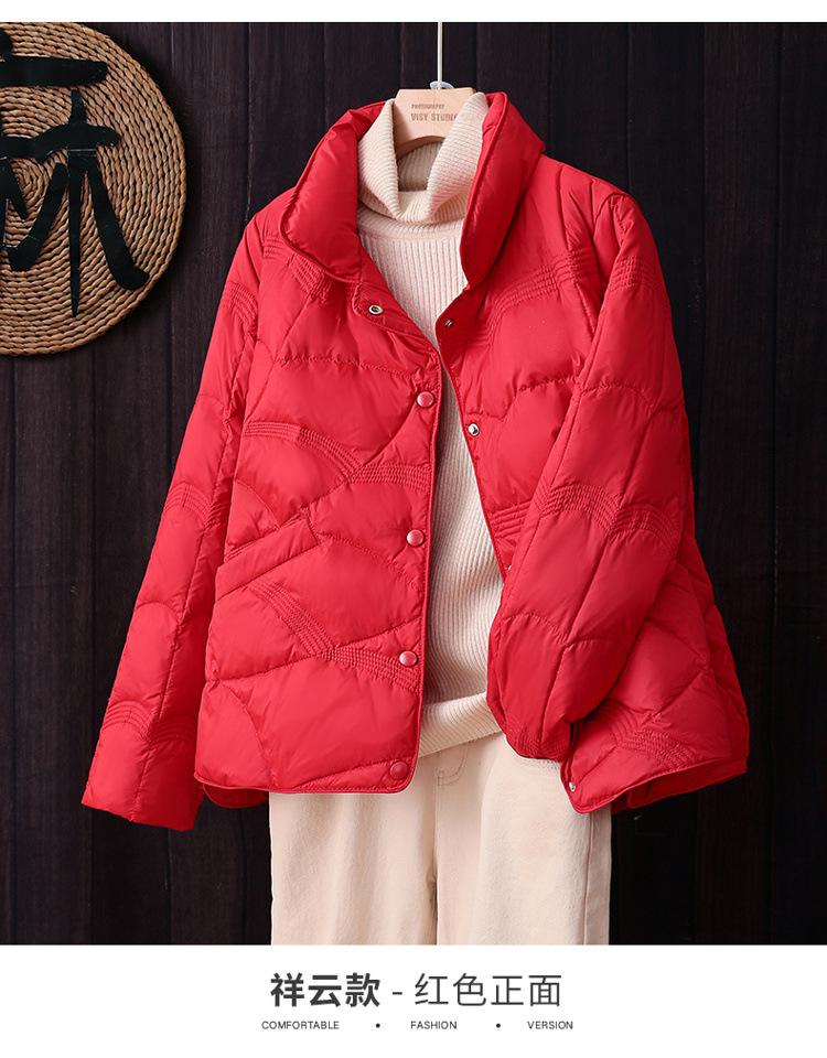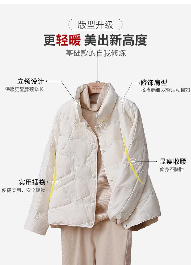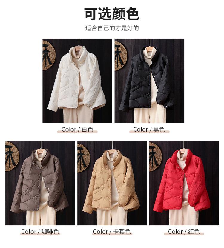 Chaqueta de plumón roja para mujer, corta, de pato blanco, otoño e invierno 2023, versátil, ligera, cálida, con cuello alto, abrigo de moda al por mayor