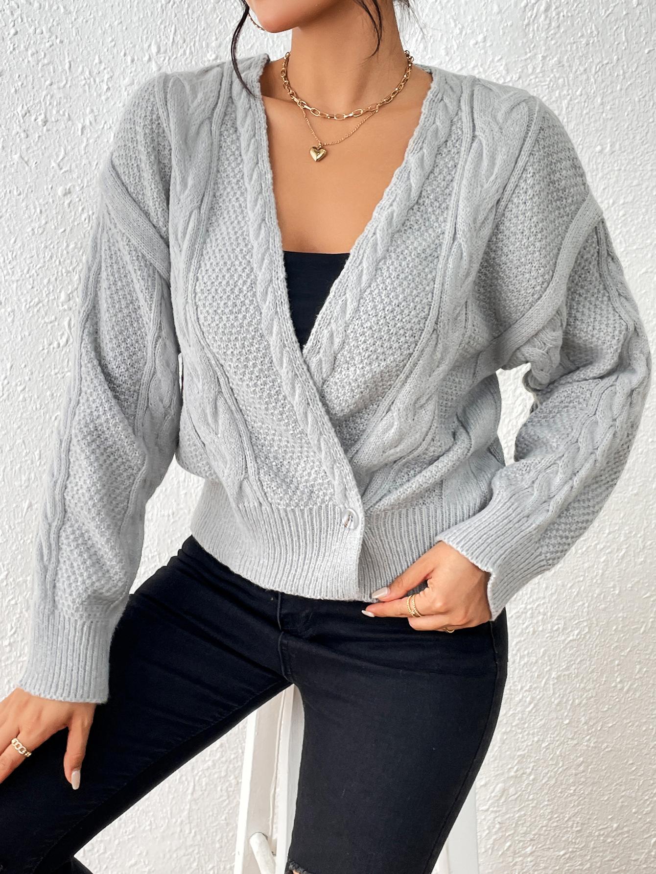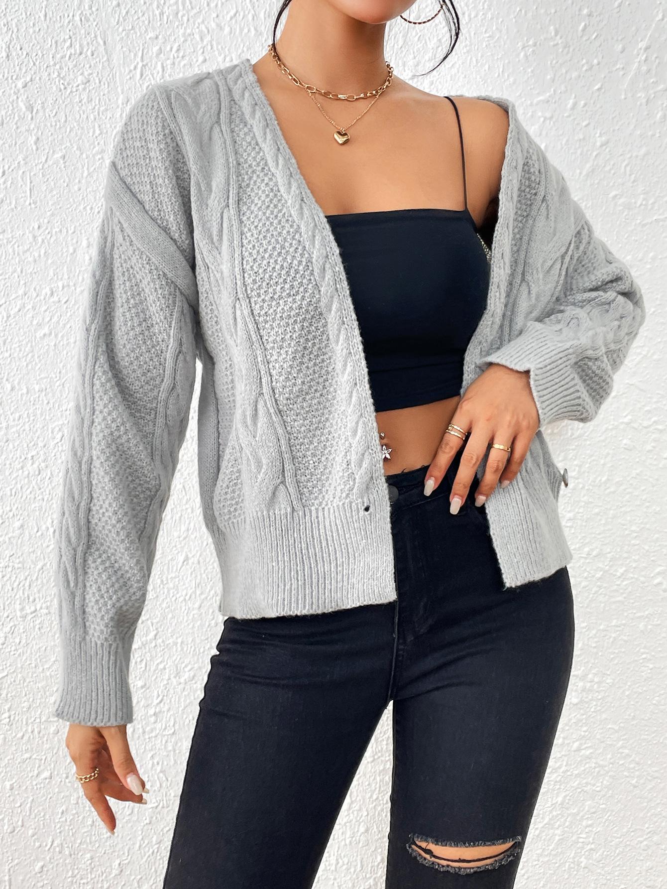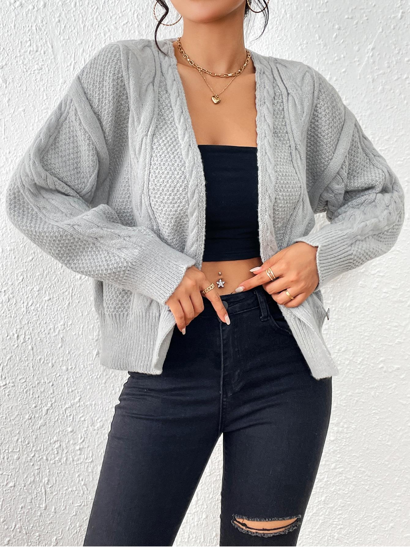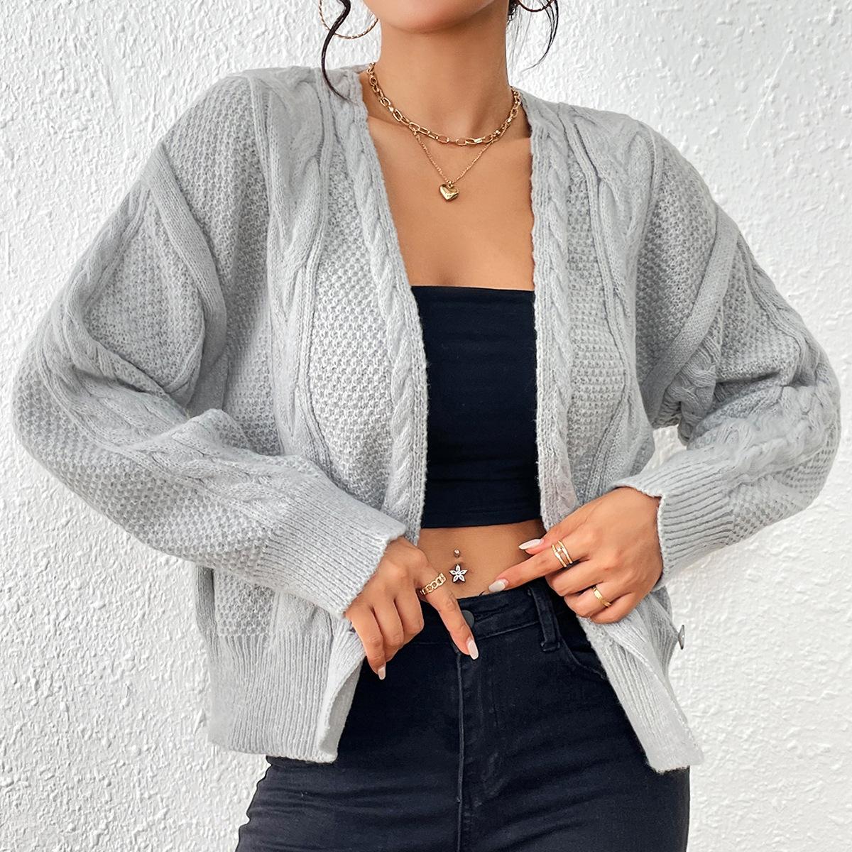 Novedades de Otoño e Invierno Europeas y Americanas 2023 Amazon Transfronterizo Ins Cárdigan Tejido Simple con Patrón de Cáñamo para Mujer
