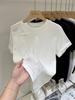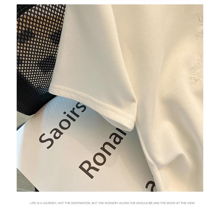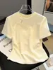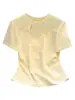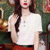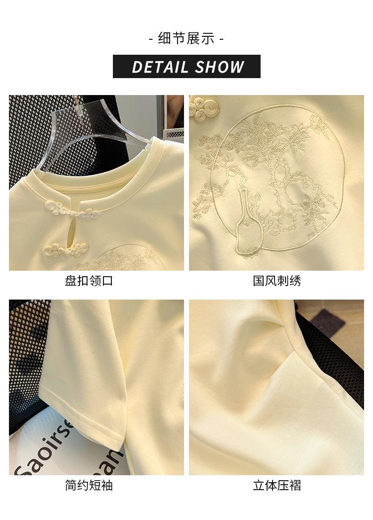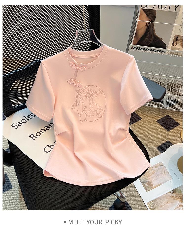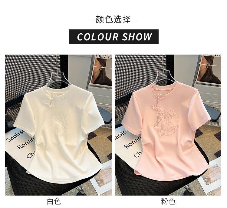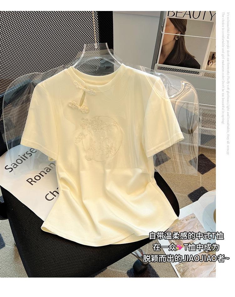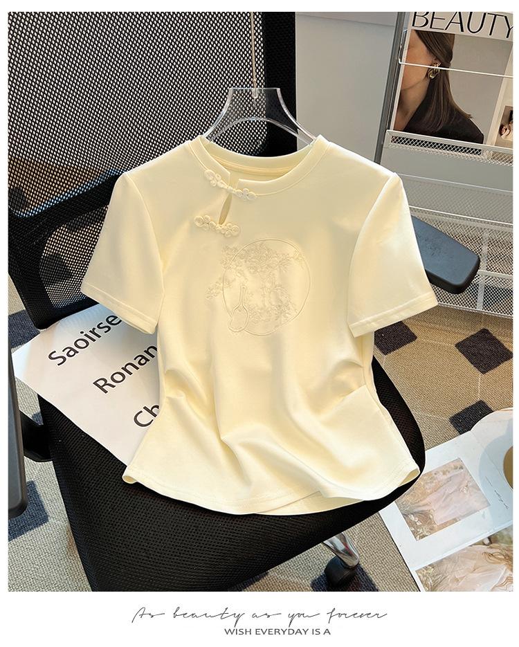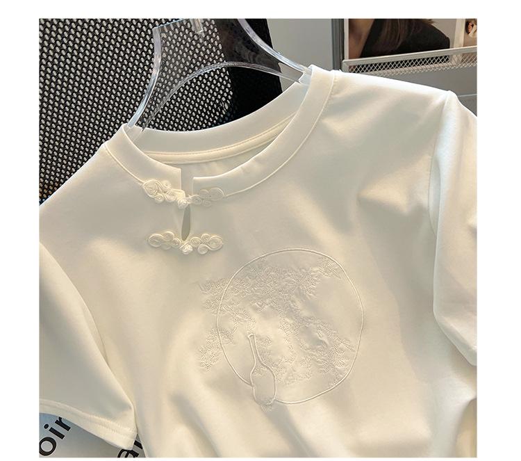 Camiseta de manga corta con cuello redondo y botones chinos para mujer, verano 2024, estilo nacional, diseño bordado, top corto