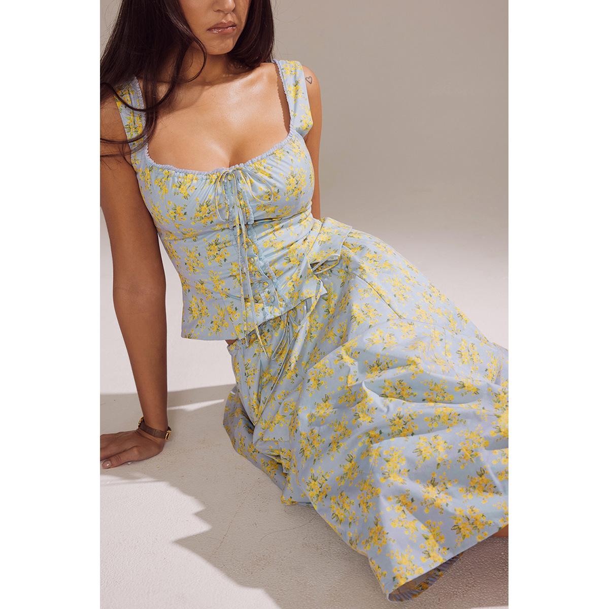 Traje de chica sexy para mujer, nuevo vestido floral de moda de primavera, vestido de tirantes estilo festivo, falda larga con abertura estrecha para mujer