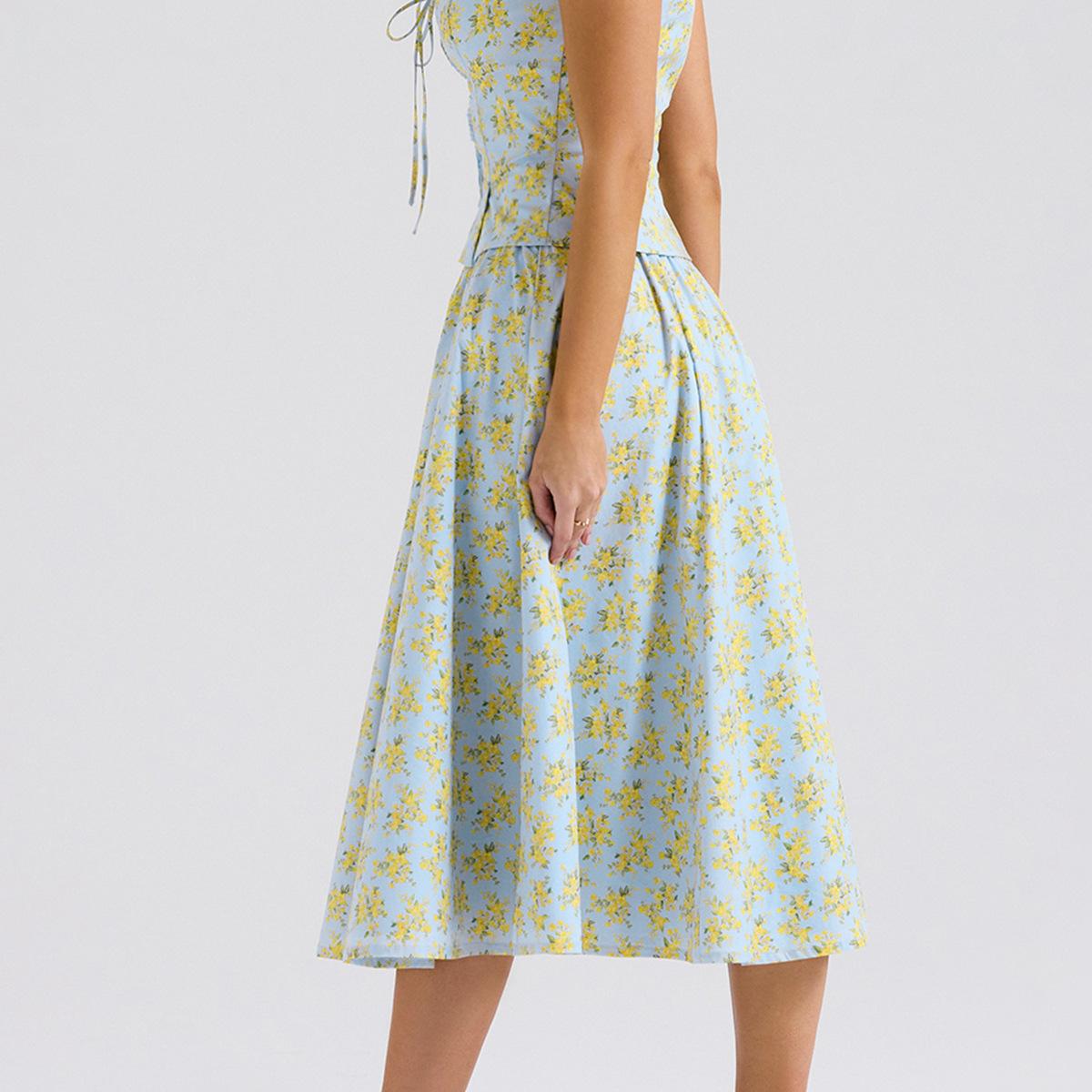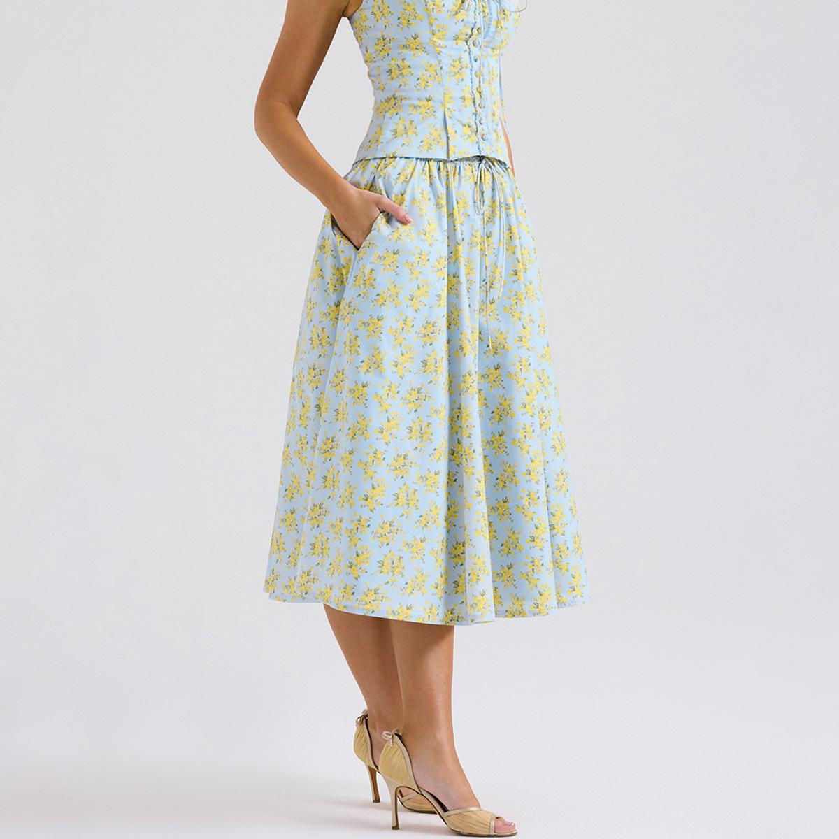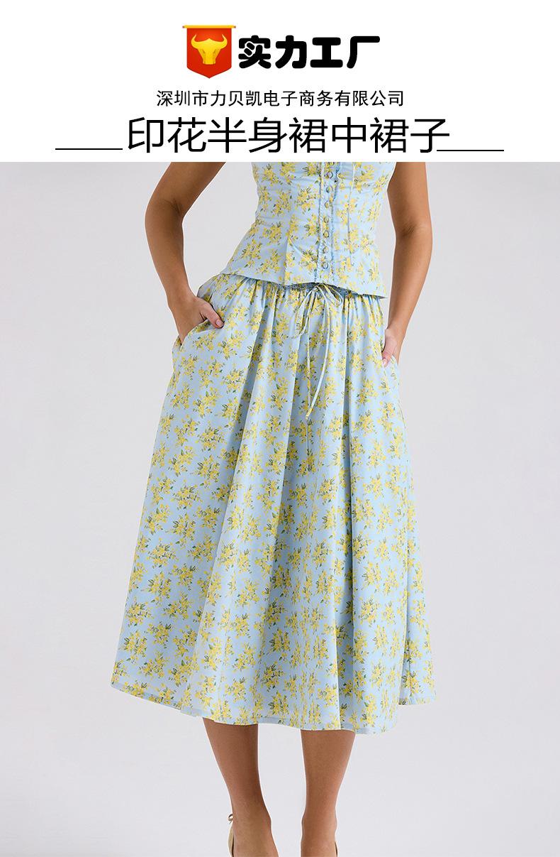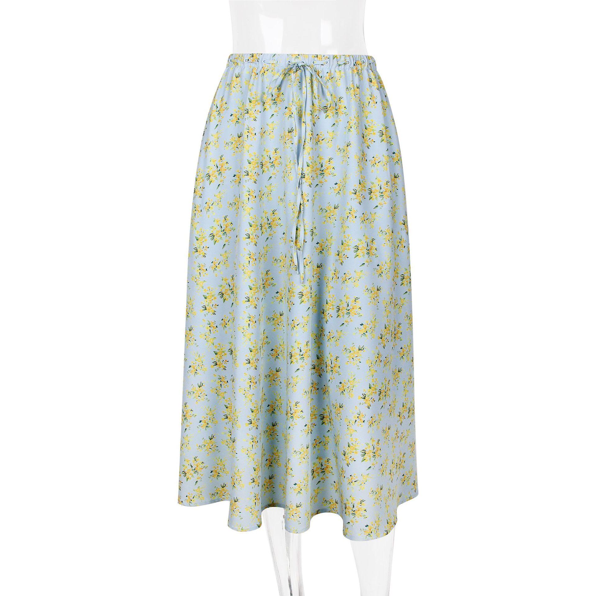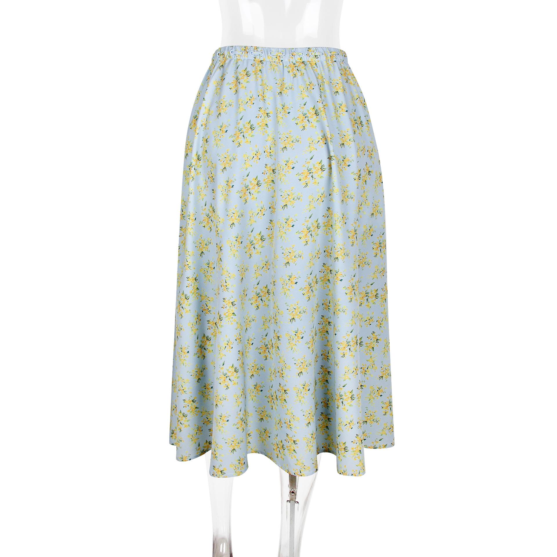 Elegante nueva ropa de mujer, moda de verano, falda floral, cintura alta, adelgazante, línea A, falda grande, estilo festivo, vestido para chica sexy