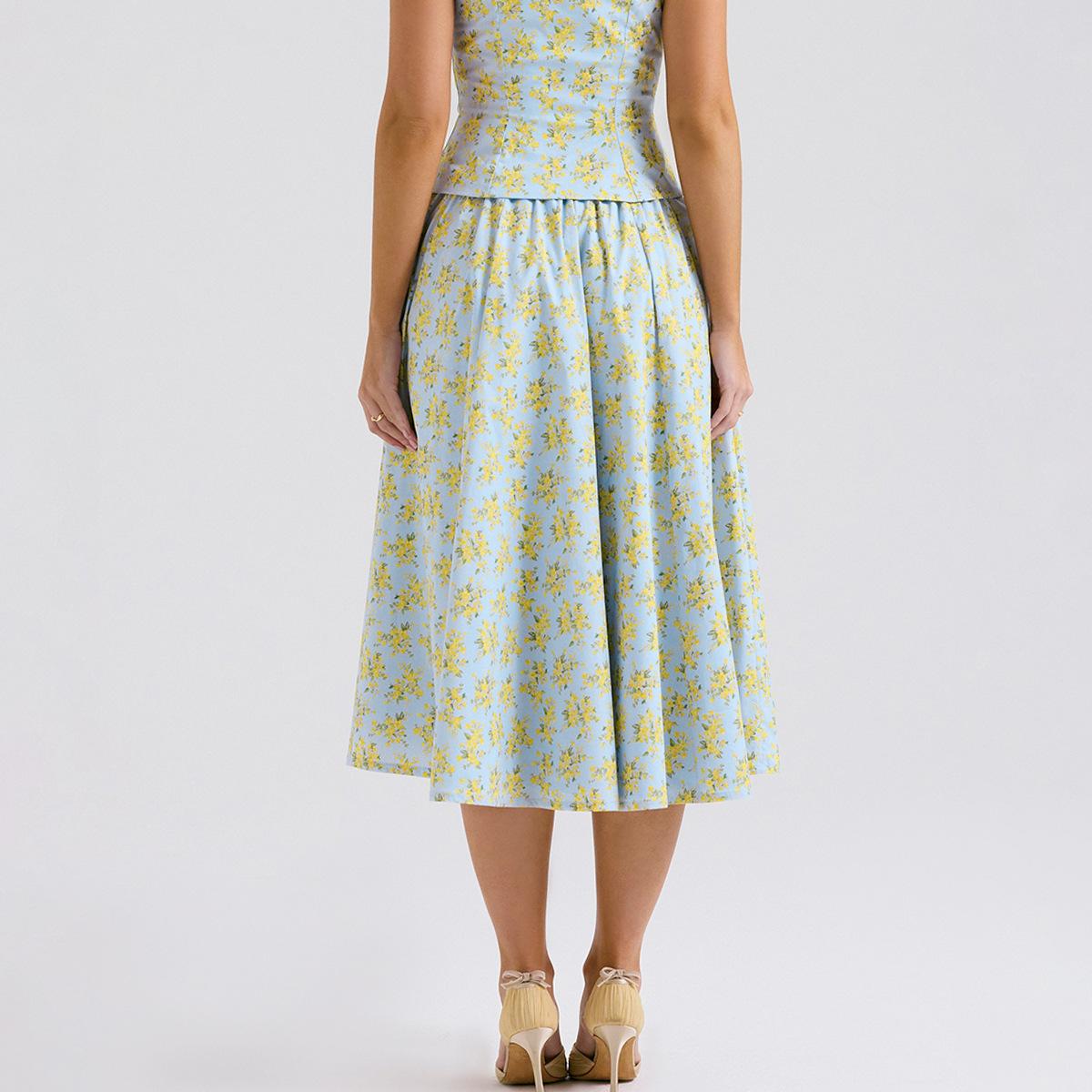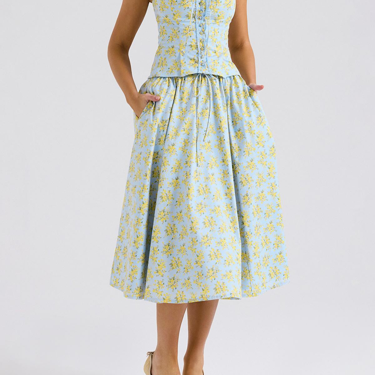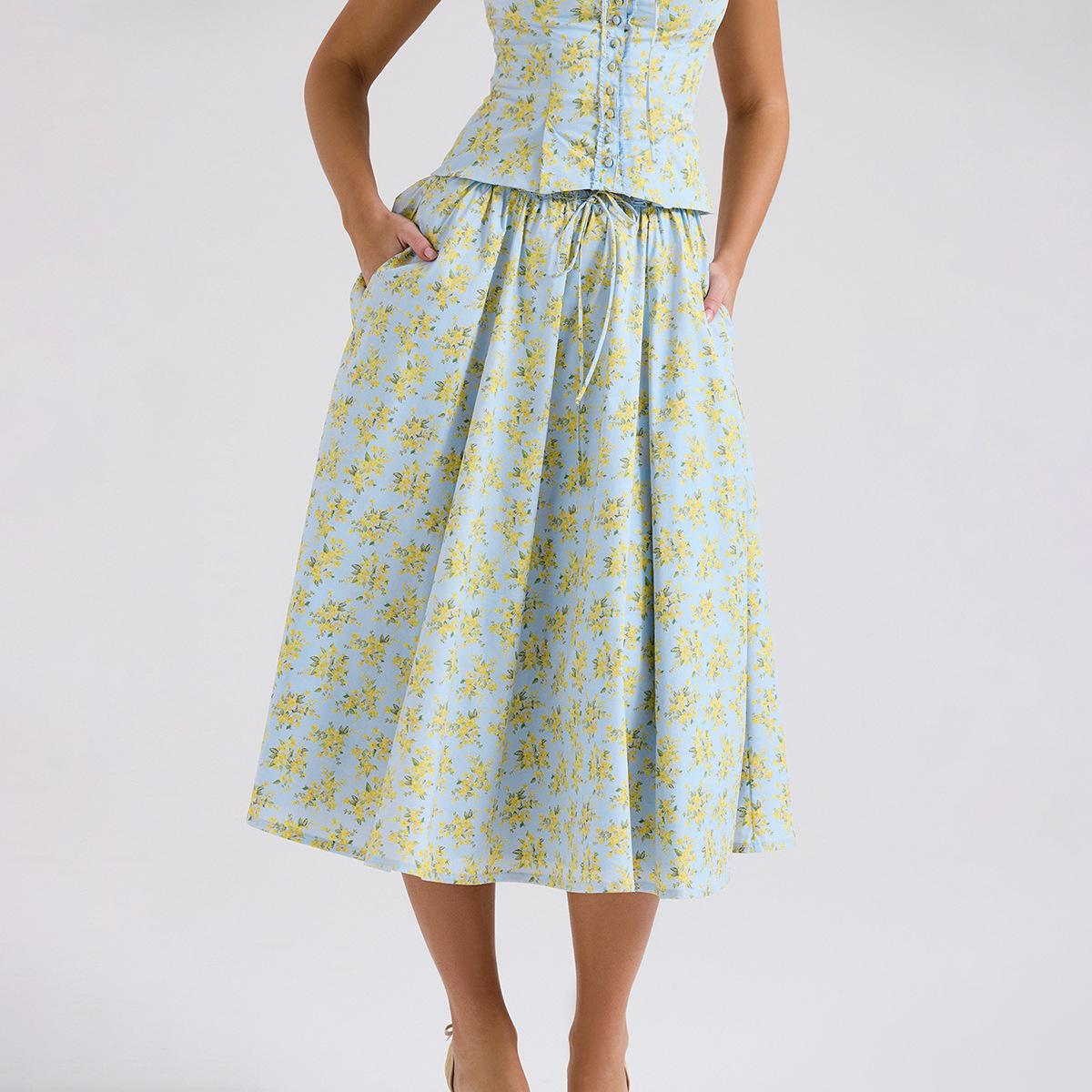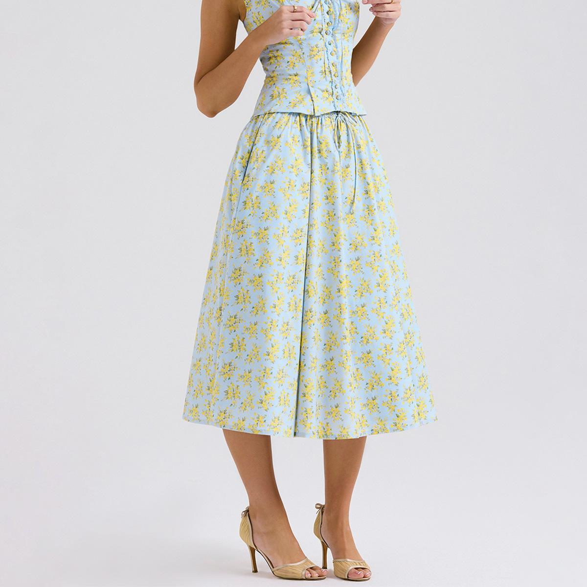 Elegante nueva ropa de mujer, moda de verano, falda floral, cintura alta, adelgazante, línea A, falda grande, estilo festivo, vestido para chica sexy
