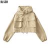 Chaqueta corta holgada con capucha, ligera, transpirable y con bolsillos grandes, estilo coreano, estilo V, informal, con letras