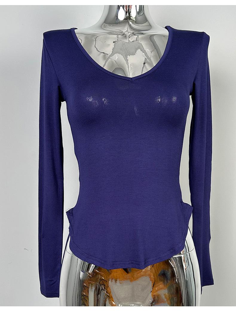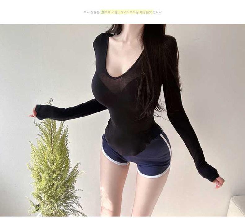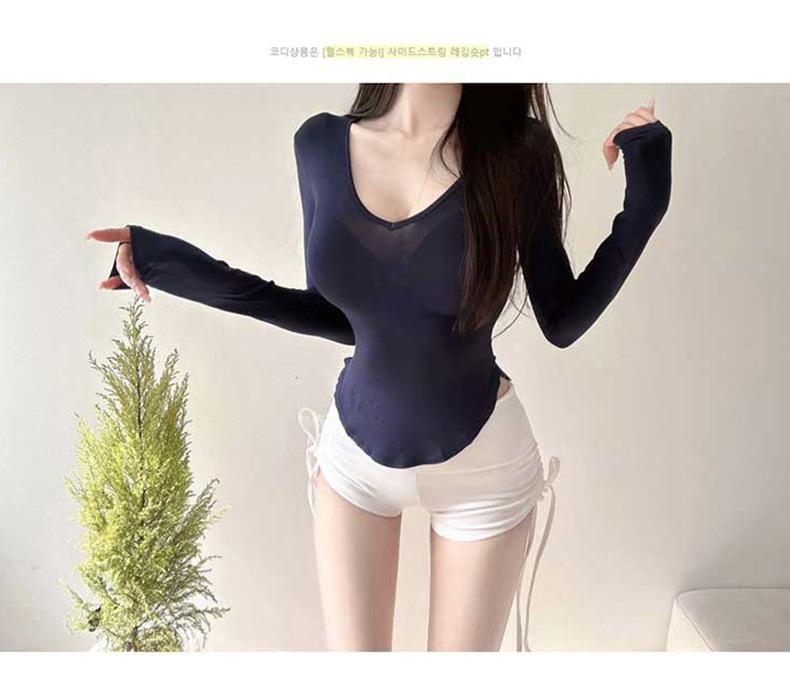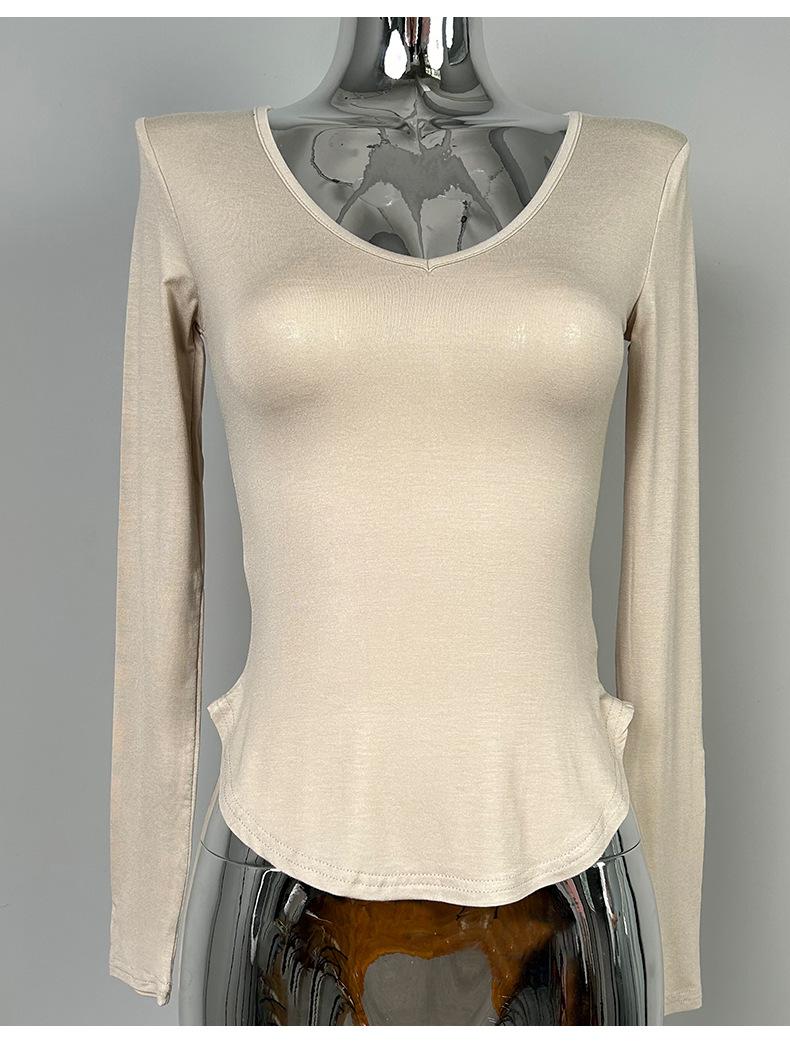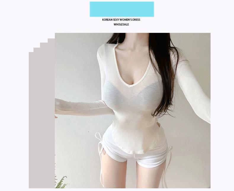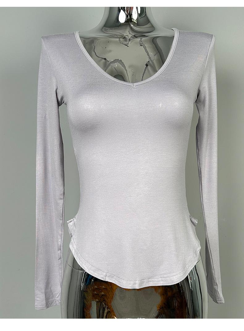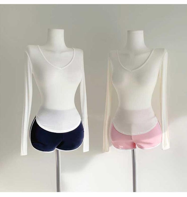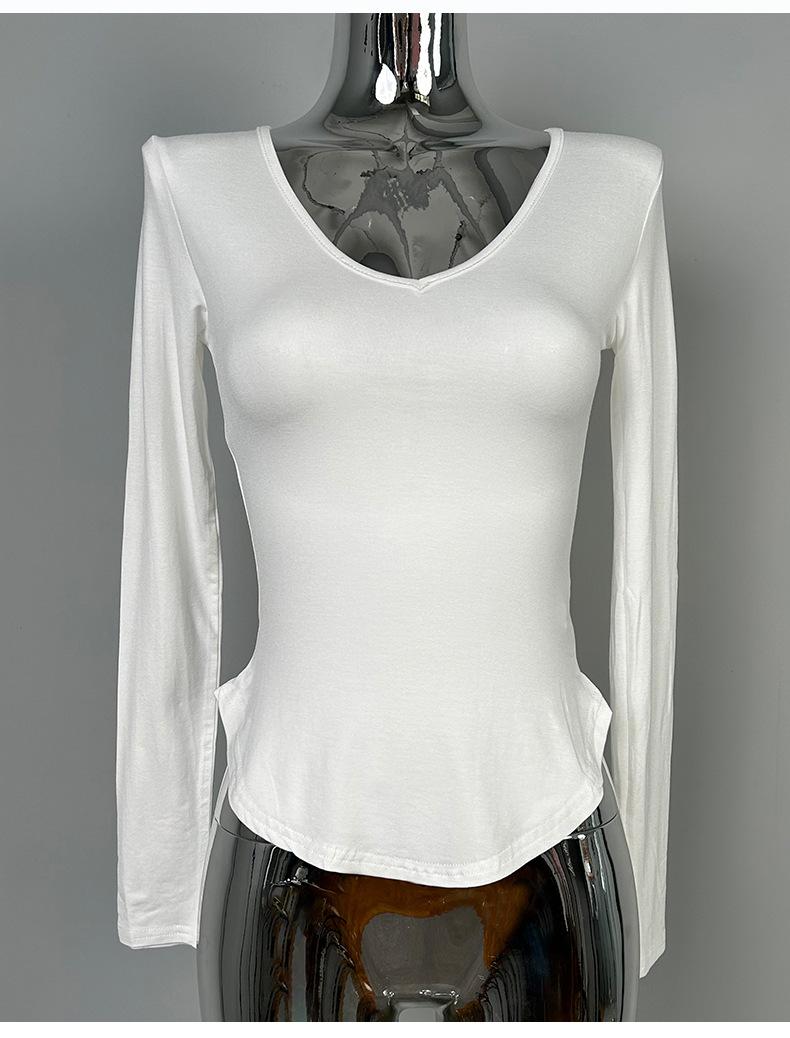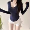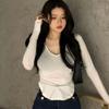 Corea del Sur Dongdaemun nuevo delgado y fácil de llevar ~ sexy favorecedor de la figura cuello en V ajustado camiseta de manga larga se