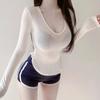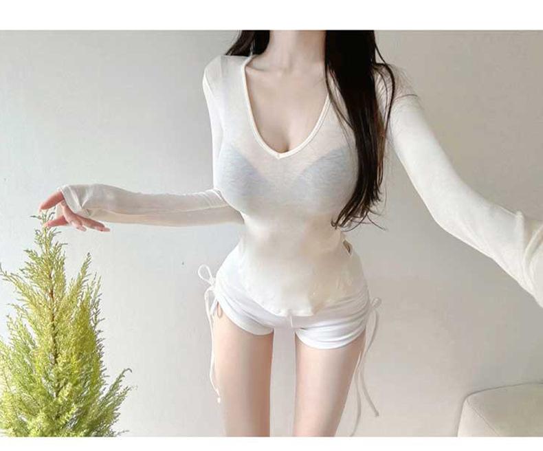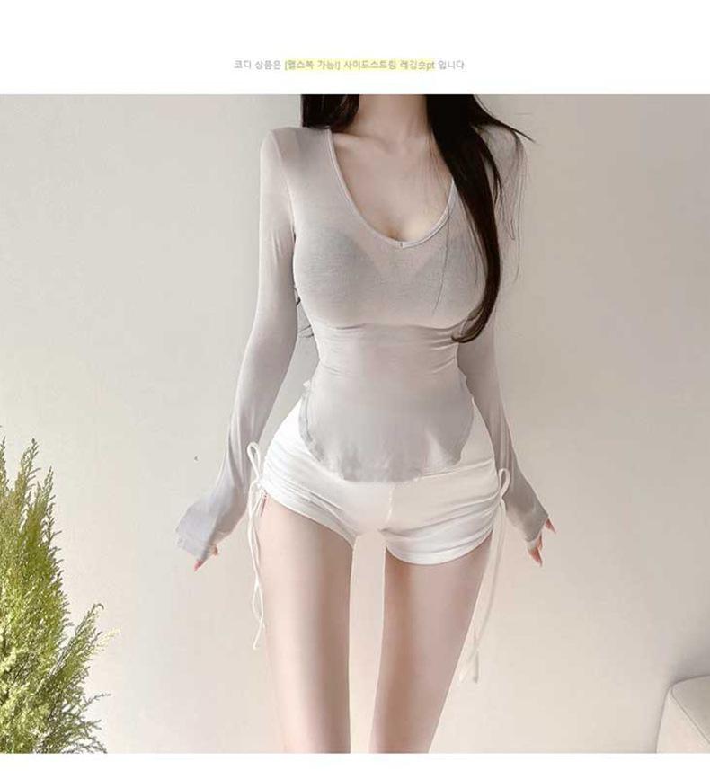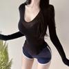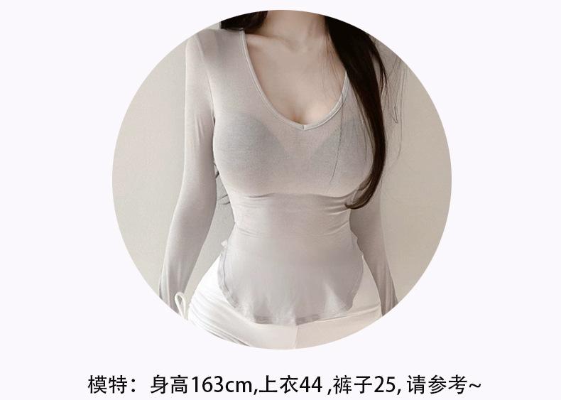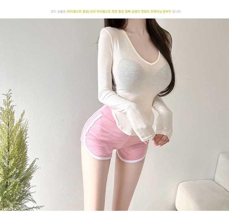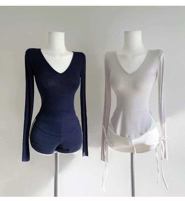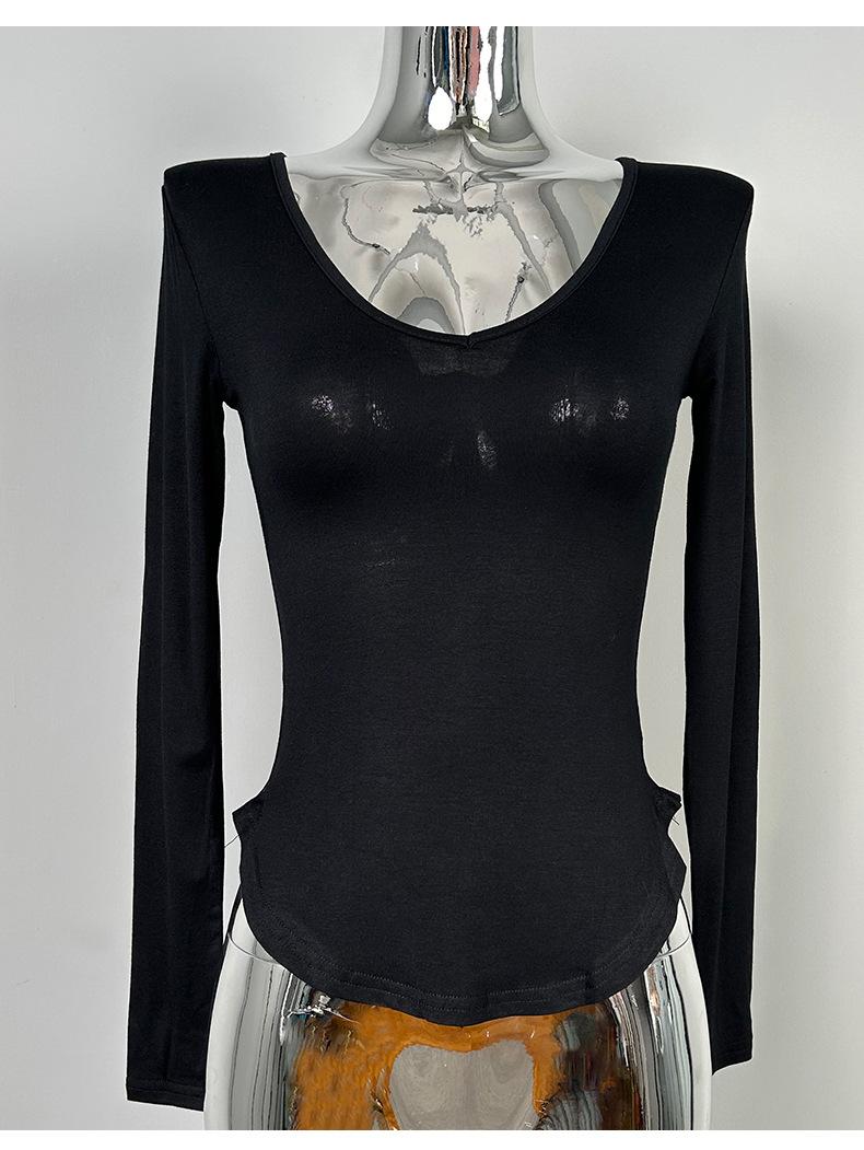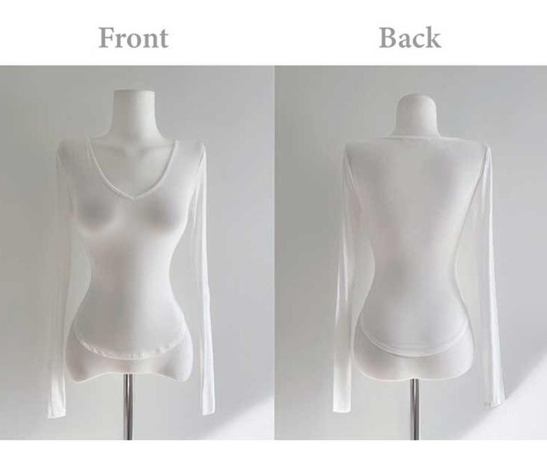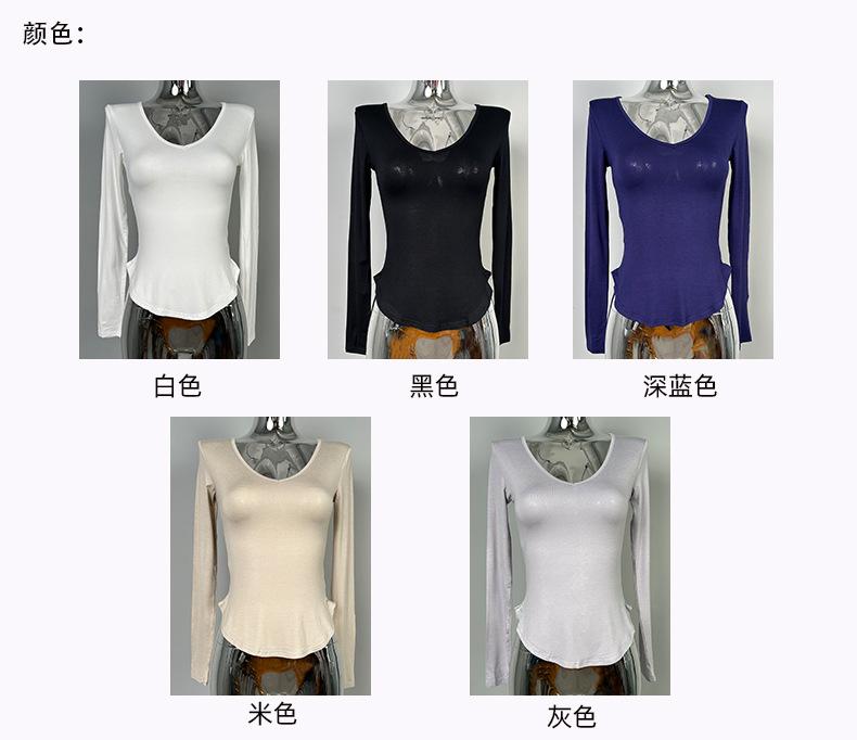 Corea del Sur Dongdaemun nuevo delgado y fácil de llevar ~ sexy favorecedor de la figura cuello en V ajustado camiseta de manga larga se