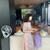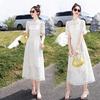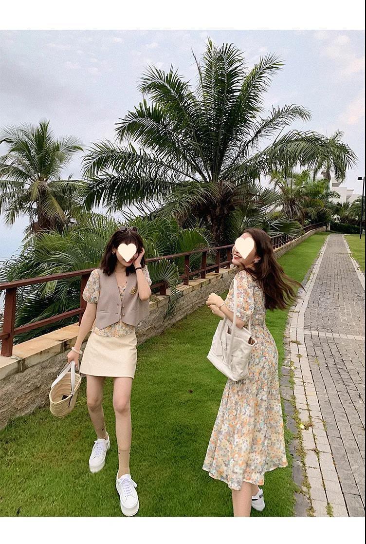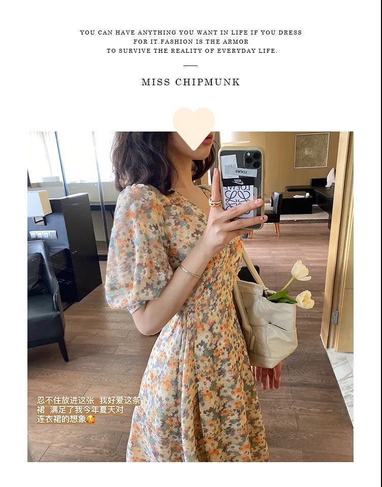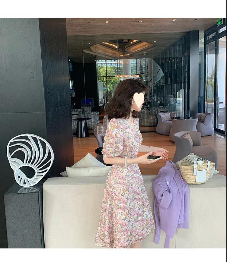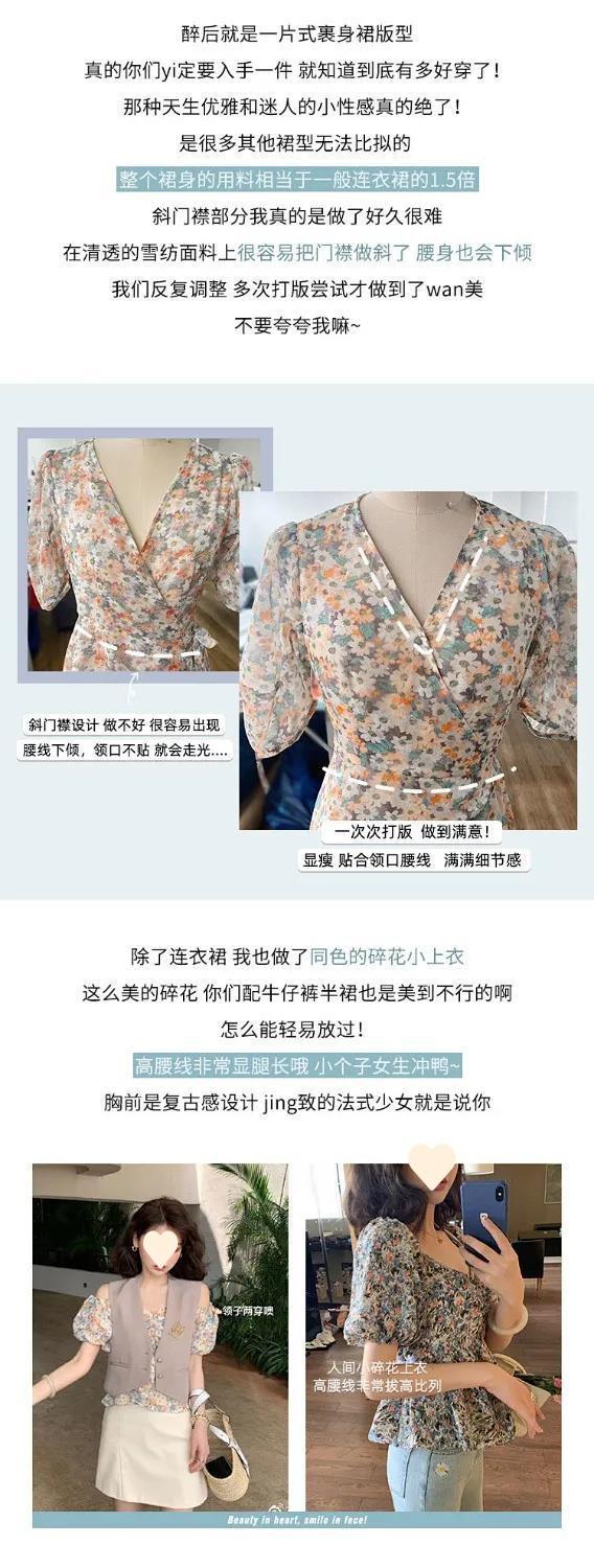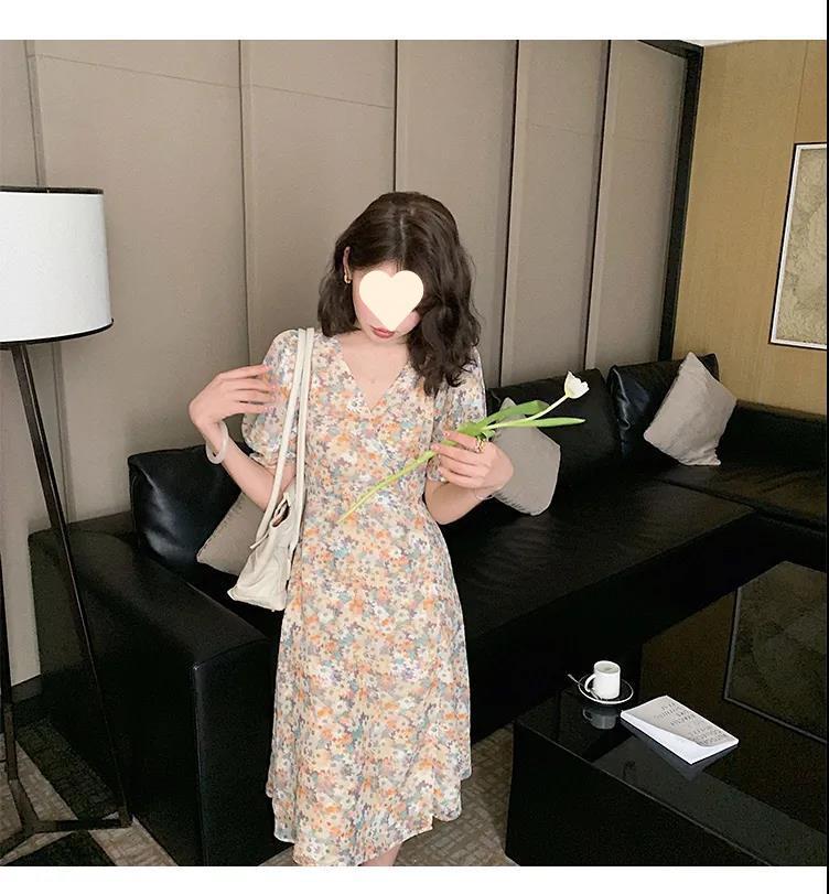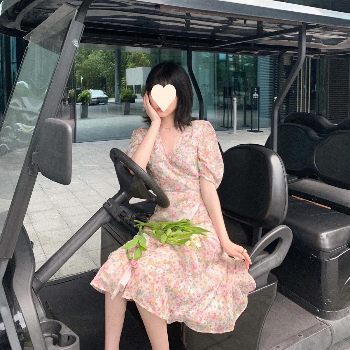 Verano 2025 Nuevo Estilo Coreano Vestido de Gasa Floral con Cuello en V Estudiante Femenino Falda Serie Pintura al Óleo de Largo Medio