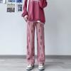 Pantalones casuales de traje de cintura alta estilo coreano de seda helada para mujer 2024 verano nuevo estilo adelgazantes de pierna ancha texturizados rectos