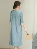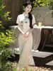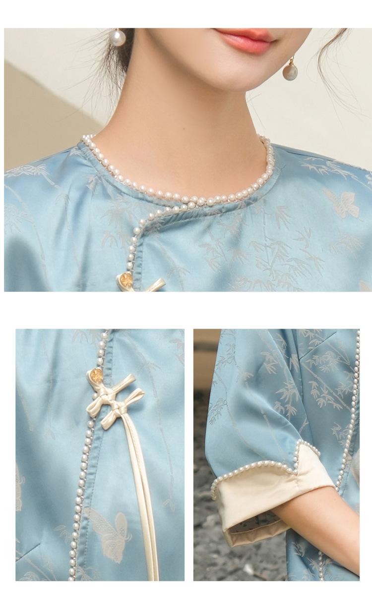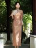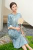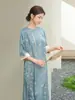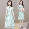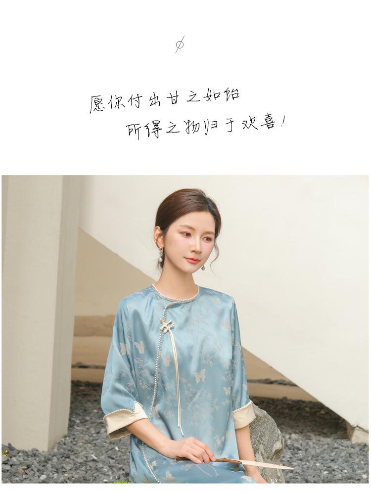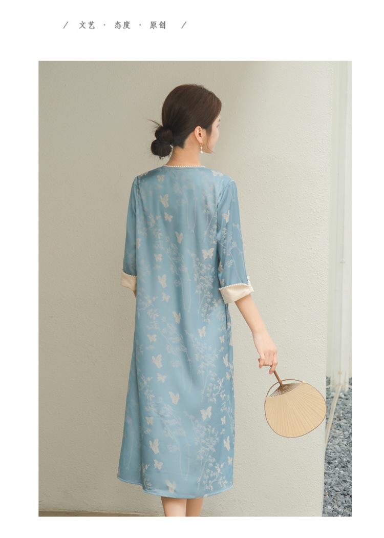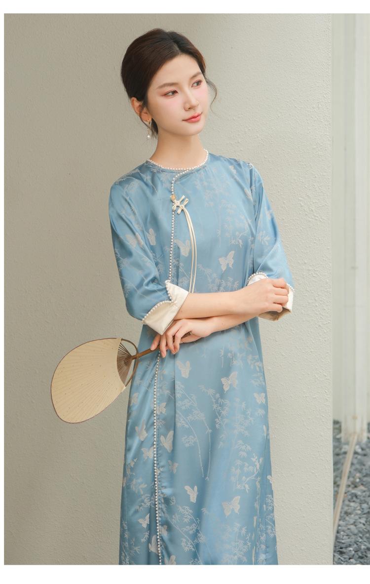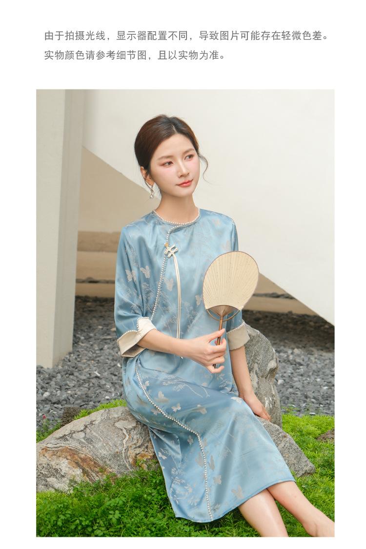 Vestido Cheongsam de primavera y verano para mujer, estilo chino, estilo Cheongsam, de seda satinada con brocado, elegante, adelgazante, midi.