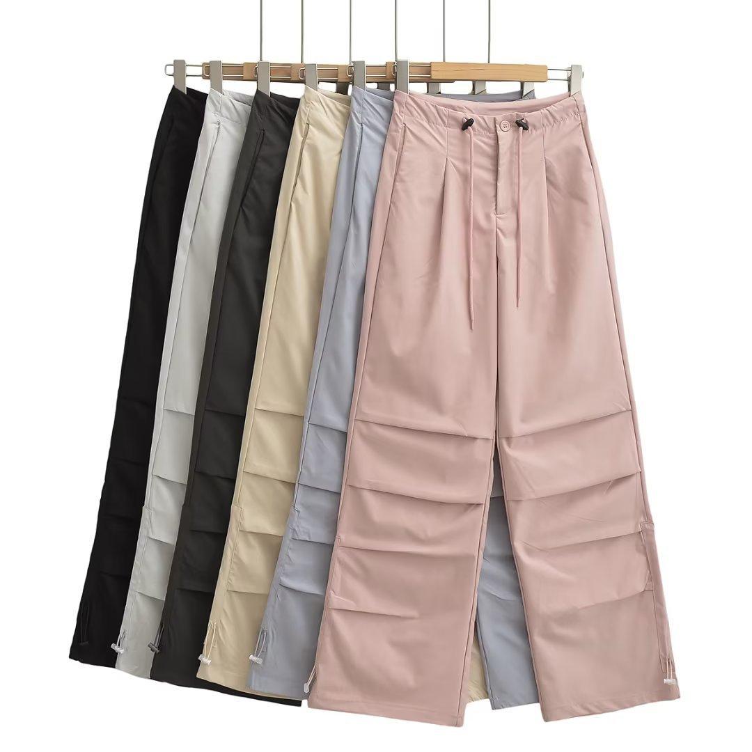 Pantalones de trompeta sueltos de cintura alta de estilo europeo y americano, monos para mujer, nuevos pantalones casuales rectos y ajustados de 2023