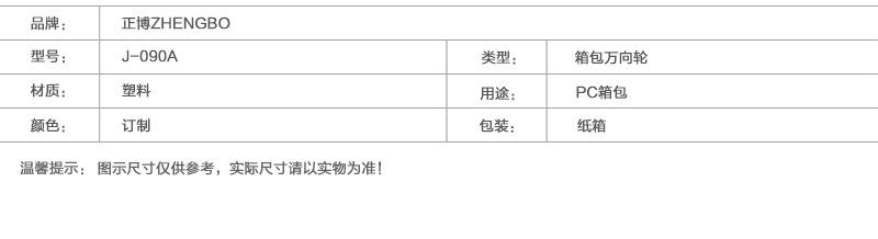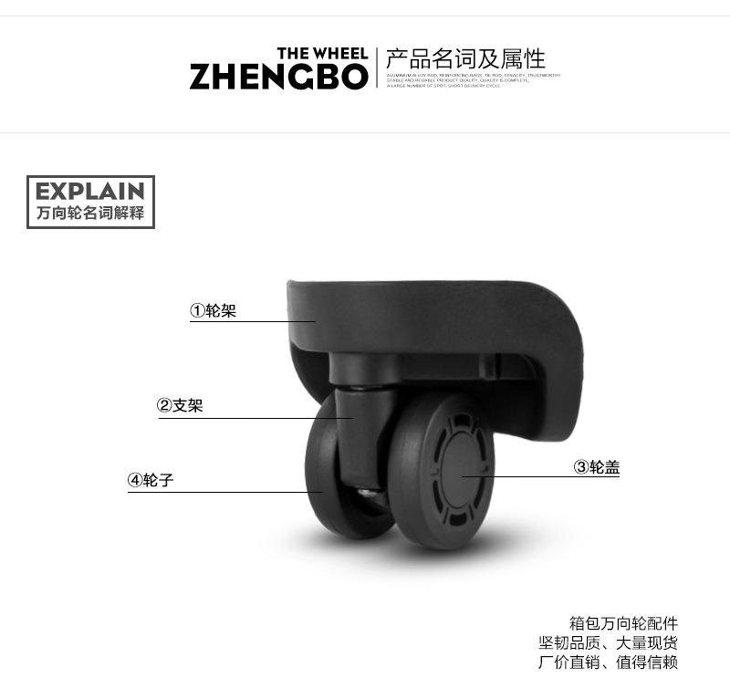 Guangzhou Zhengbo Luggage Products Co., Ltd. se especializa en la producción de una serie de accesorios para equipaje, como cerraduras de combinación, candados, cerraduras fijas, cerraduras aduaneras TSA, carritos, ruedas para maletas, ruedas para maletas y asas. Nuestros productos son populares en el mercado y gozan de gran prestigio. La empresa ha establecido relaciones de cooperación duraderas y estables con importantes fabricantes y agentes de equipaje. Ofrece una gama completa de productos a precios razonables. Con una sólida trayectoria comercial, valoramos la credibilidad, cumplimos los contratos y garantizamos la calidad de nuestros productos. Nos hemos ganado la confianza de nuestros clientes gracias a nuestra amplia gama de productos y al principio de bajos beneficios y rápida rotación.
