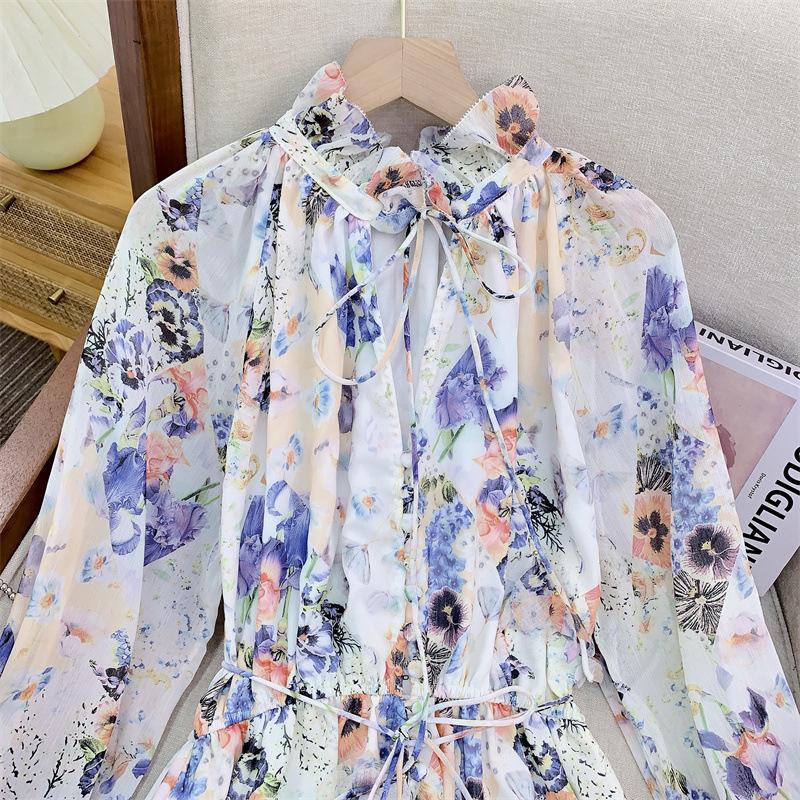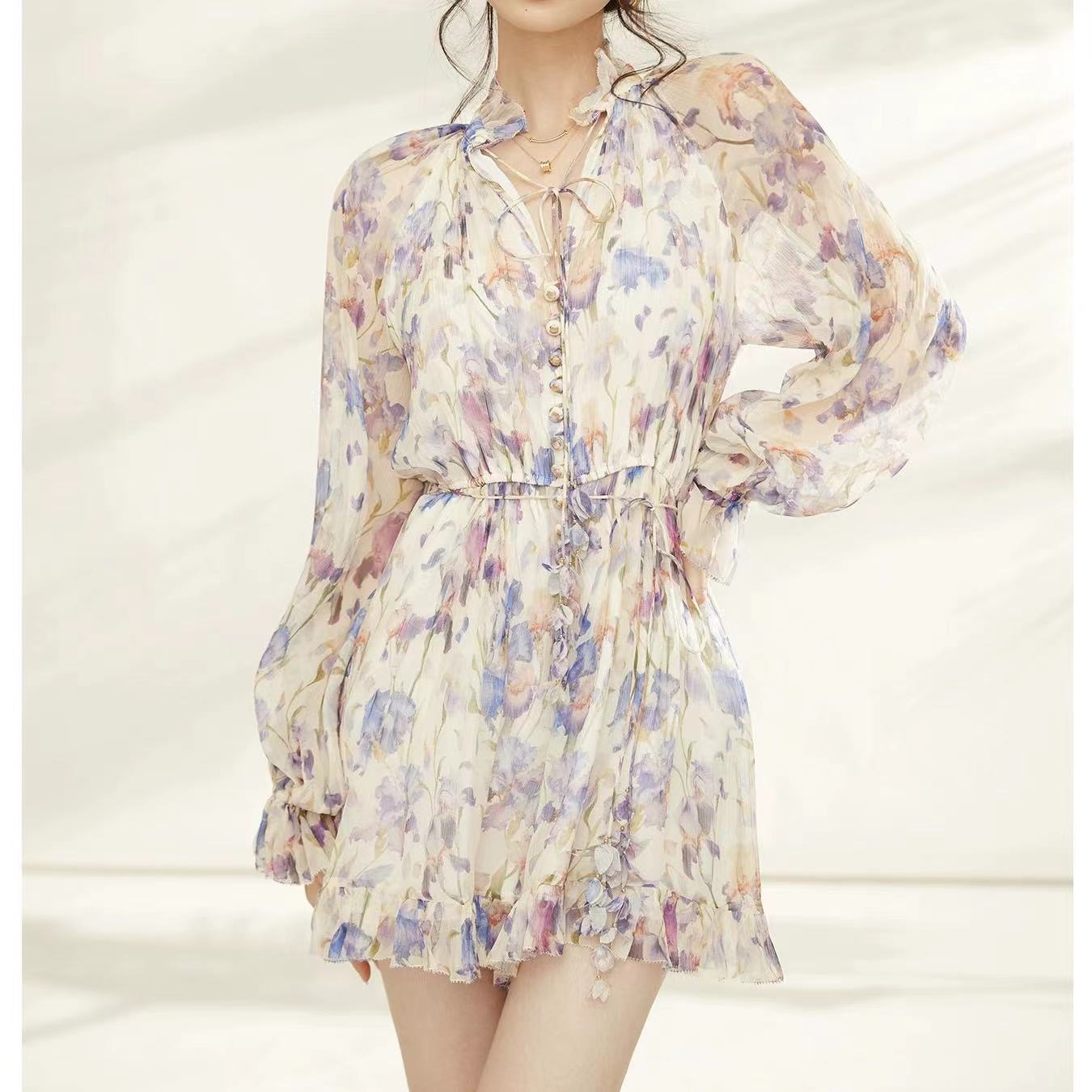 Mono Corto Floral Elegante de Alta Gama Francés Estilo Hada Vacacional Verano de Alta Gama