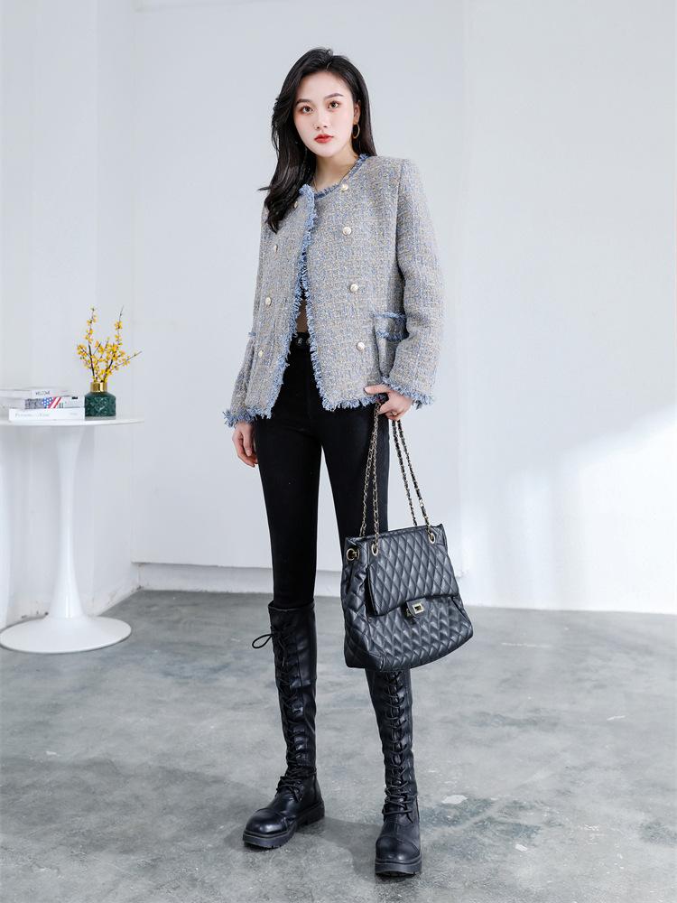 Mies Abrigo Estilo Chanel de Lujo Ligero Coreano para Mujer Nicho Elegante Primavera y Otoño Combinación Total Nuevo Chal Abrigo Corto Estilo Francés