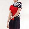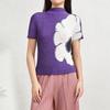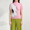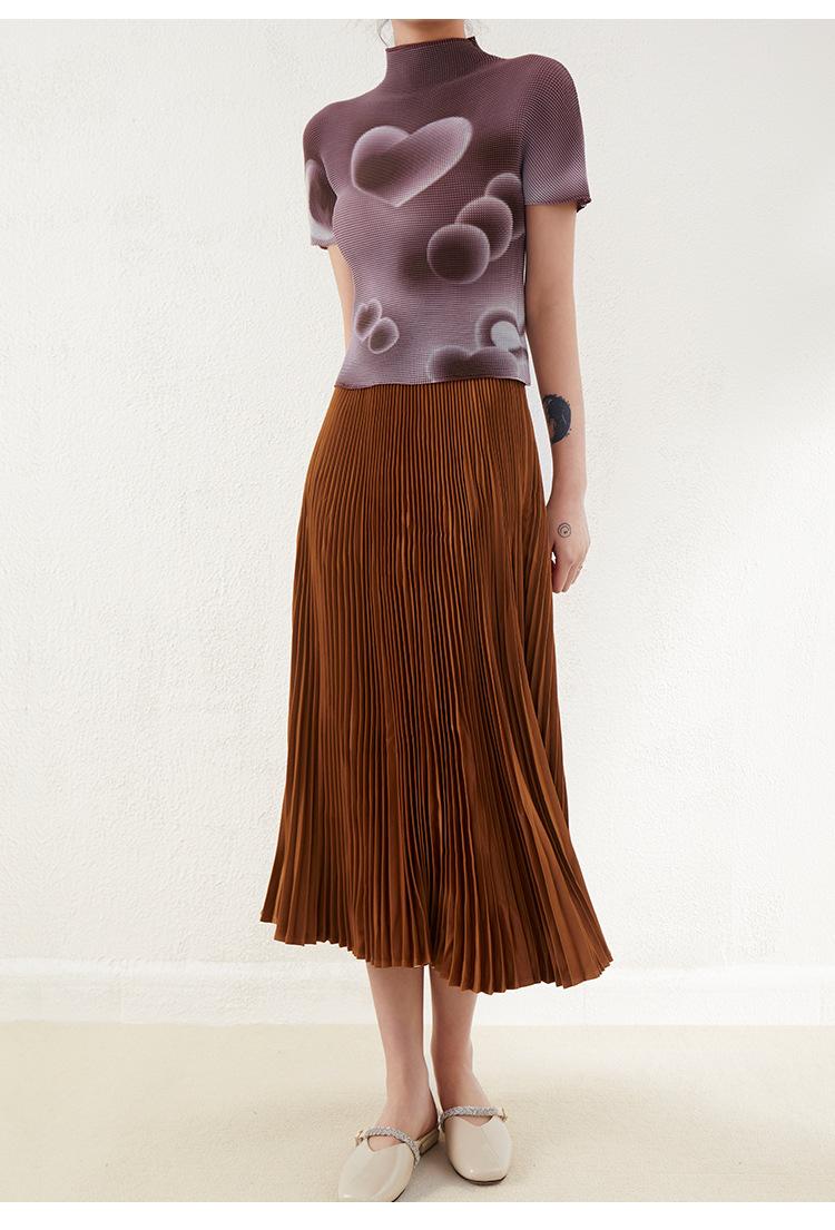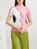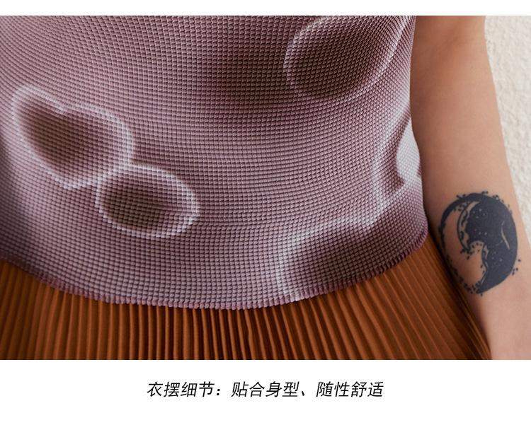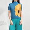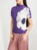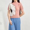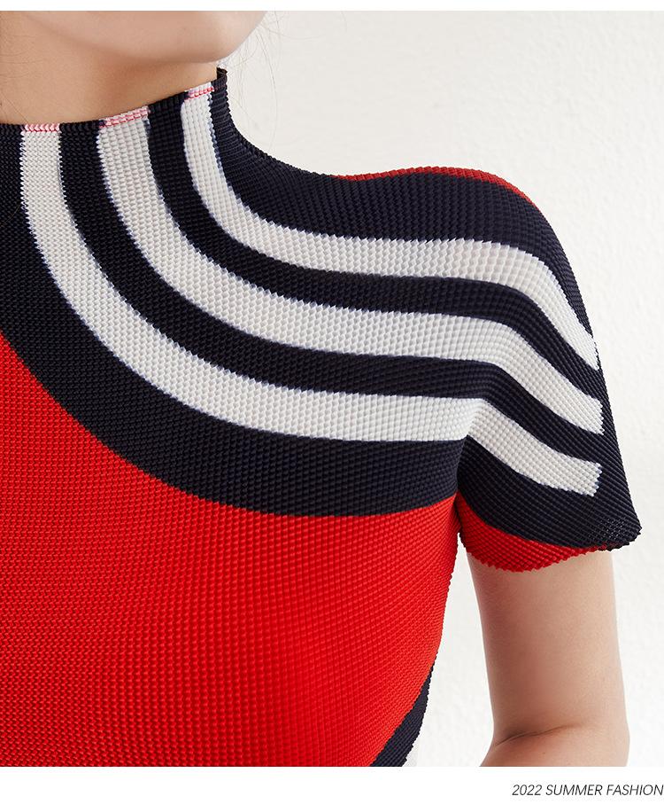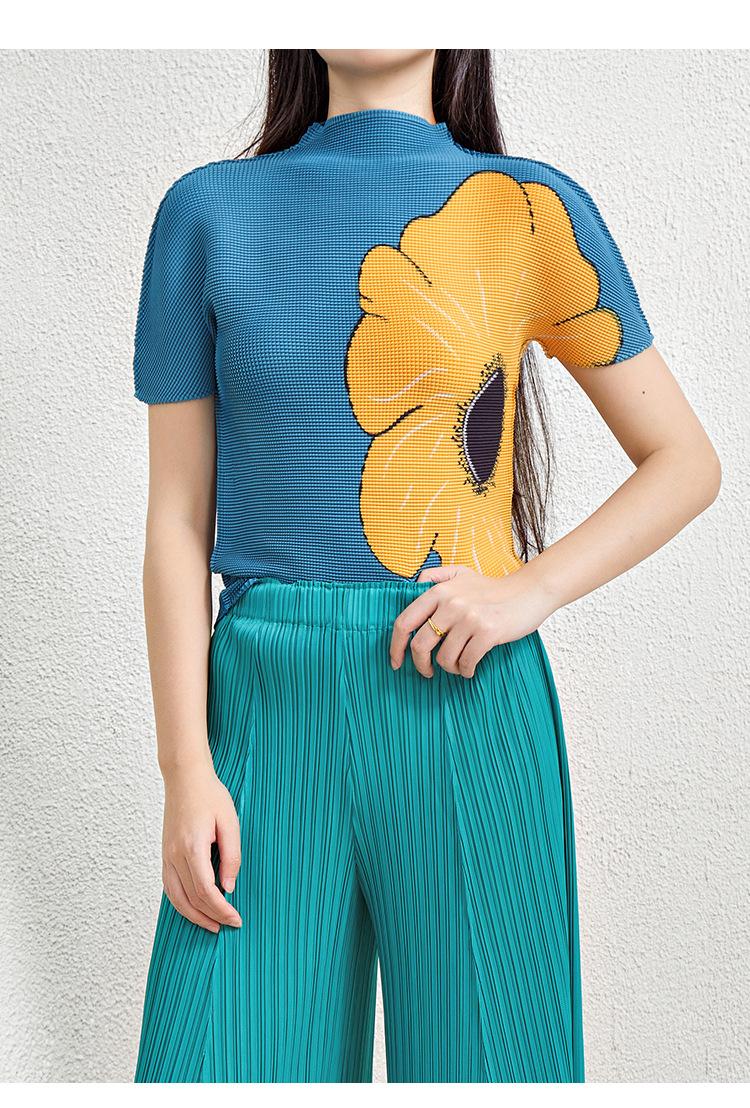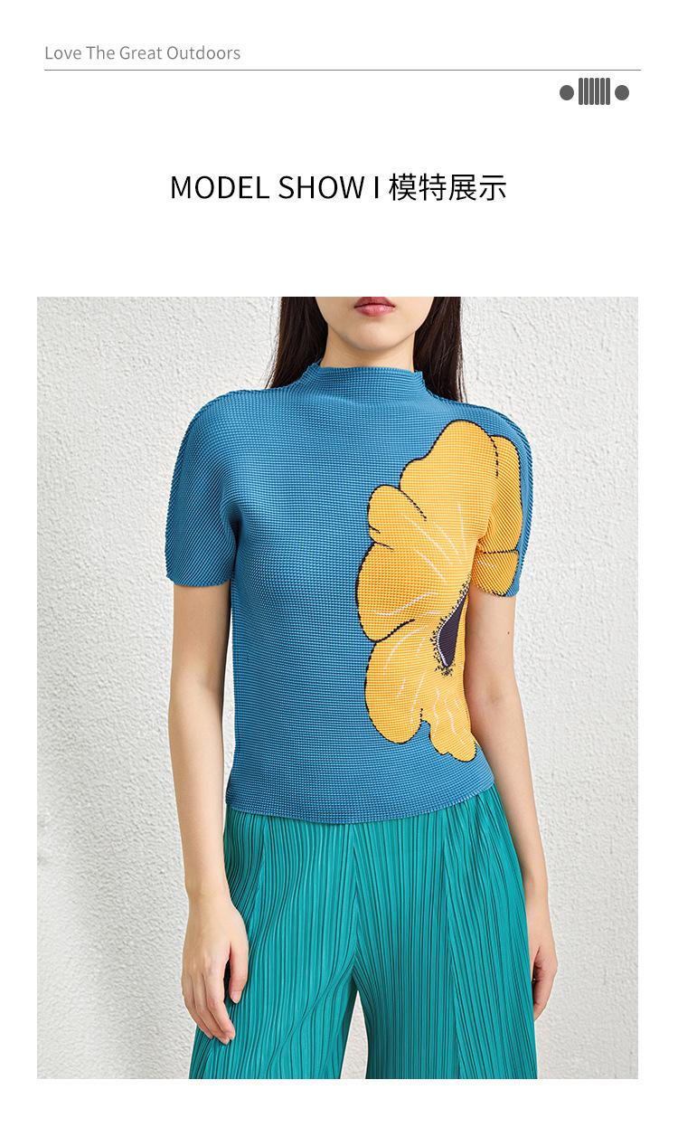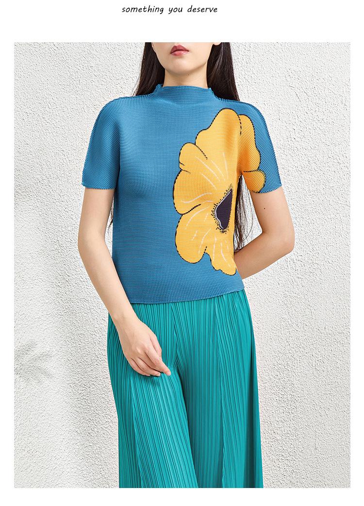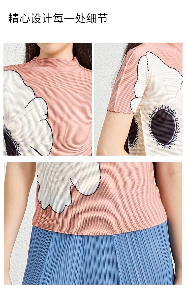 Miyake Top de Cuello de Manga Corta para Mujer Plisado Verano 2025 Nuevo Agradable al Tacto Alta Elasticidad Talla Grande Adelgazante Elegante Camisa de Gasa