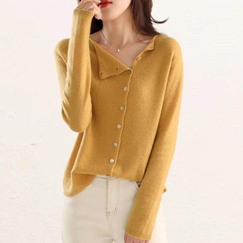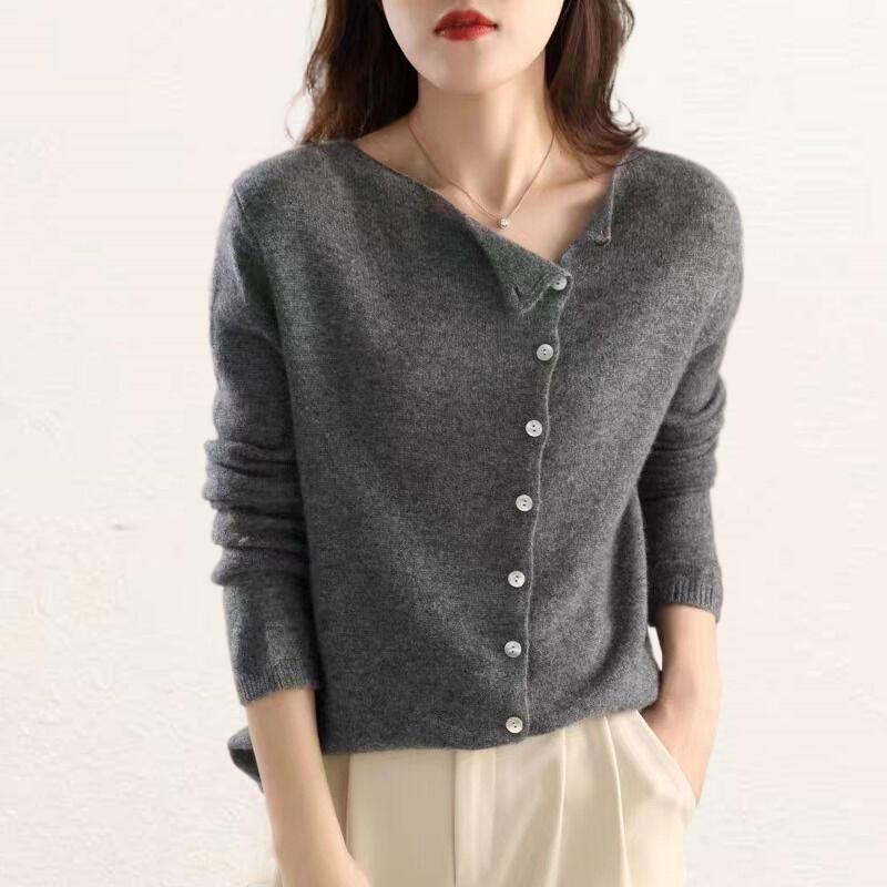 Suéter de cachemira para mujer primavera 2023, cárdigan corto de cachemira de color sólido, nuevo, de punto fino, con cuello redondo bajo