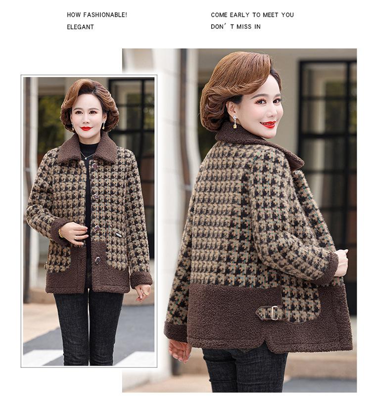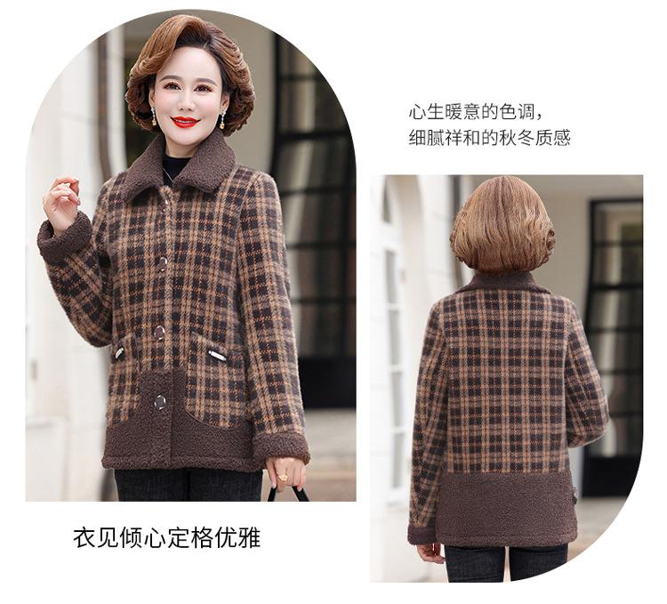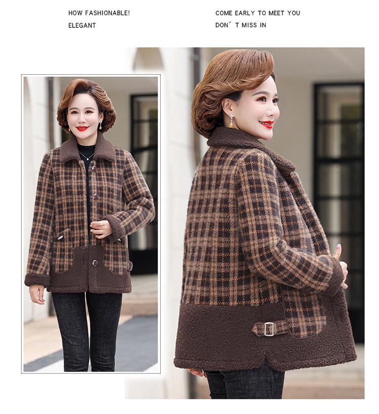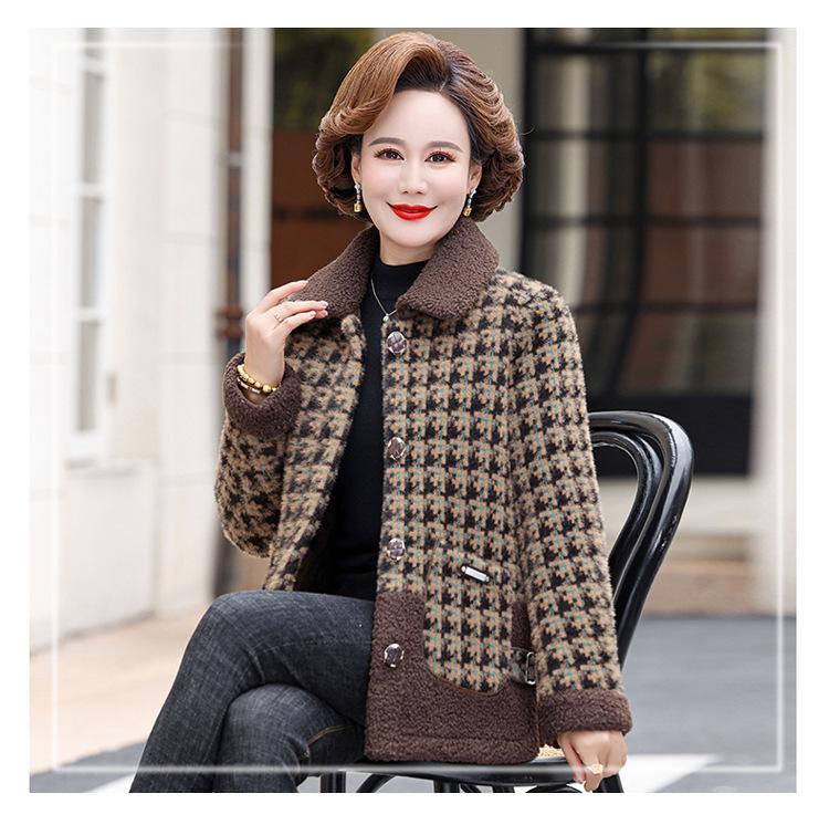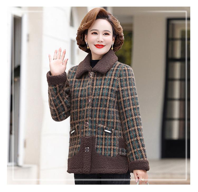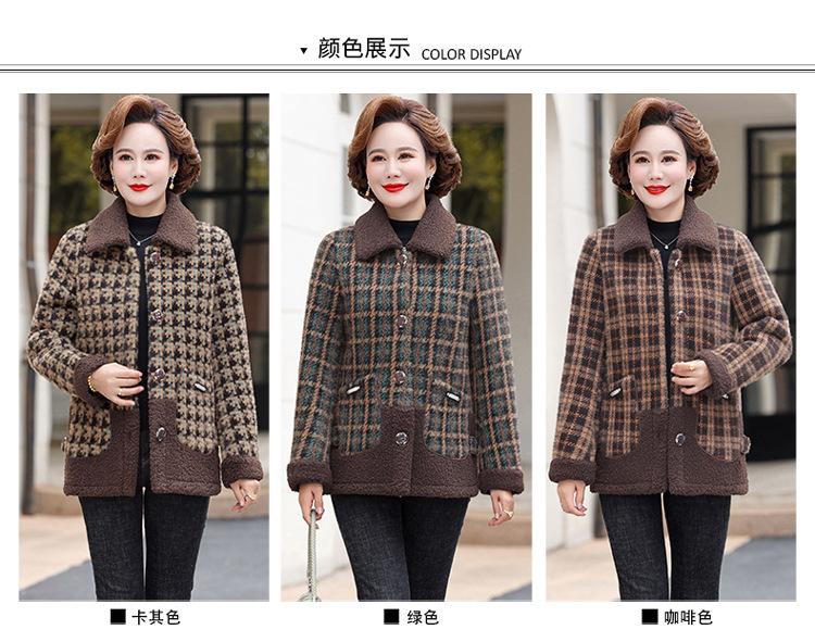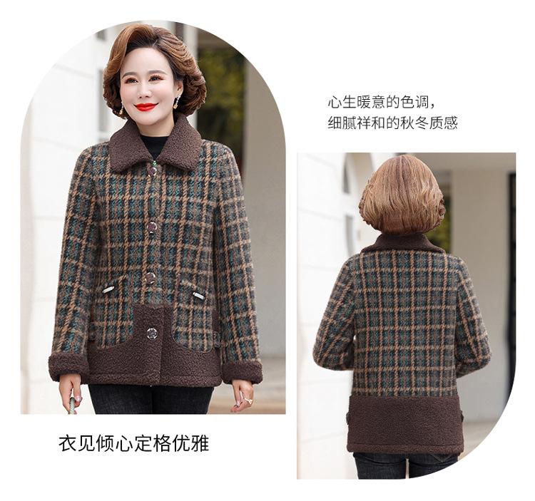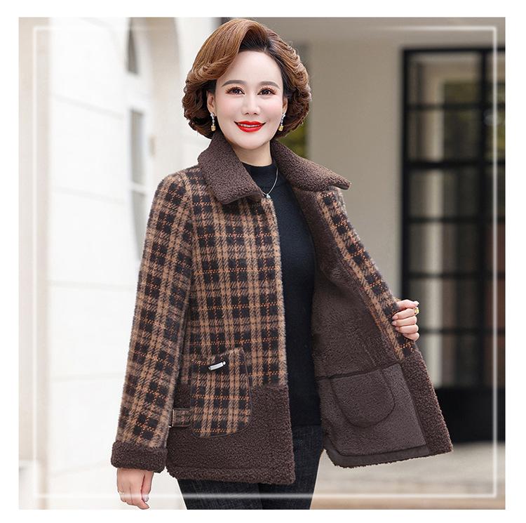 Ropa de Primavera Moderna para Mujeres de Mediana Edad y Ancianas Chaqueta Cálida de Terciopelo Corta de Lana a Cuadros Talla Grande Ropa de Madre al Mayoreo