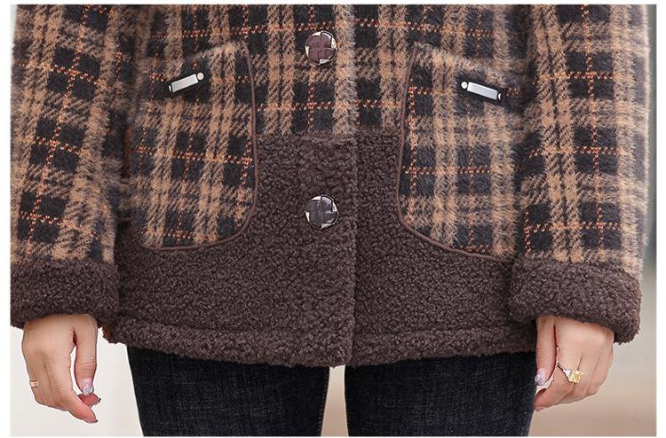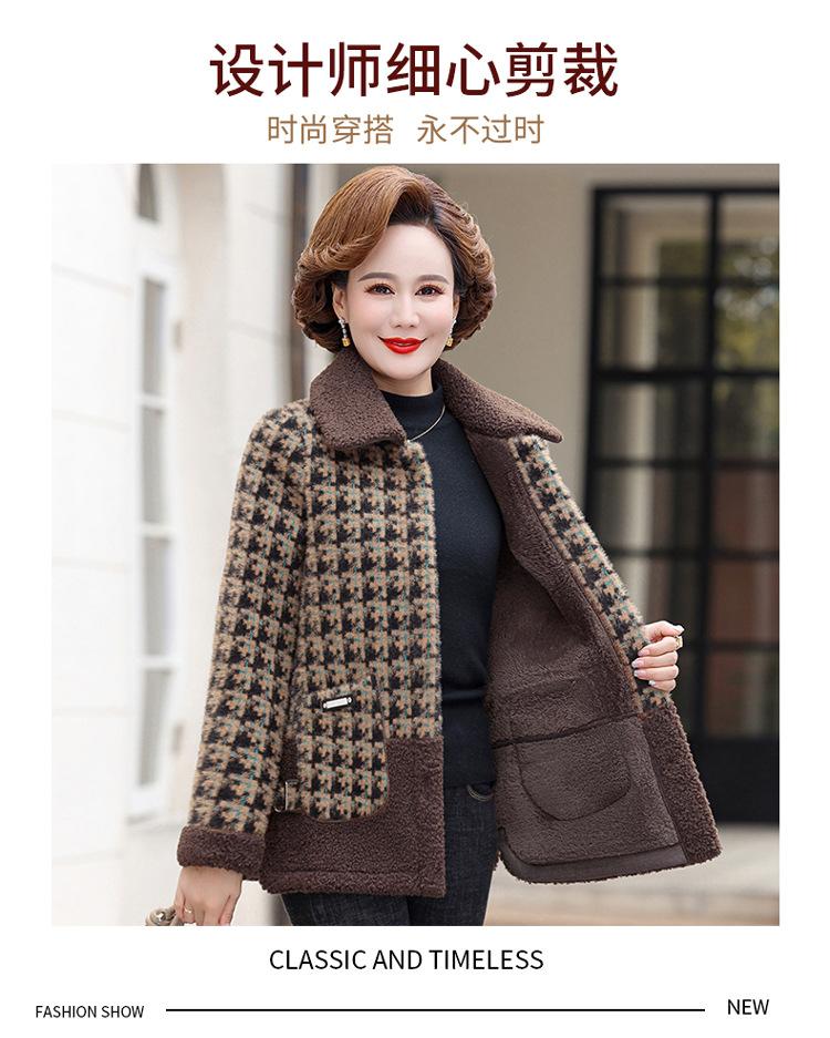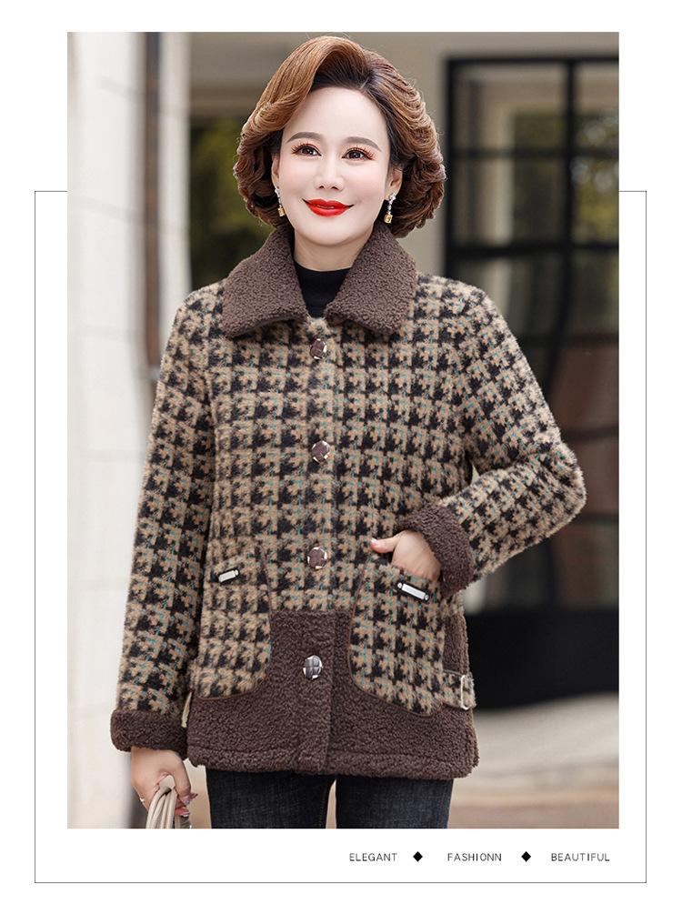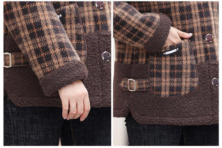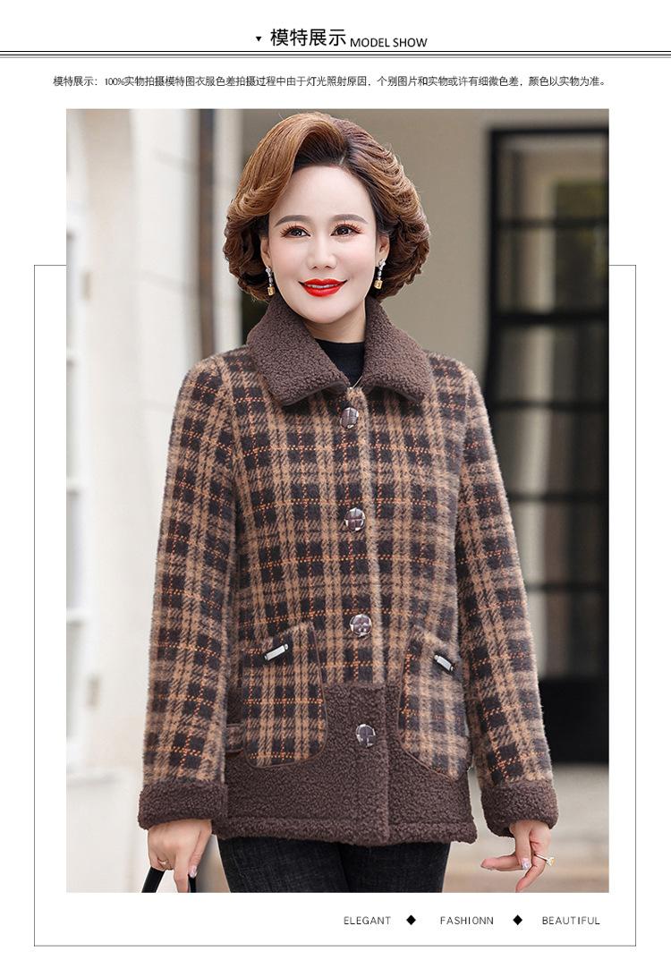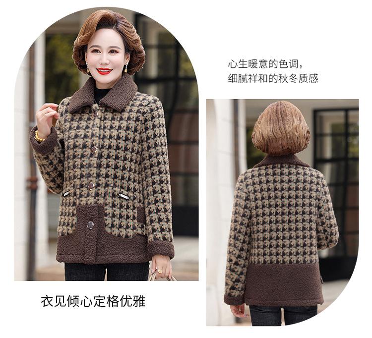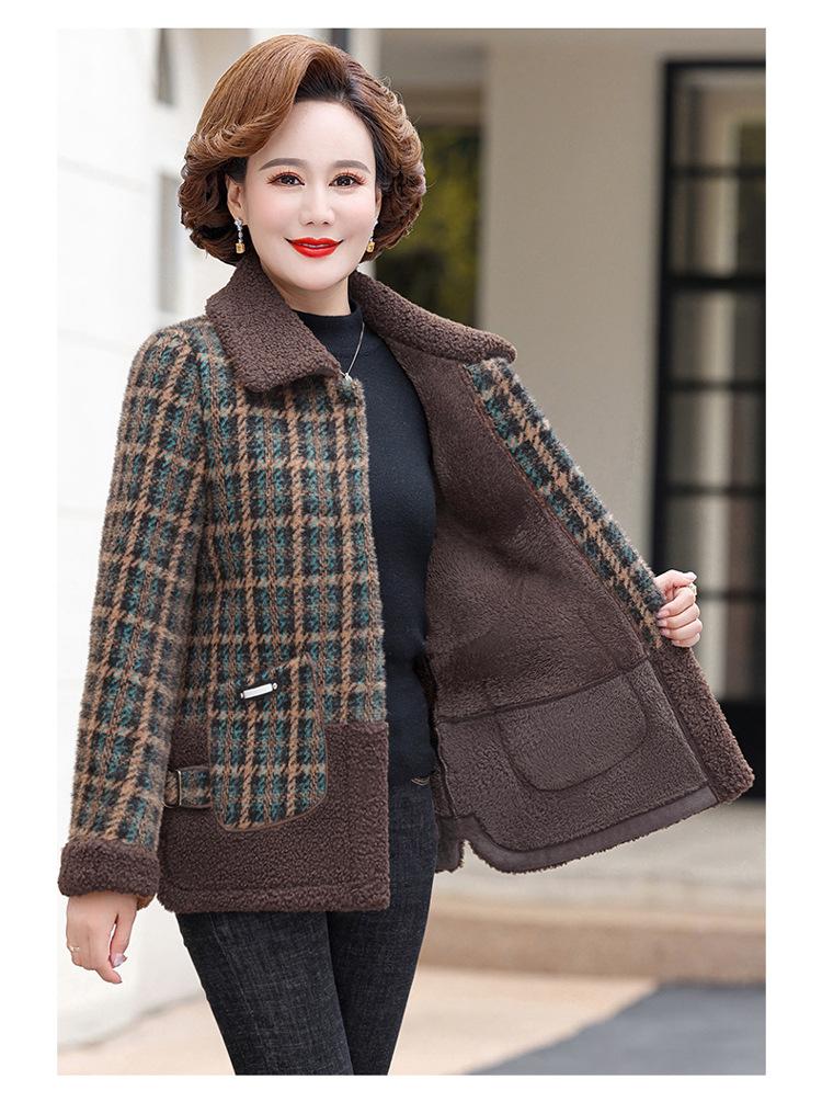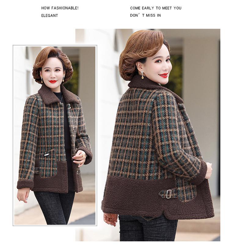 Ropa de Primavera Moderna para Mujeres de Mediana Edad y Ancianas Chaqueta Cálida de Terciopelo Corta de Lana a Cuadros Talla Grande Ropa de Madre al Mayoreo