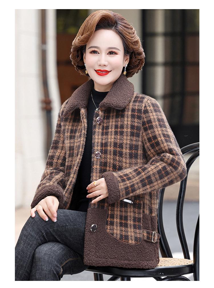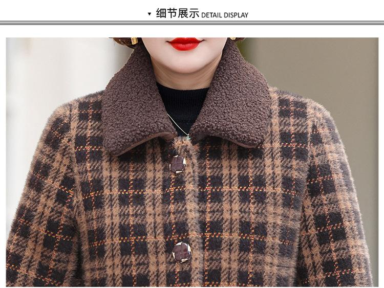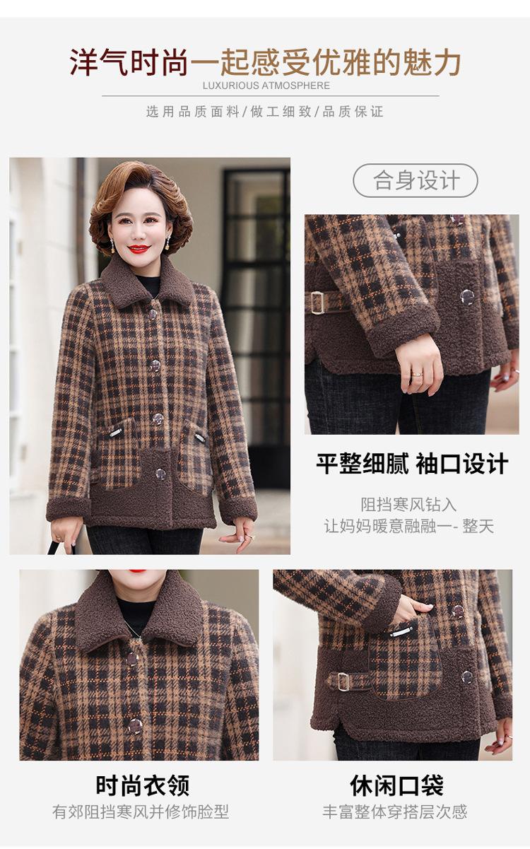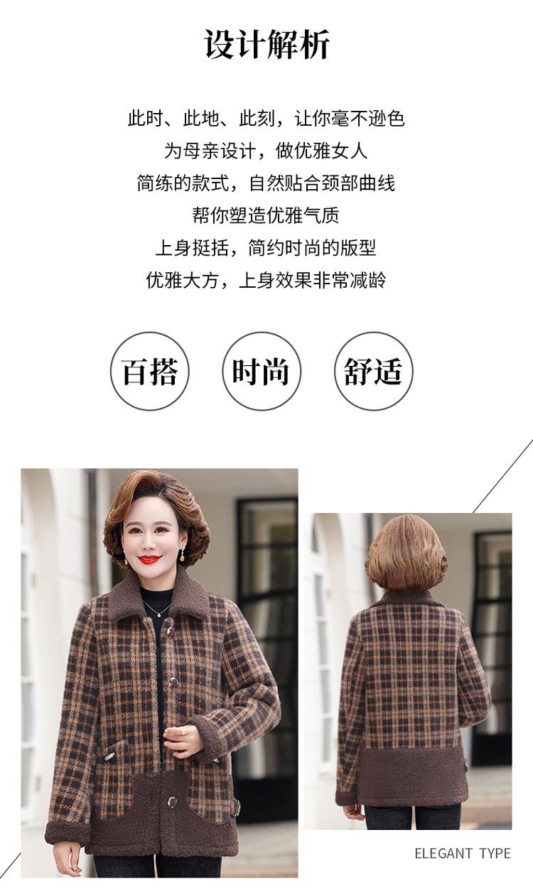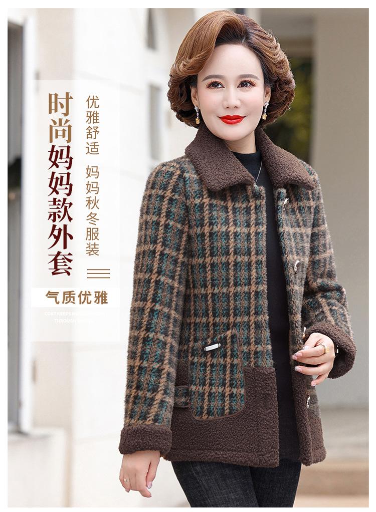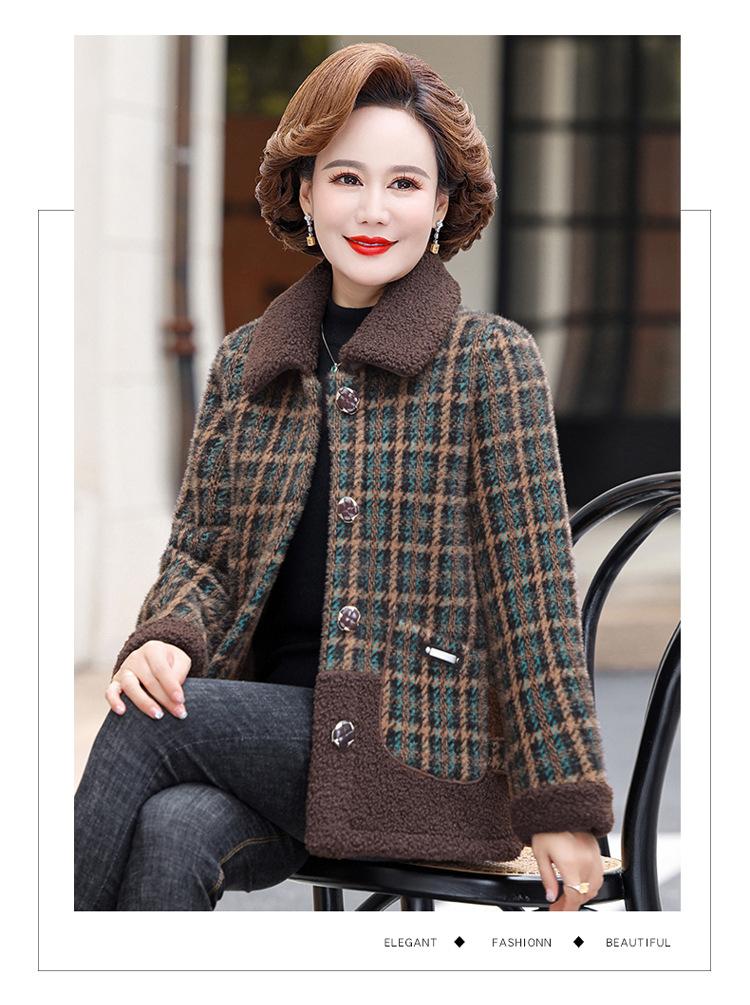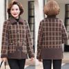 Ropa de Primavera Moderna para Mujeres de Mediana Edad y Ancianas Chaqueta Cálida de Terciopelo Corta de Lana a Cuadros Talla Grande Ropa de Madre al Mayoreo