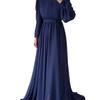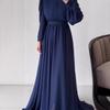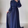 Otoño 2024, nuevo vestido plisado de manga larga, ajustado, de cintura alta y cuello redondo, color liso, para Europa y América. Amazon.com.