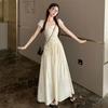 Vestido Francés de Verano de Manga Corta para Personas Pequeñas, Suelto con Hombros Descubiertos, Elegante, Largo Medio, Manga Abullonada, Falda Nueva