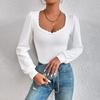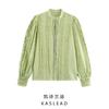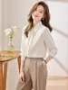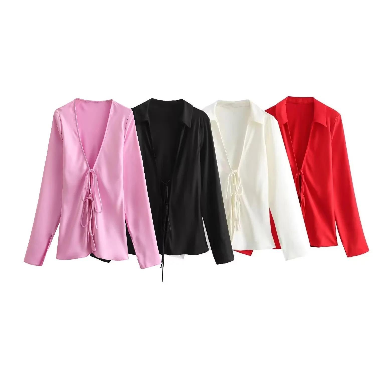 Ropa europea y americana, primavera 2024, nuevo estilo francés, elegante y sexy, camisa de satén de seda con cuello en V y lazo decorado.