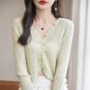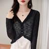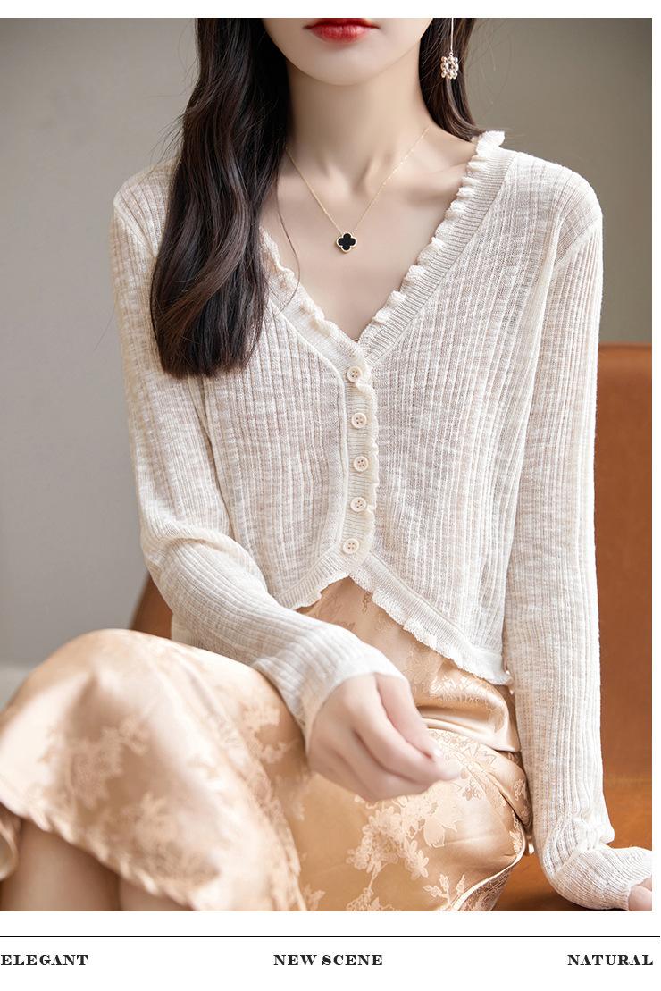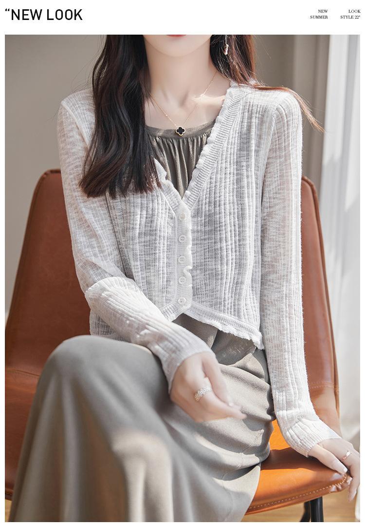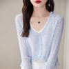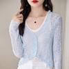 Cárdigan protector solar para mujer, abrigo de verano fino blanco con chal exterior, manga larga, tejido de seda helada, blusa nueva de moda