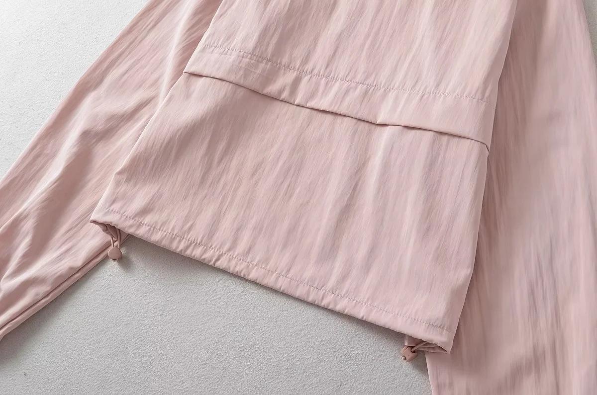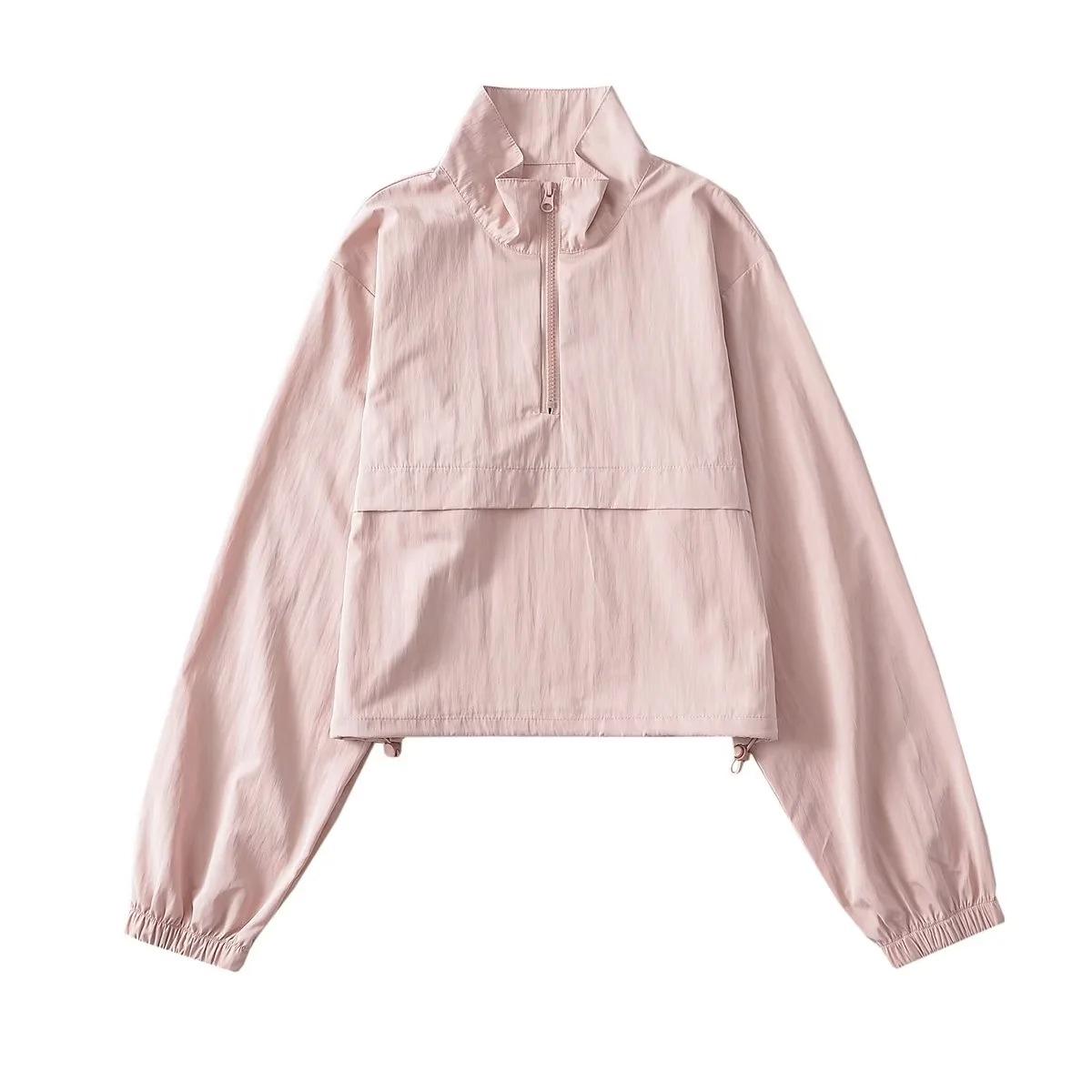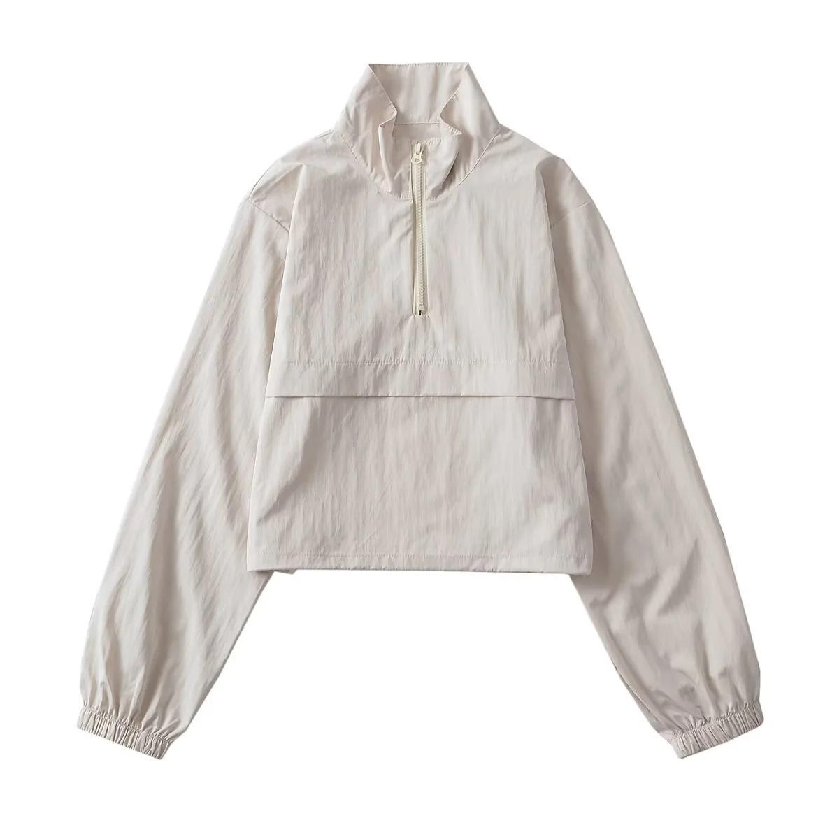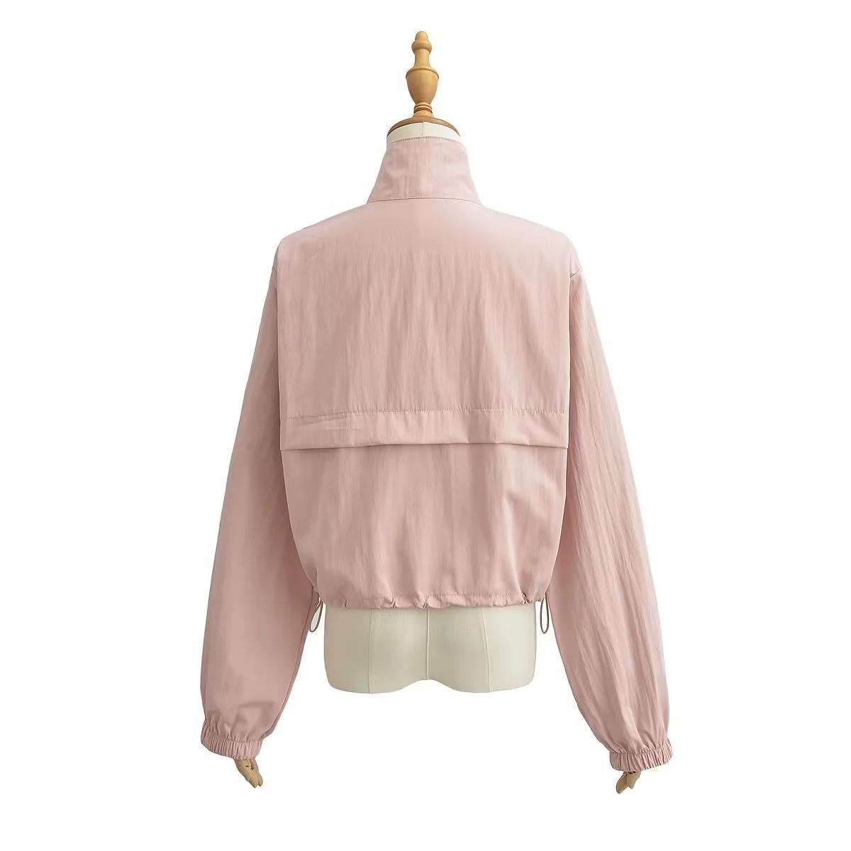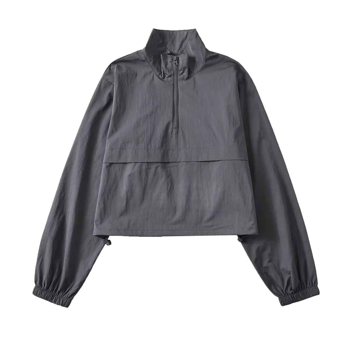 Otoño Nuevo Sudadera Estilo Deportivo Chaqueta Protección Solar para Mujer Suelta Manga Larga Dobladillo con Cordón Medio Cuello Alto Chaqueta con Cremallera
