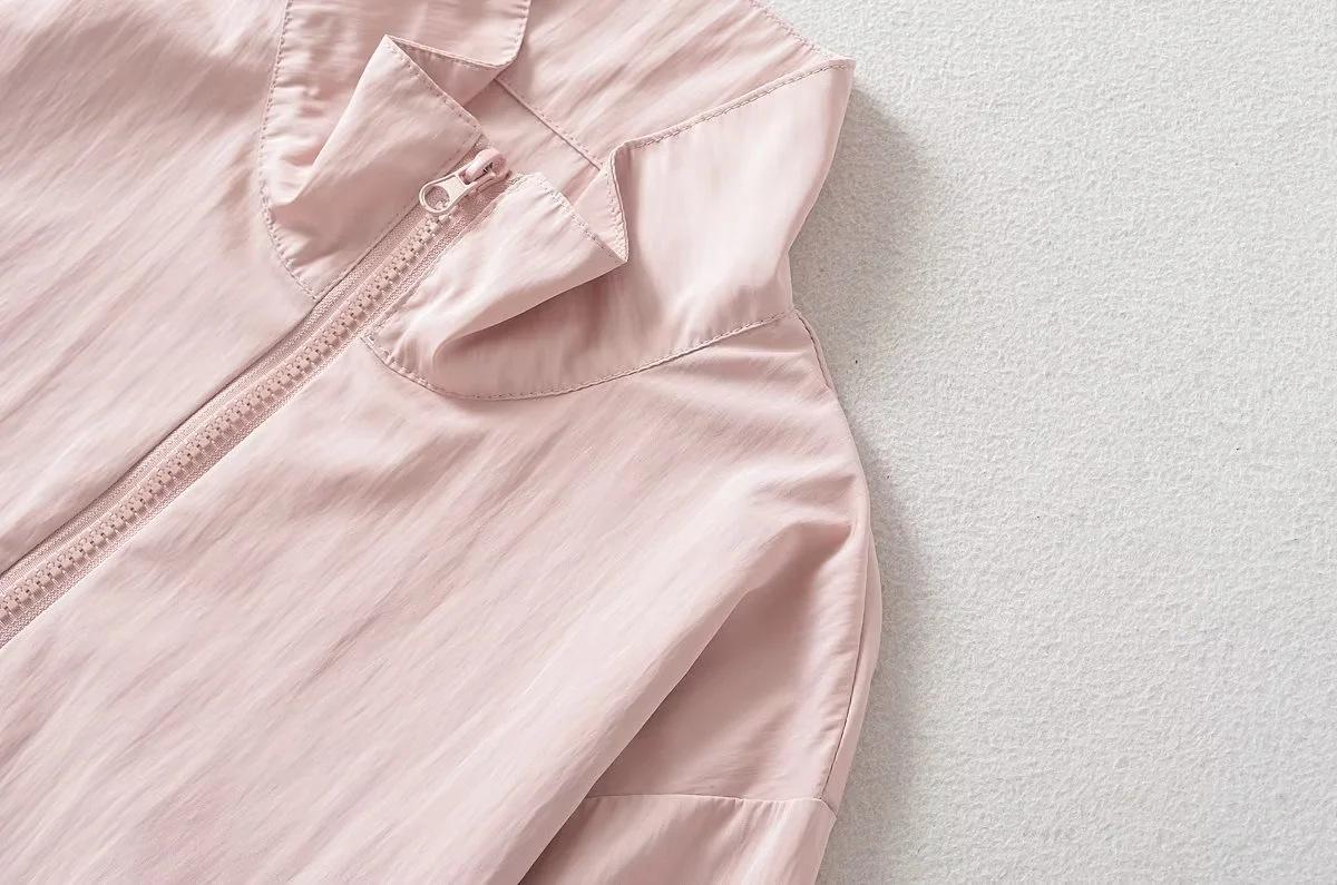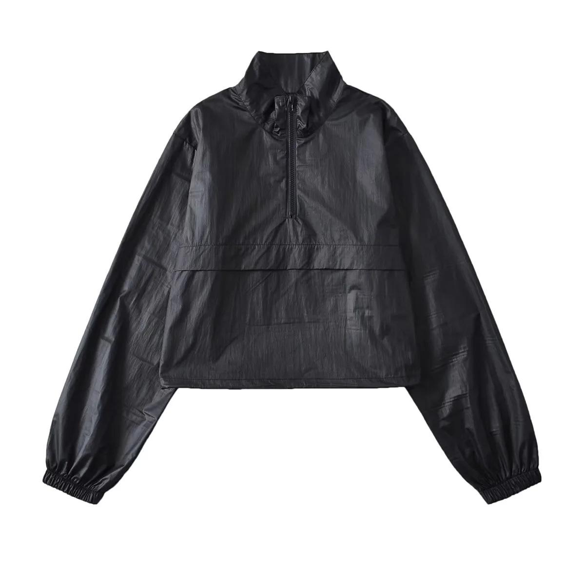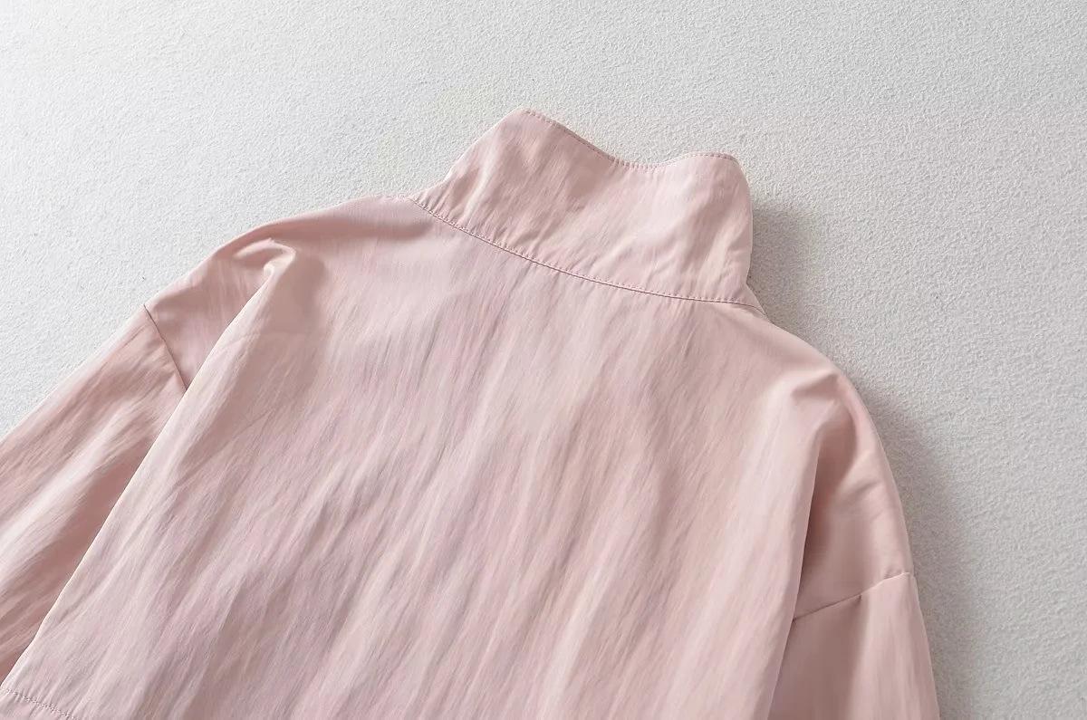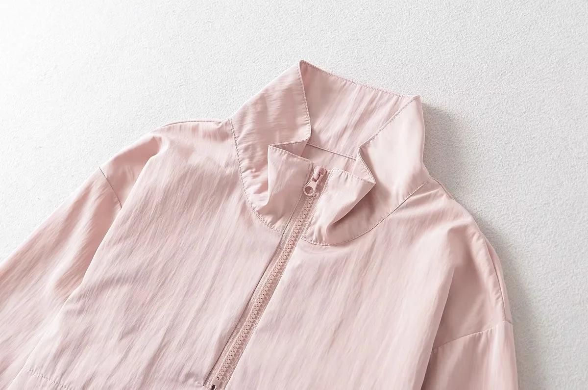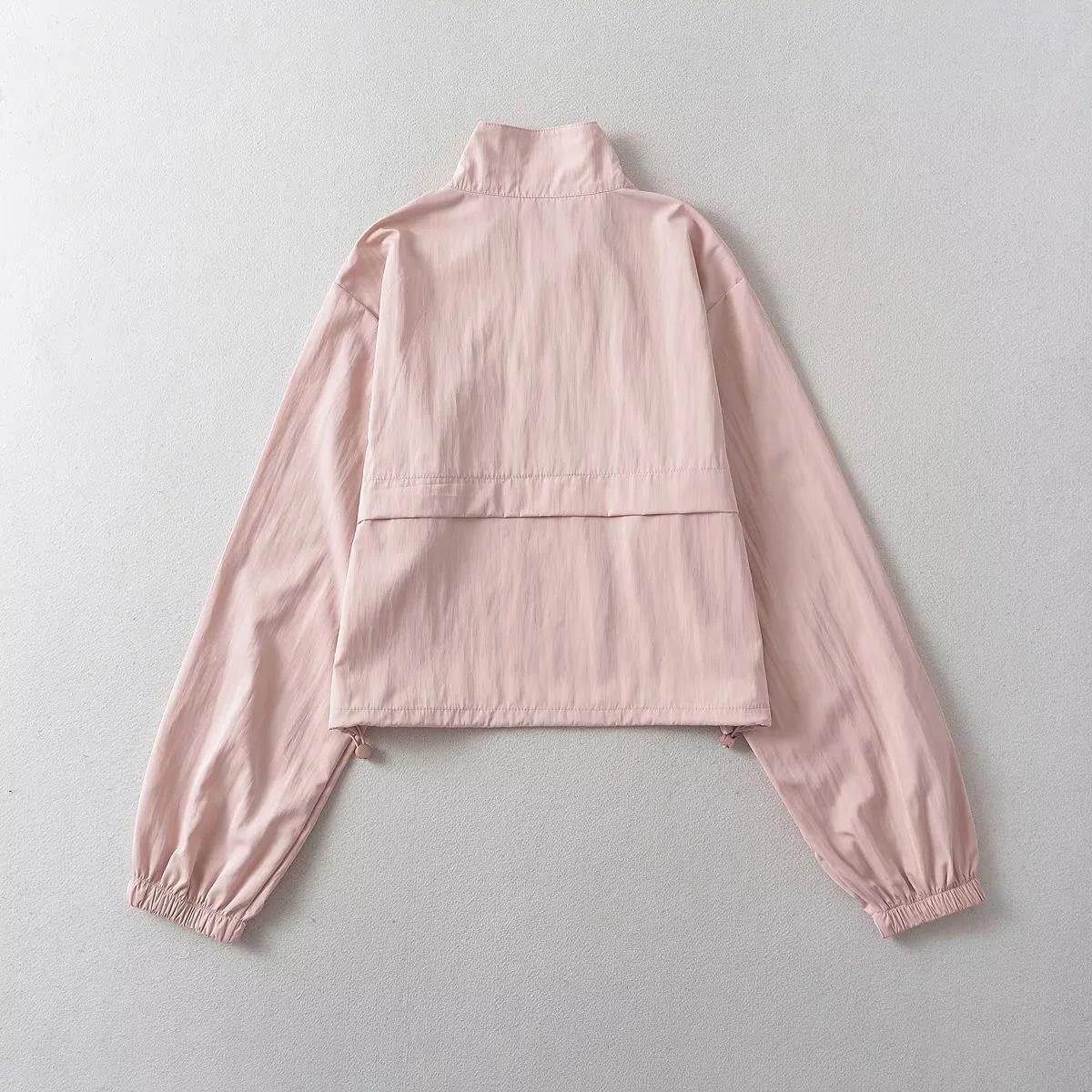 Otoño Nuevo Sudadera Estilo Deportivo Chaqueta Protección Solar para Mujer Suelta Manga Larga Dobladillo con Cordón Medio Cuello Alto Chaqueta con Cremallera
