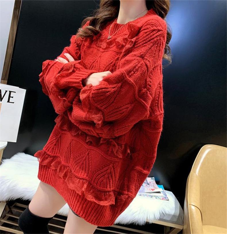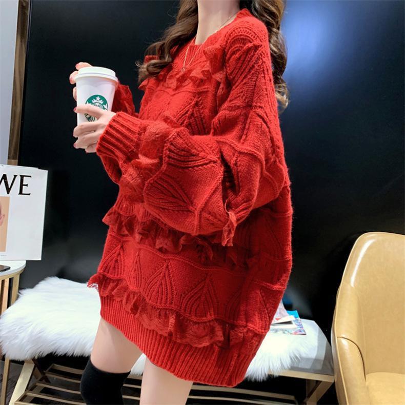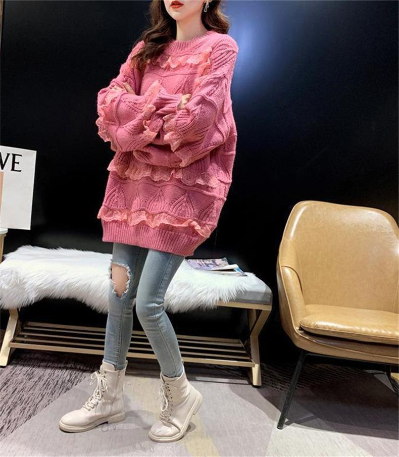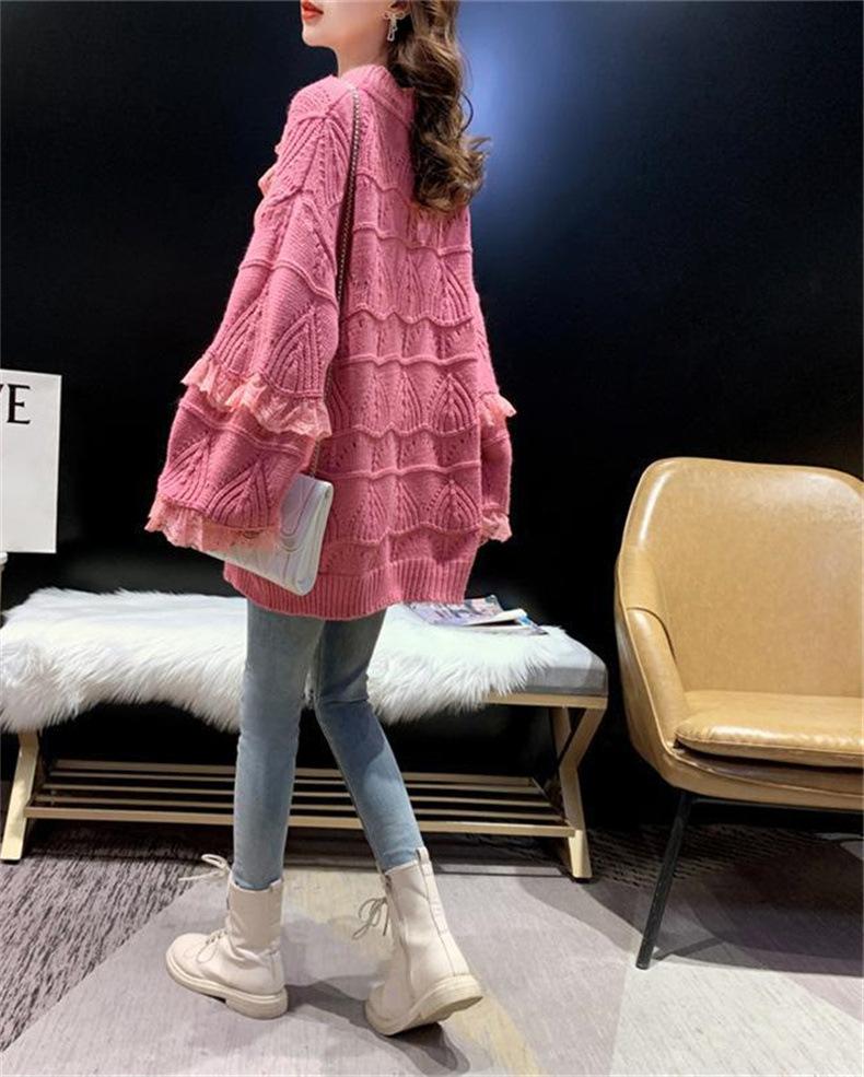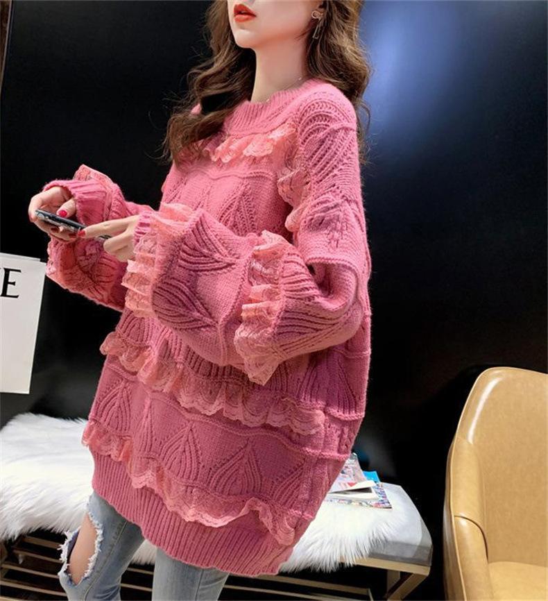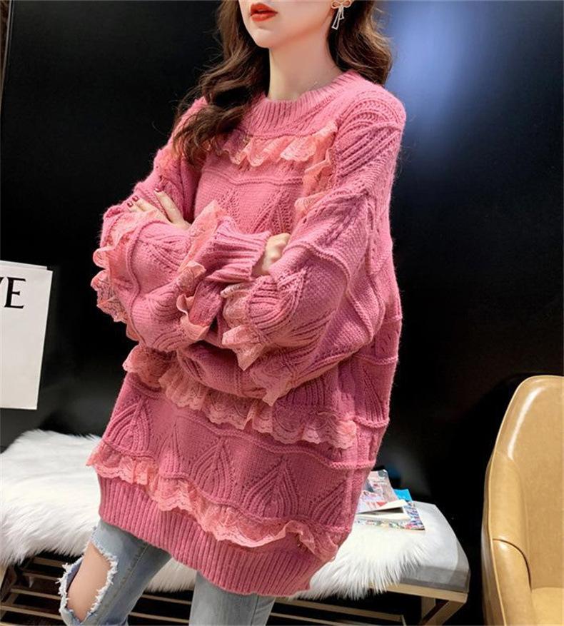 2025 Nuevo Otoño e Invierno Encaje Empalmado Prendas de Punto para Mujer Estilo Holgado Perezoso Prendas de Punto Diseño Exterior para Mujer Top Trendy