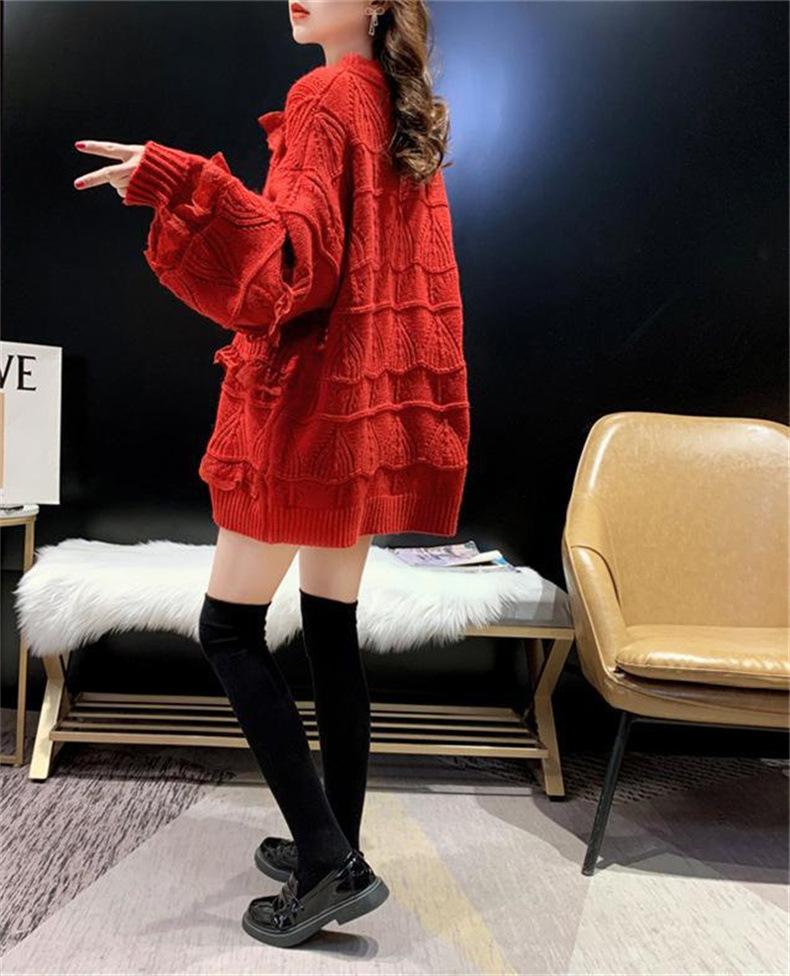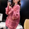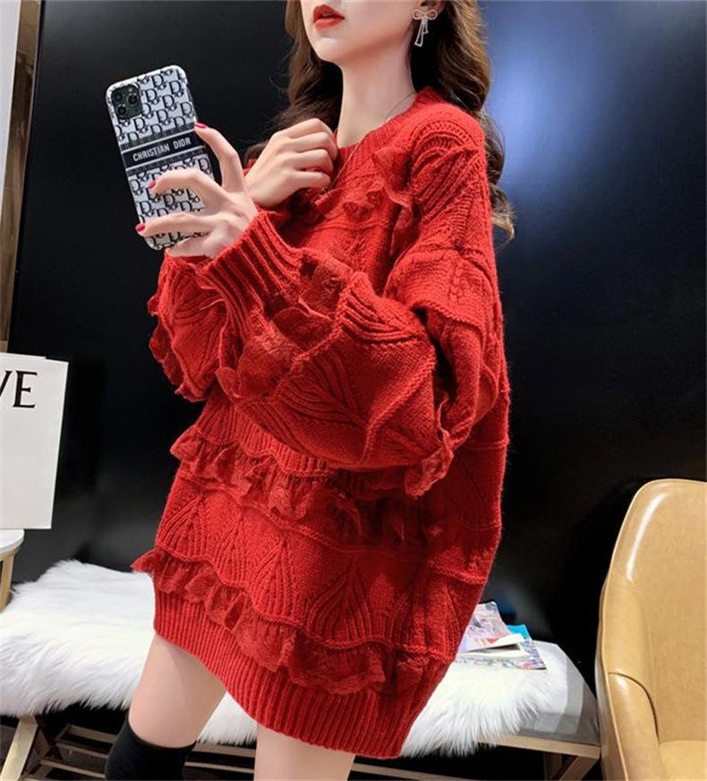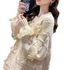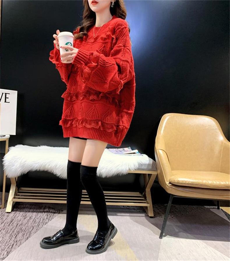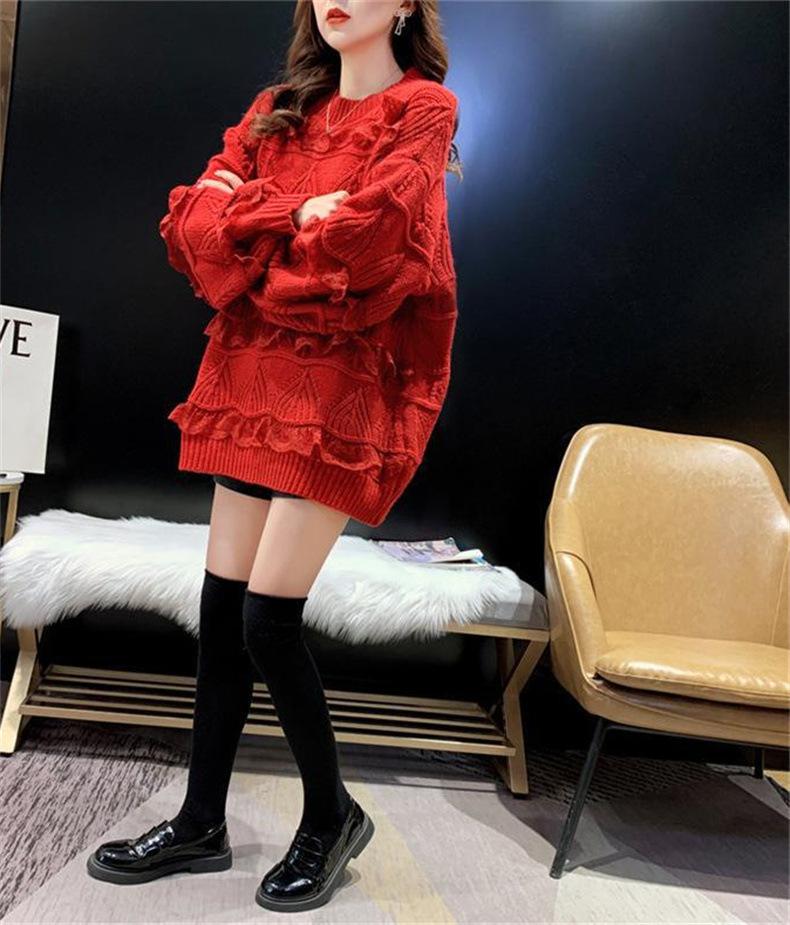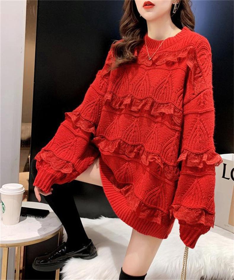 2025 Nuevo Otoño e Invierno Encaje Empalmado Prendas de Punto para Mujer Estilo Holgado Perezoso Prendas de Punto Diseño Exterior para Mujer Top Trendy