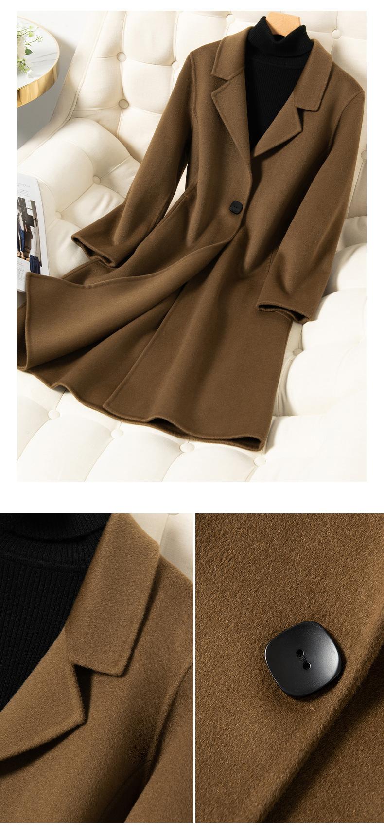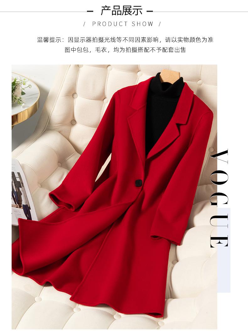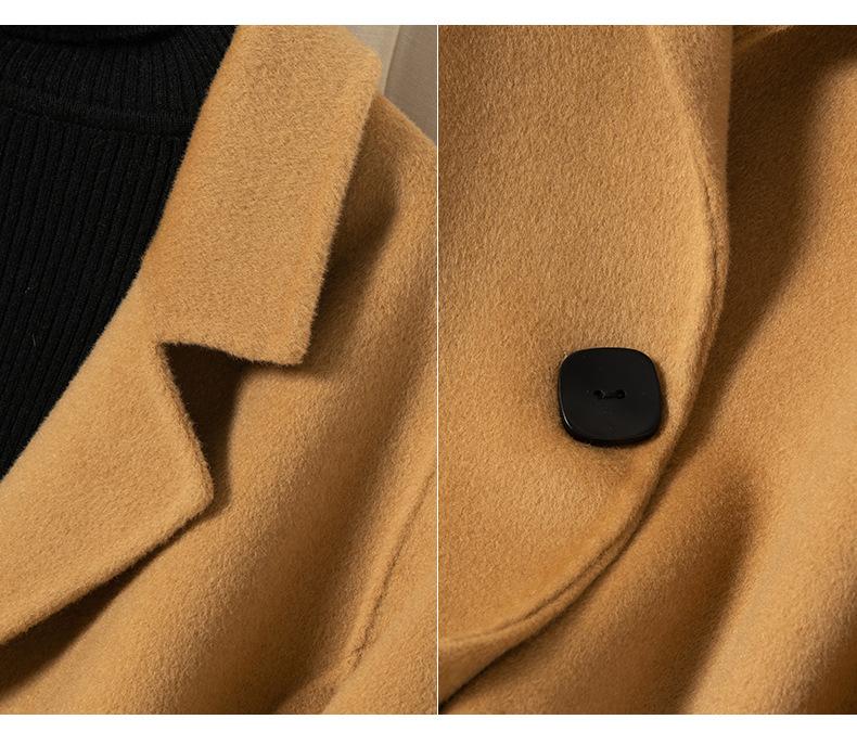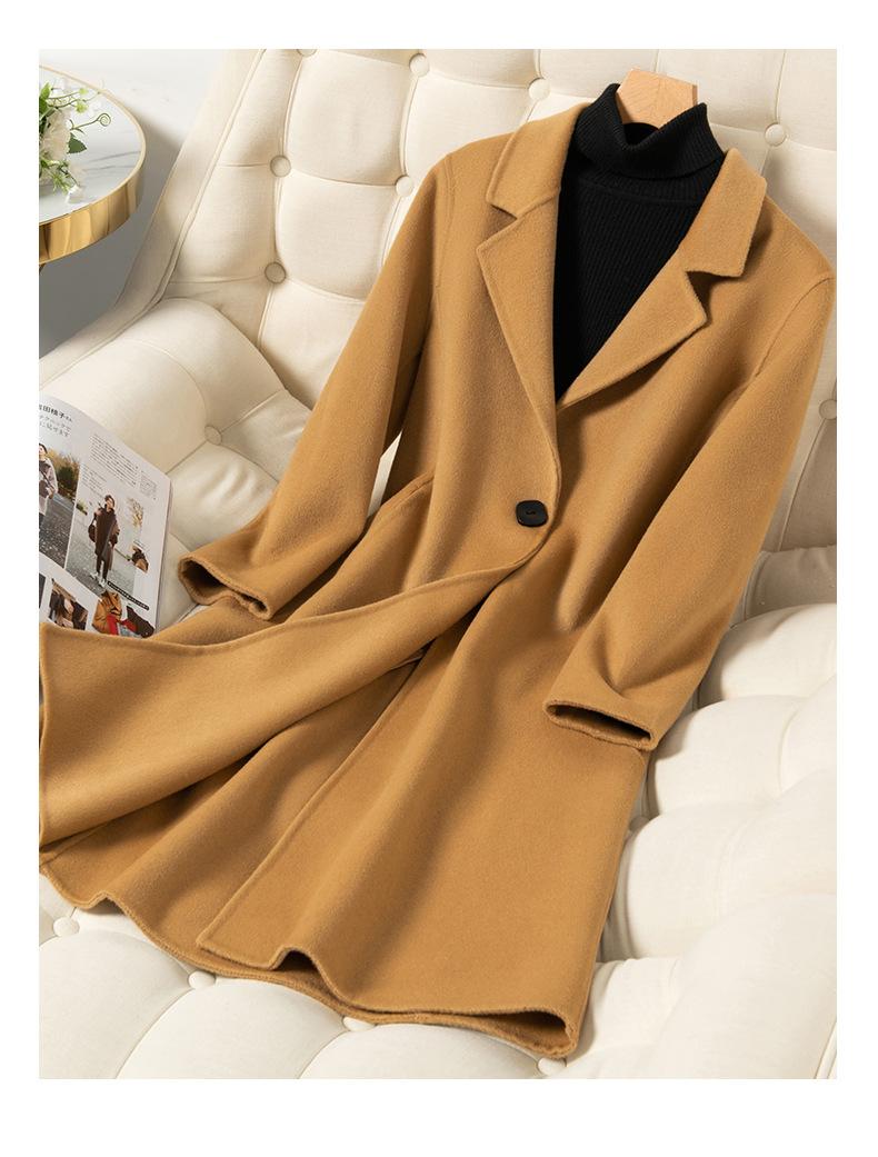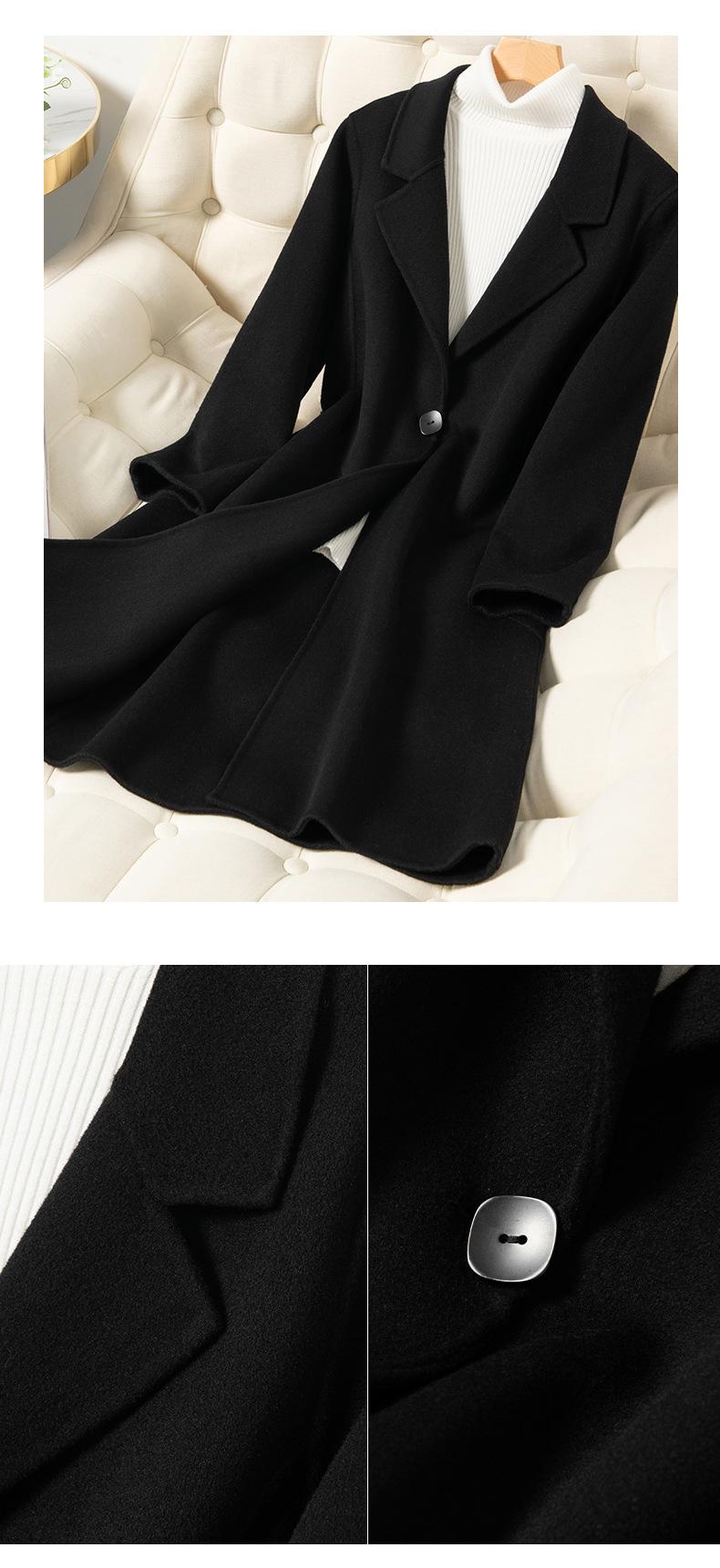 2024 Otoño/Invierno Nuevo Traje de Moda Cuello Abrigo de Lana de Doble Vista para Mujer, Abrigo de Lana de Largo Medio con Botonadura Sencilla