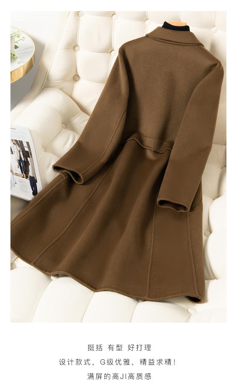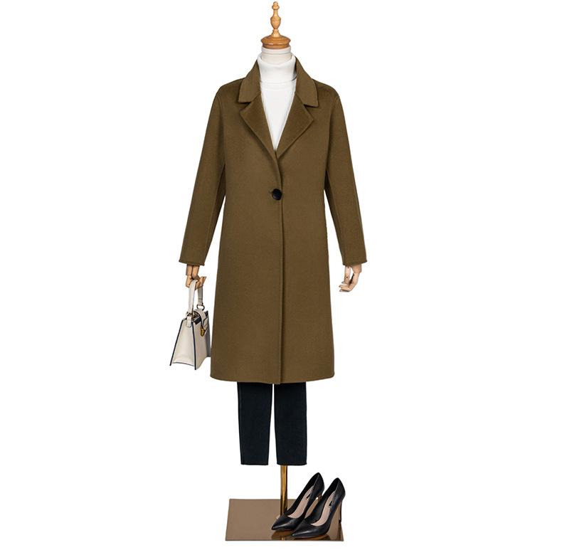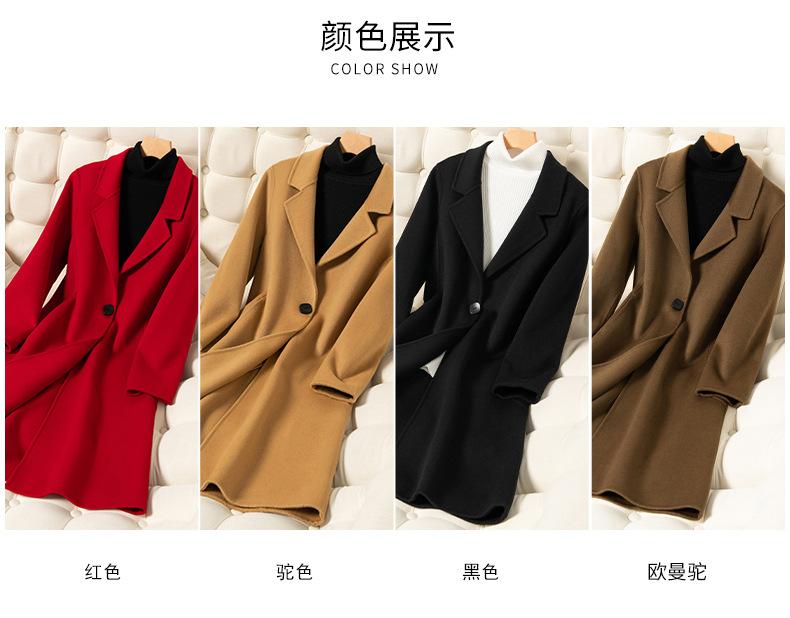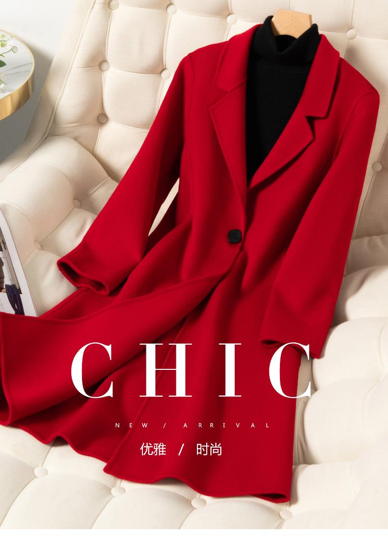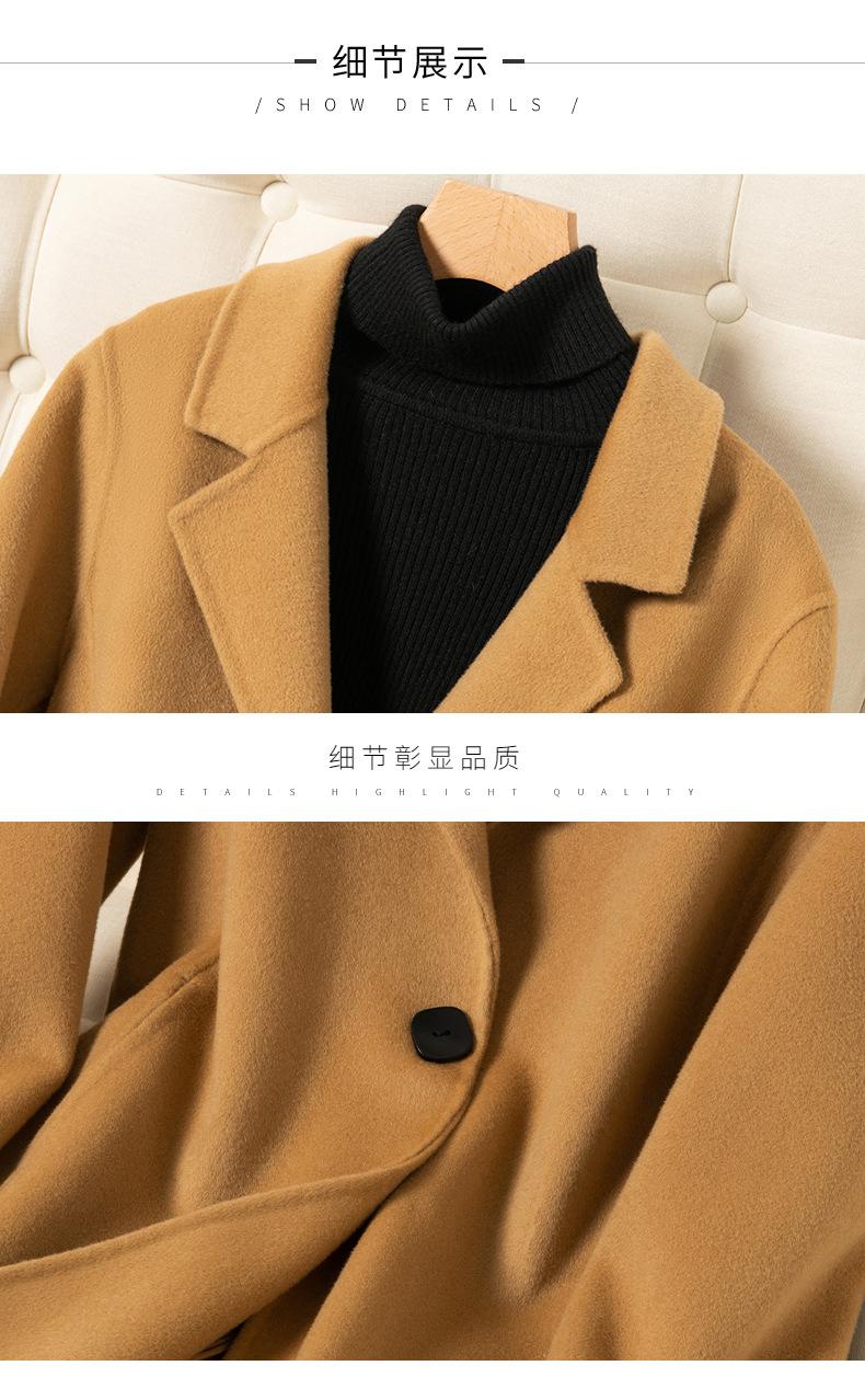 2024 Otoño/Invierno Nuevo Traje de Moda Cuello Abrigo de Lana de Doble Vista para Mujer, Abrigo de Lana de Largo Medio con Botonadura Sencilla