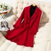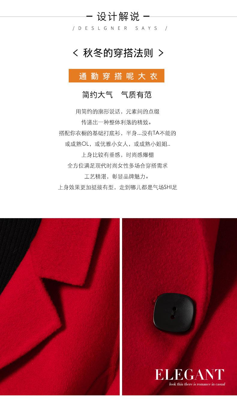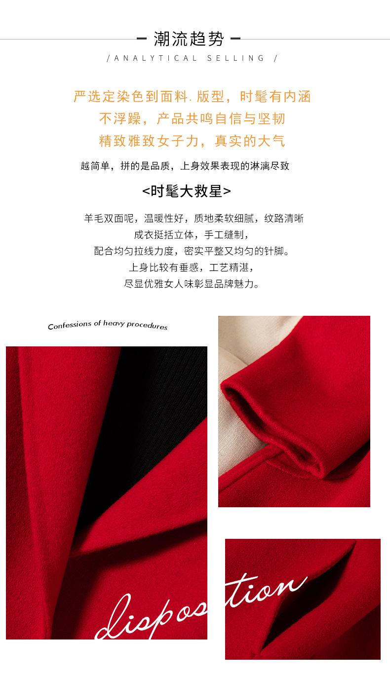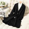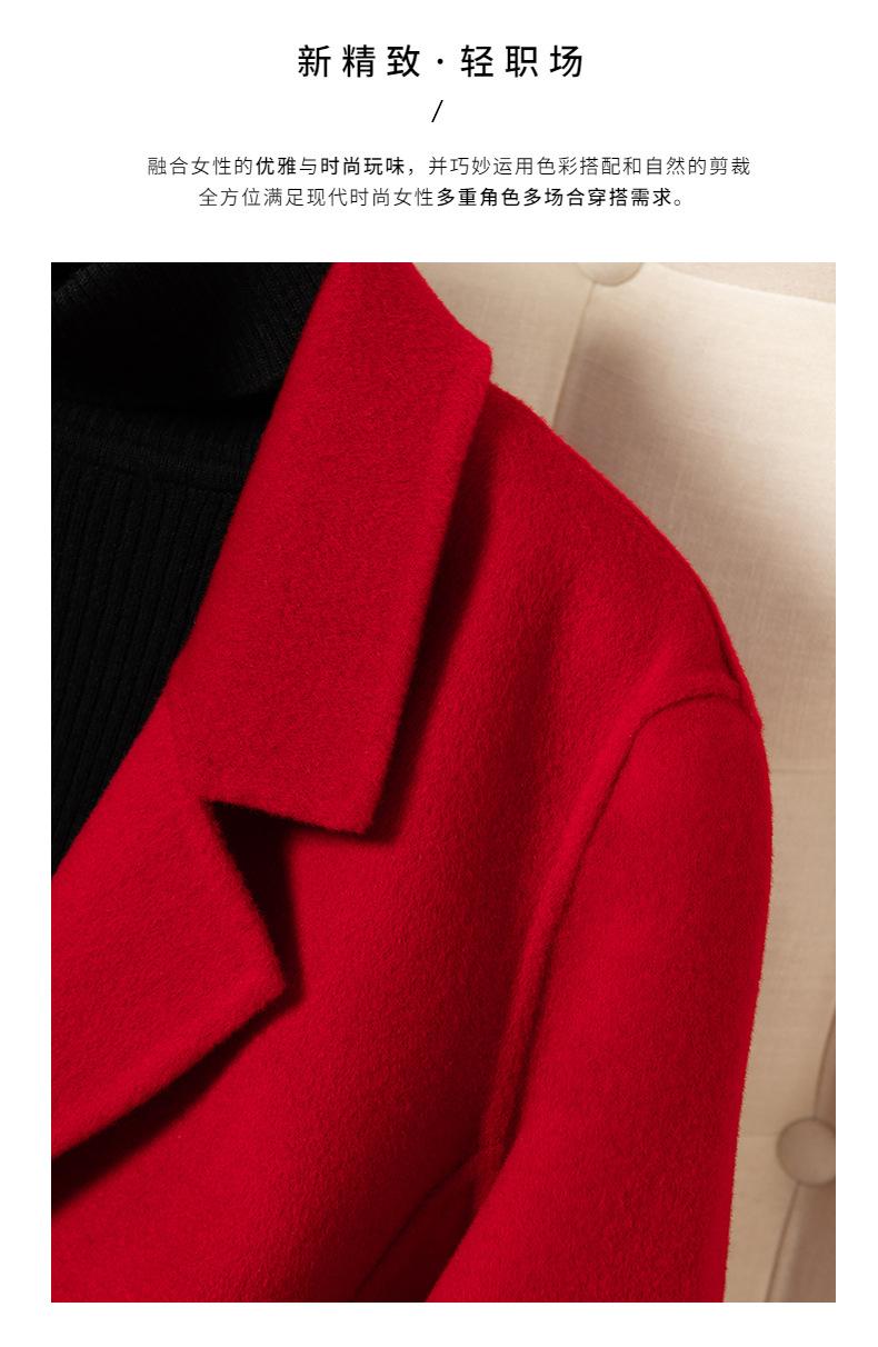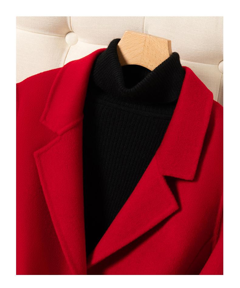 2024 Otoño/Invierno Nuevo Traje de Moda Cuello Abrigo de Lana de Doble Vista para Mujer, Abrigo de Lana de Largo Medio con Botonadura Sencilla