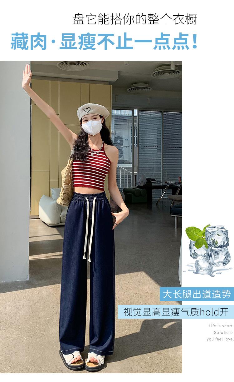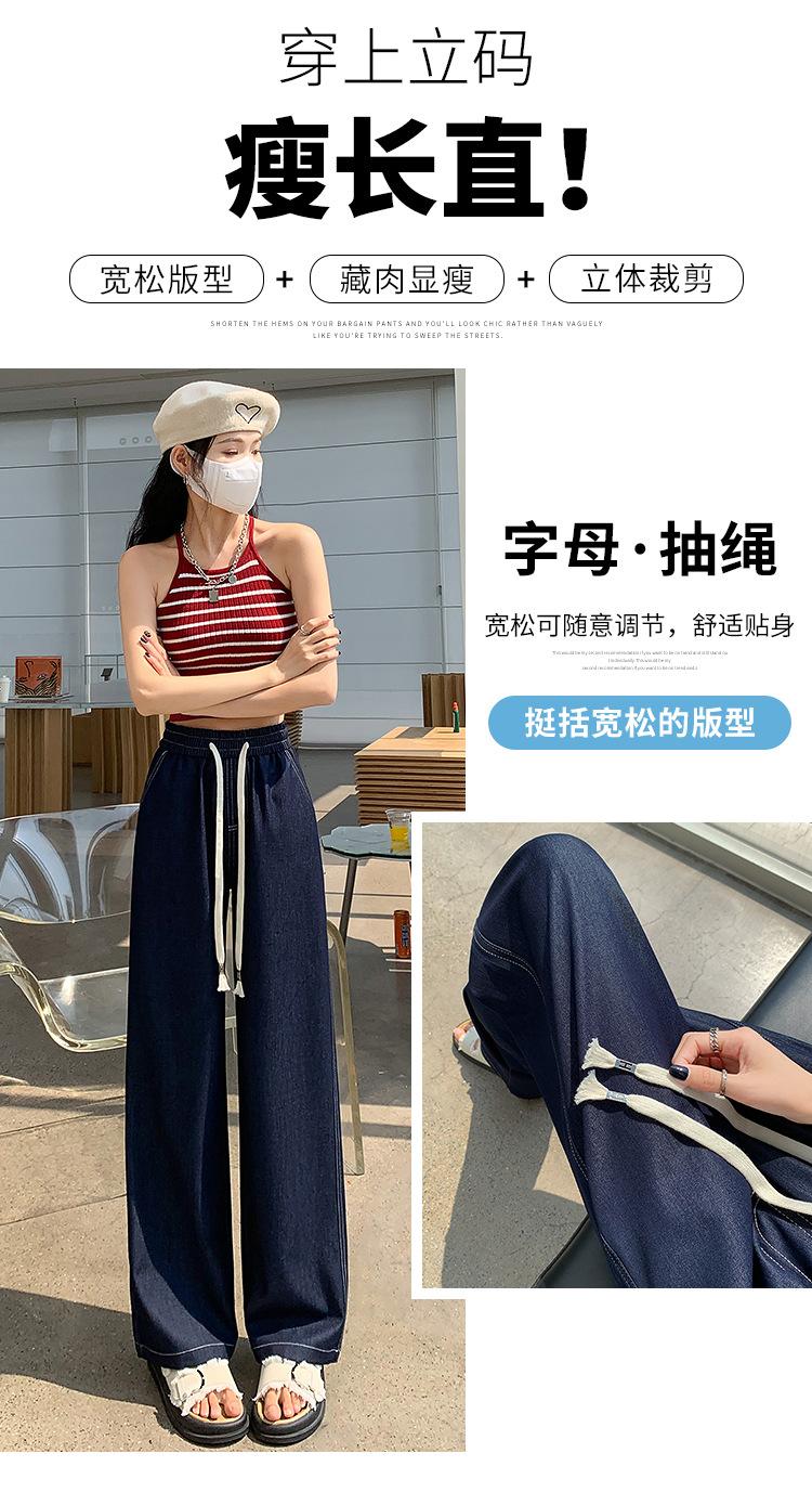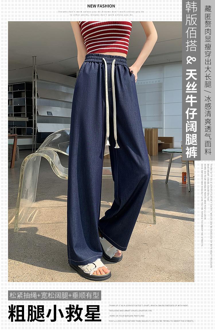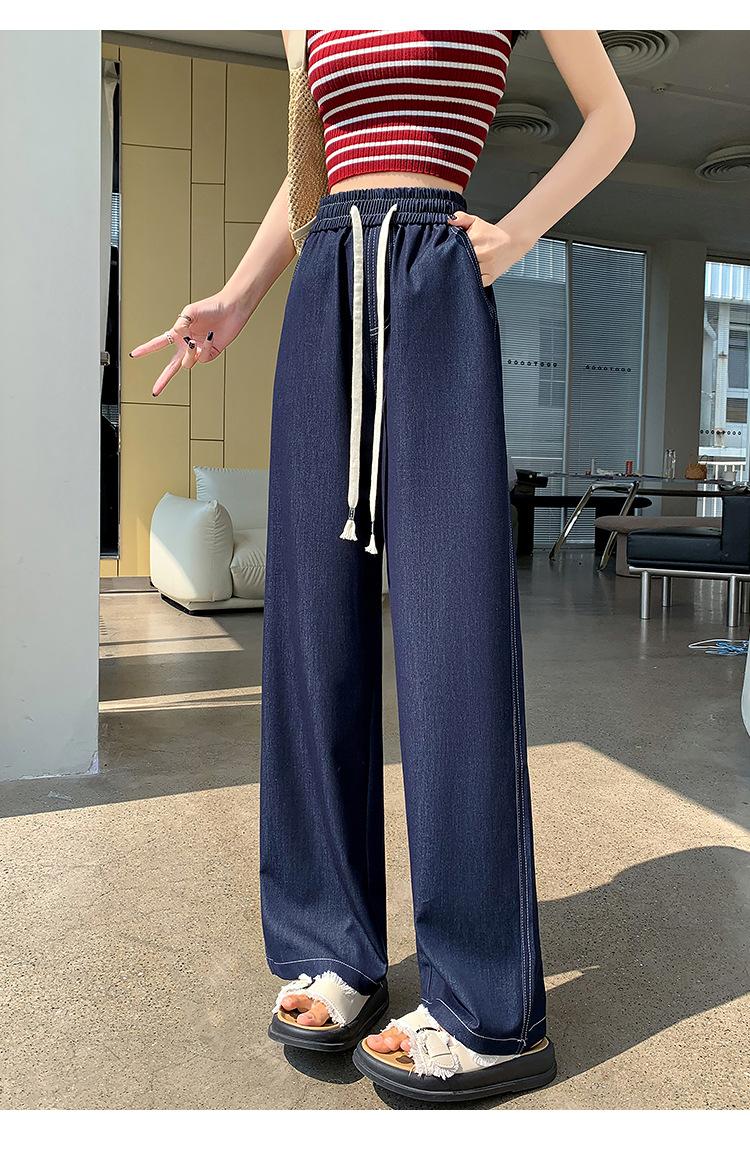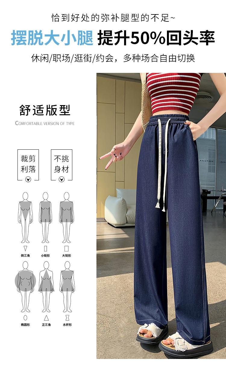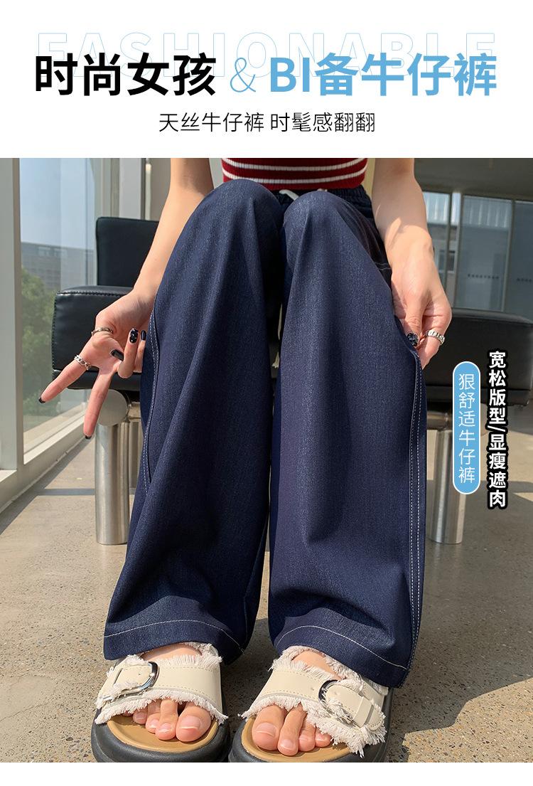 Jeans Tencel Seda de Hielo para Mujer Pantalones de Cintura Alta 2025 Verano Sueltos Delgados de Pierna Recta Adelgazantes Pantalones de Pierna Ancha