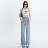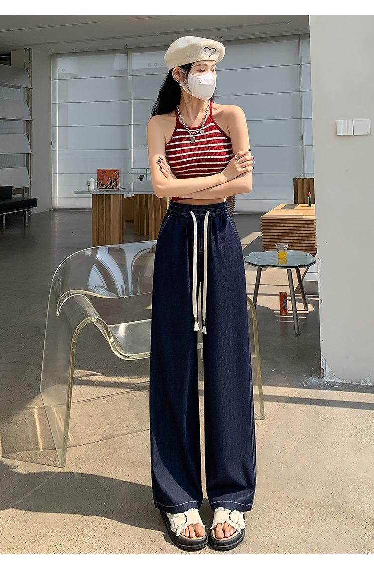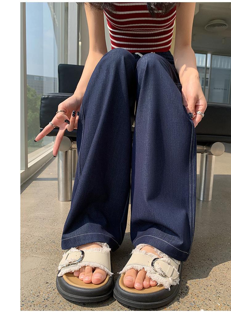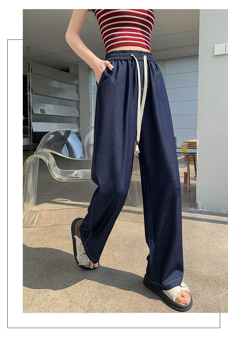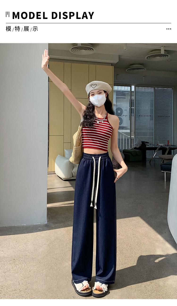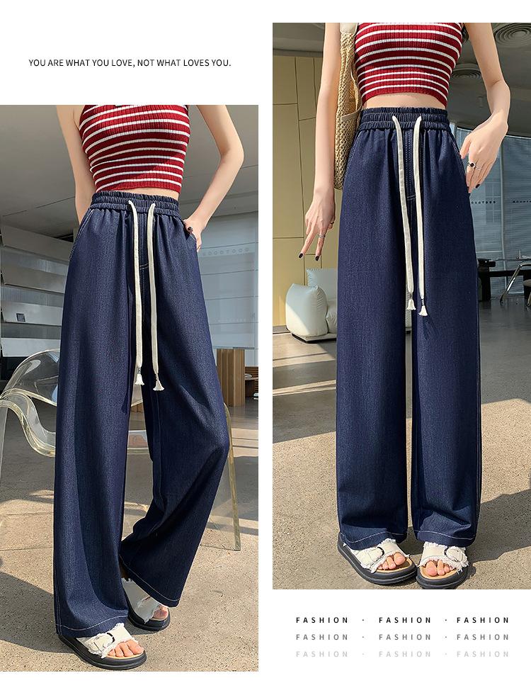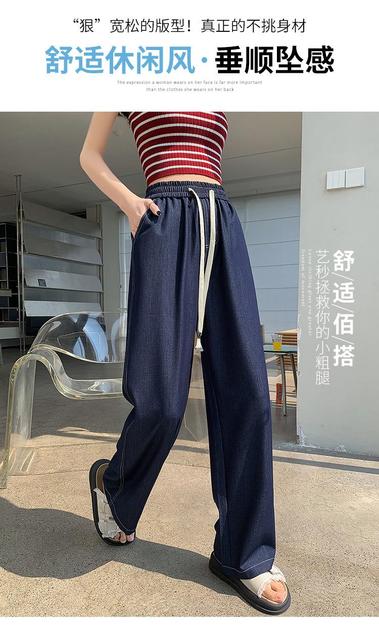 Jeans Tencel Seda de Hielo para Mujer Pantalones de Cintura Alta 2025 Verano Sueltos Delgados de Pierna Recta Adelgazantes Pantalones de Pierna Ancha