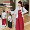 Black Cardigan, Two-Piece Slip Skirt Set, Black cardigan + skirt three-piece set